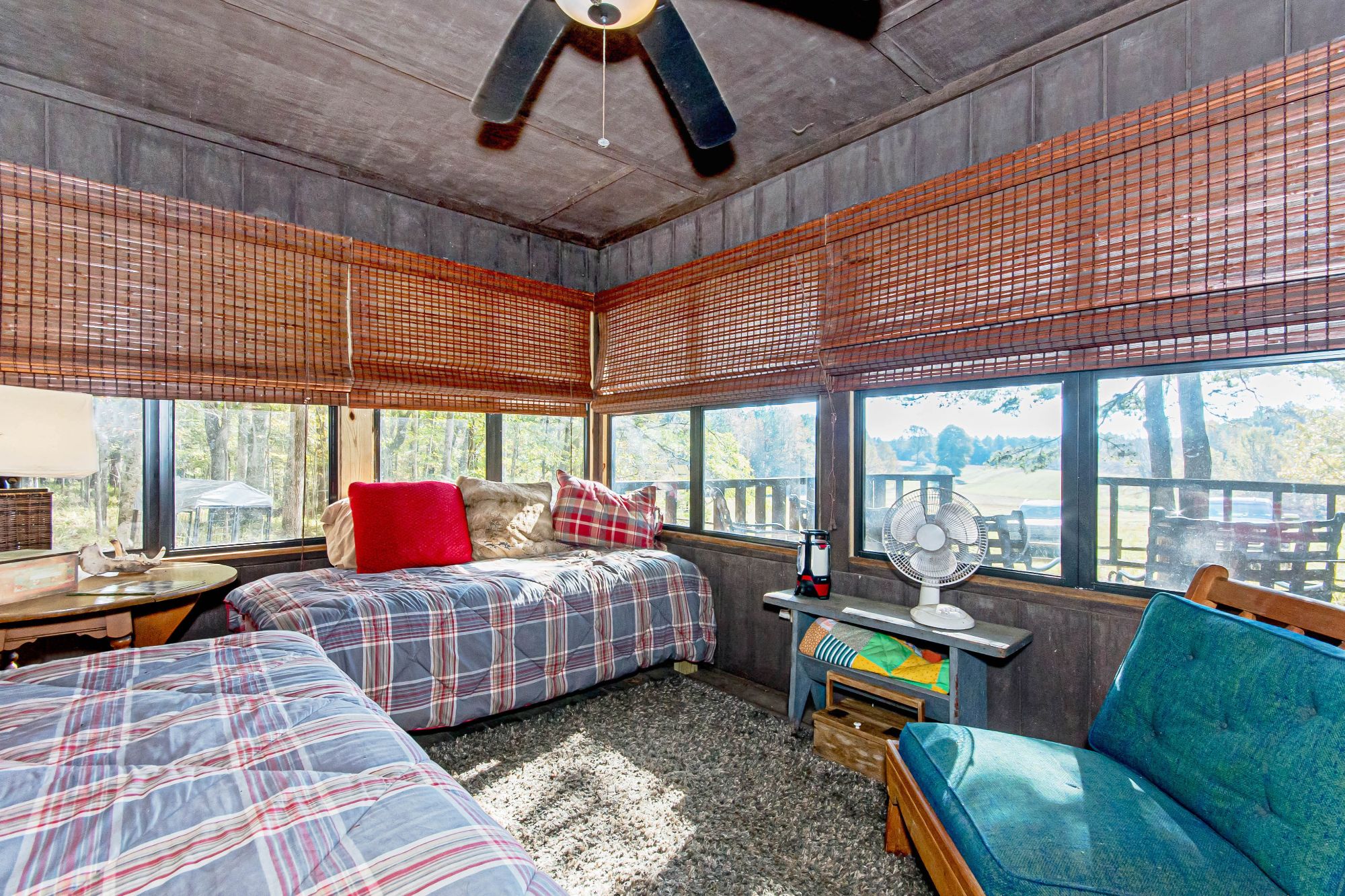 - Quaint 3-bedroom cabin utilizing solar panels for power