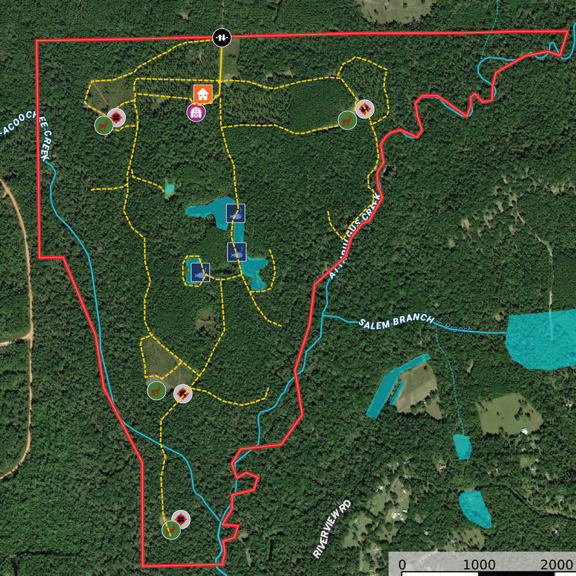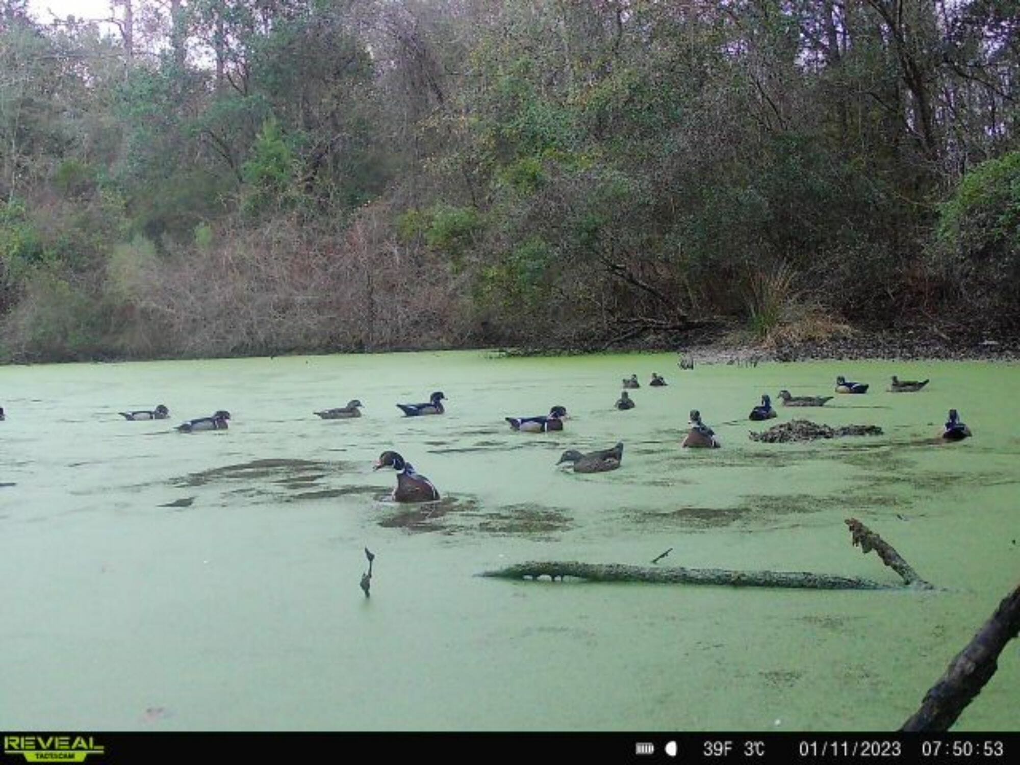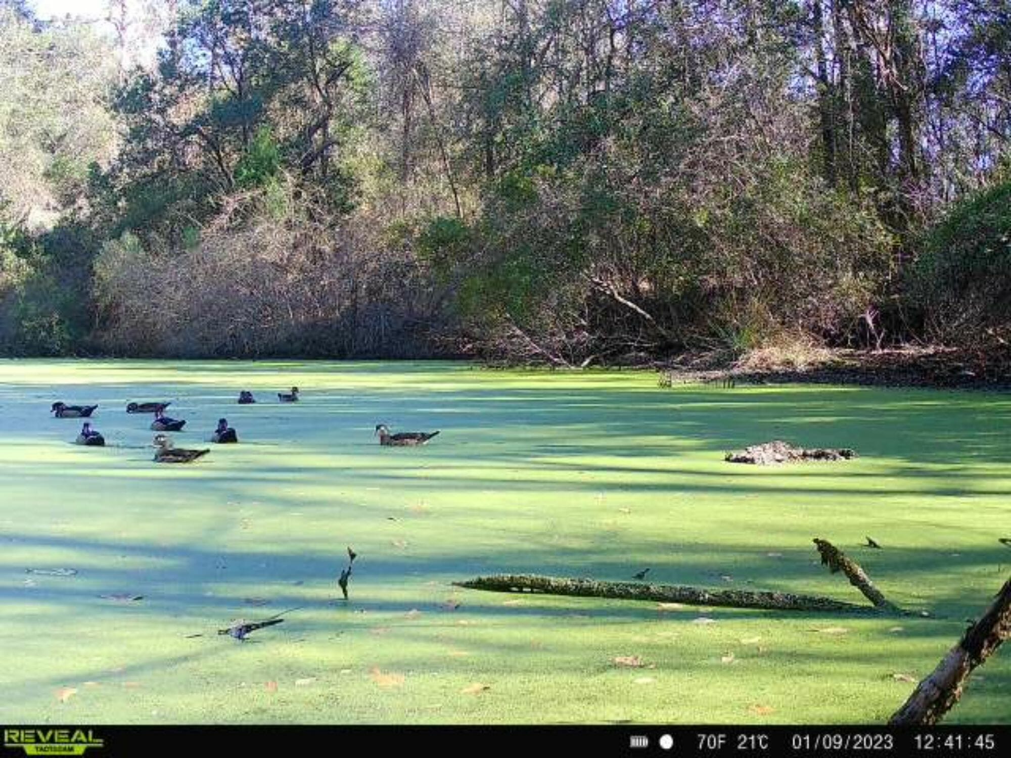 B & C Creekside consists of approximately 538 acres of high-quality recreational property that is bordered by Attapulgus Creek on the east property line with approximately 1.74 miles, and on the west side is bordered for approx. 1.2 miles by the Willacoochee Creek. These creeks are exceptionally-beautiful sand bottom creeks lined with majestic white oaks, live oaks, and water oaks that provide excellent mast production for all kinds of wildlife. The deer and turkey hunting is outstanding, along with duck hunting on the creek and numerous small ponds. Large like-minded landowners, end of the road privacy, and exceptional water sources all further contribute to the great game flow. The 2,160 sq ft home located on property is nice and comfortable for entertaining family and friends. Wildlife can be viewed scampering around the yard from the spacious screen-in porch.