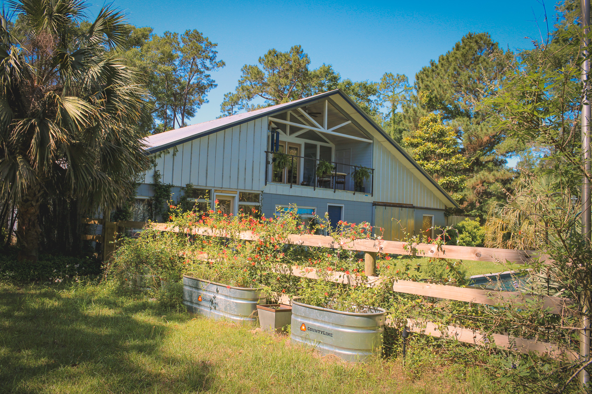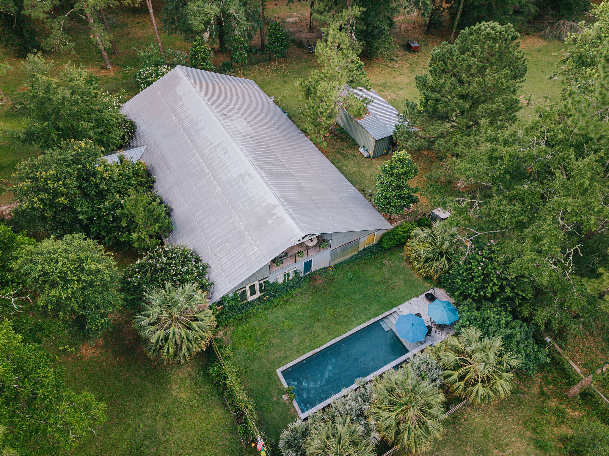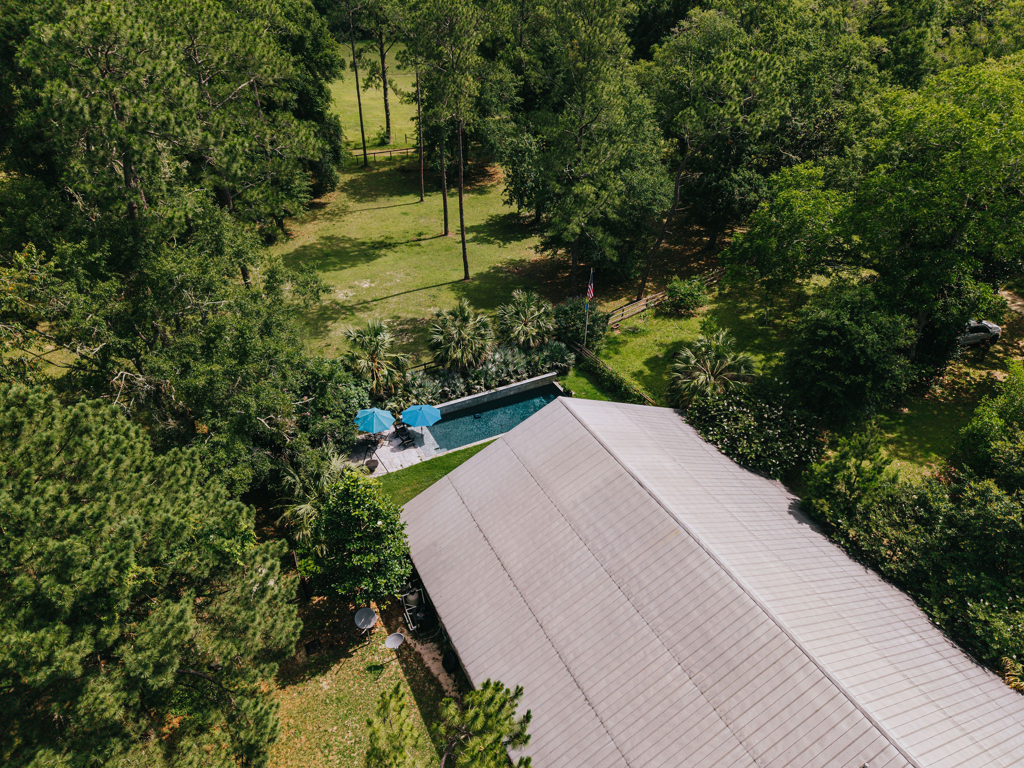 While the property’s hunting opportunities are exceptional, Bradford Brook is designed for all-season enjoyment. The gourmet kitchen is a chef’s dream, equipped with top-of-the-line stainless steel appliances, elegant cabinetry, granite countertops, and a generous island that doubles as a gathering spot for friends and family. Whether preparing everyday meals or hosting dinner parties, this kitchen elevates the experience. Upstairs, a spacious balcony and sun room provide an ideal vantage point to watch deer graze in the fields or to savor your morning coffee. Beyond the impressive interior, the property invites you to embrace the Florida outdoor lifestyle to its fullest. A new pool and expansive patio area create the ultimate backyard oasis — perfect for lazy summer afternoons, family barbecues, or evening swims under the stars. Bradford Brook makes for the ultimate hunting camp or full-time secluded residence. The other half of the barndominium is a working horse stable and storage.