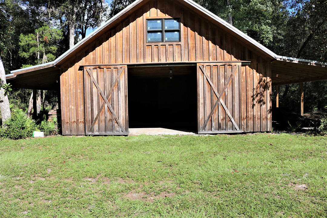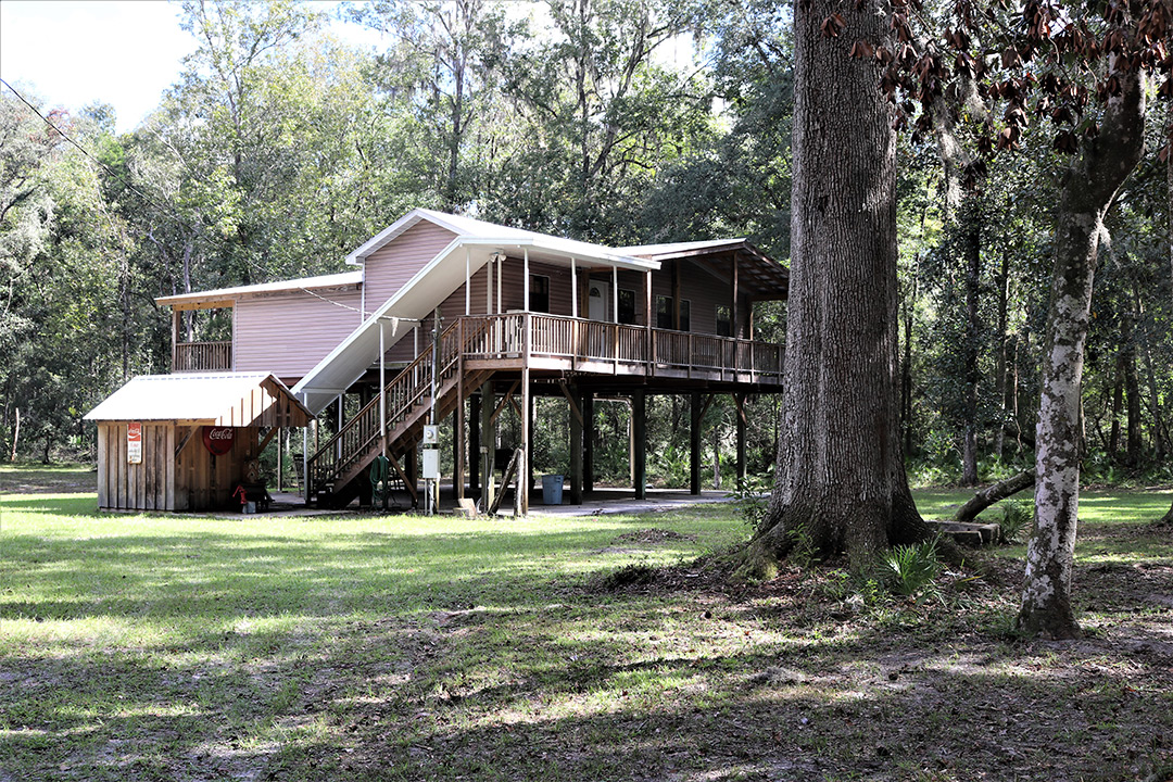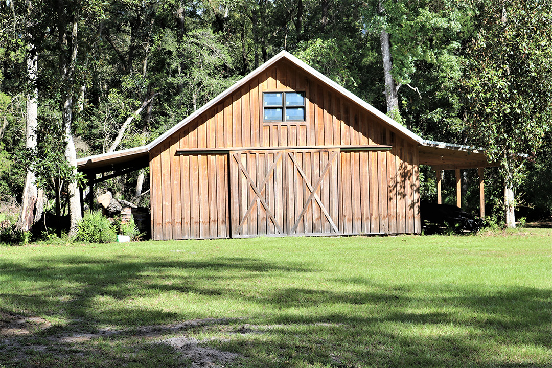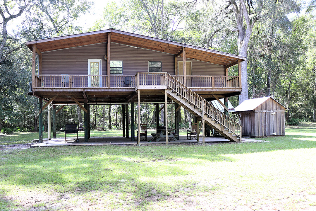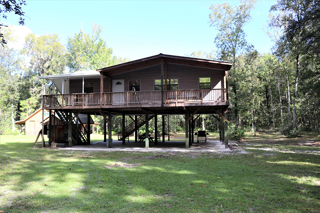 The Santa Fe River Tract is a beautiful 103-acre tract located 40 miles northwest of Gainesville, FL. The property has over a quarter-mile of accessible river frontage. On the property are some of the most spectacular hardwoods/live oak trees you’ll ever see. Being located at the dead-end of NE 25 Ave. Rd. and having large landowners bordering property, including State property, which allows no hunting, provides exceptional privacy. The property has abundant wildlife, deer and turkeys, along with good fishing, kayaking, and boating on the Santa Fe River. Accommodations are recently remodeled 2-bedroom/2-bath house on concrete pilings, along with a recently constructed nice cypress barn with a finished upstairs loft.