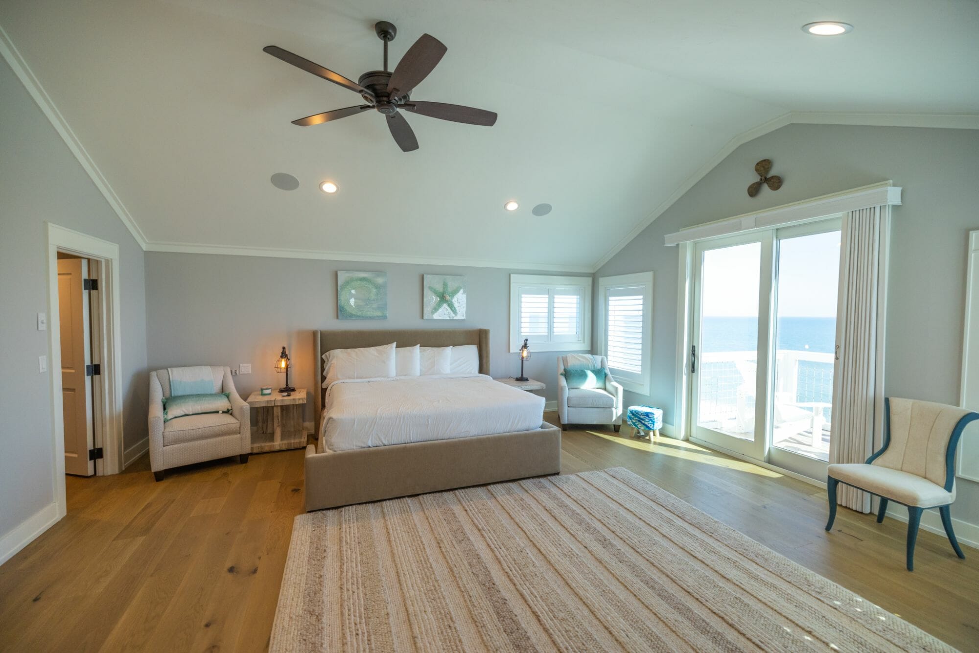 The third floor boasts an oversized Master Suite complete with a private beachfront deck. The spa-style bathroom includes his and hers sinks, a huge walk-in shower with bench seating, and a free-standing soaking tub. There is an adjoining sitting room with a pull-out sofa as well as a dedicated coffee station area, perfect for early risers or additional kids' sleeping quarters. The house can accommodate up to 20 guests with plenty of shared space both inside and out.
