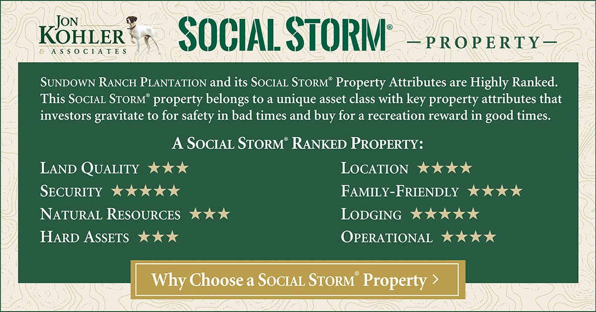 The Social Storm Properties™ Score here is exceptional. In today’s increasingly chaotic world having a place to go for the next pandemic, or worse, is more important every day.