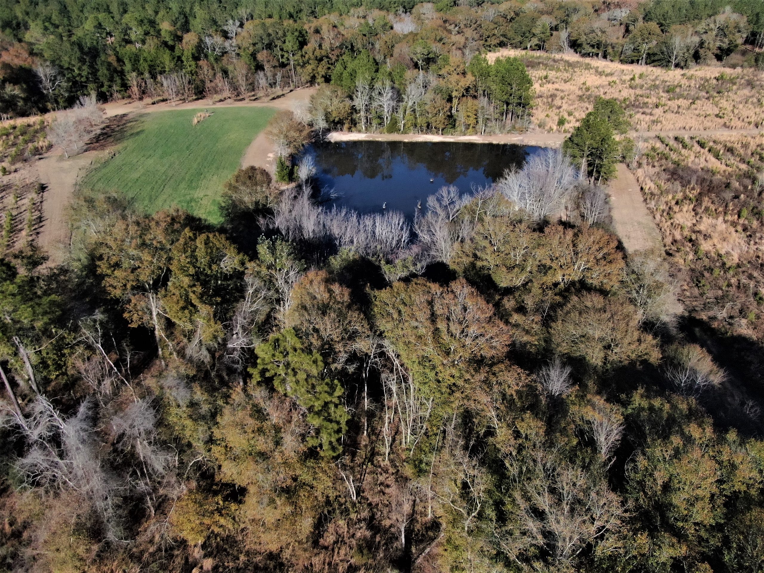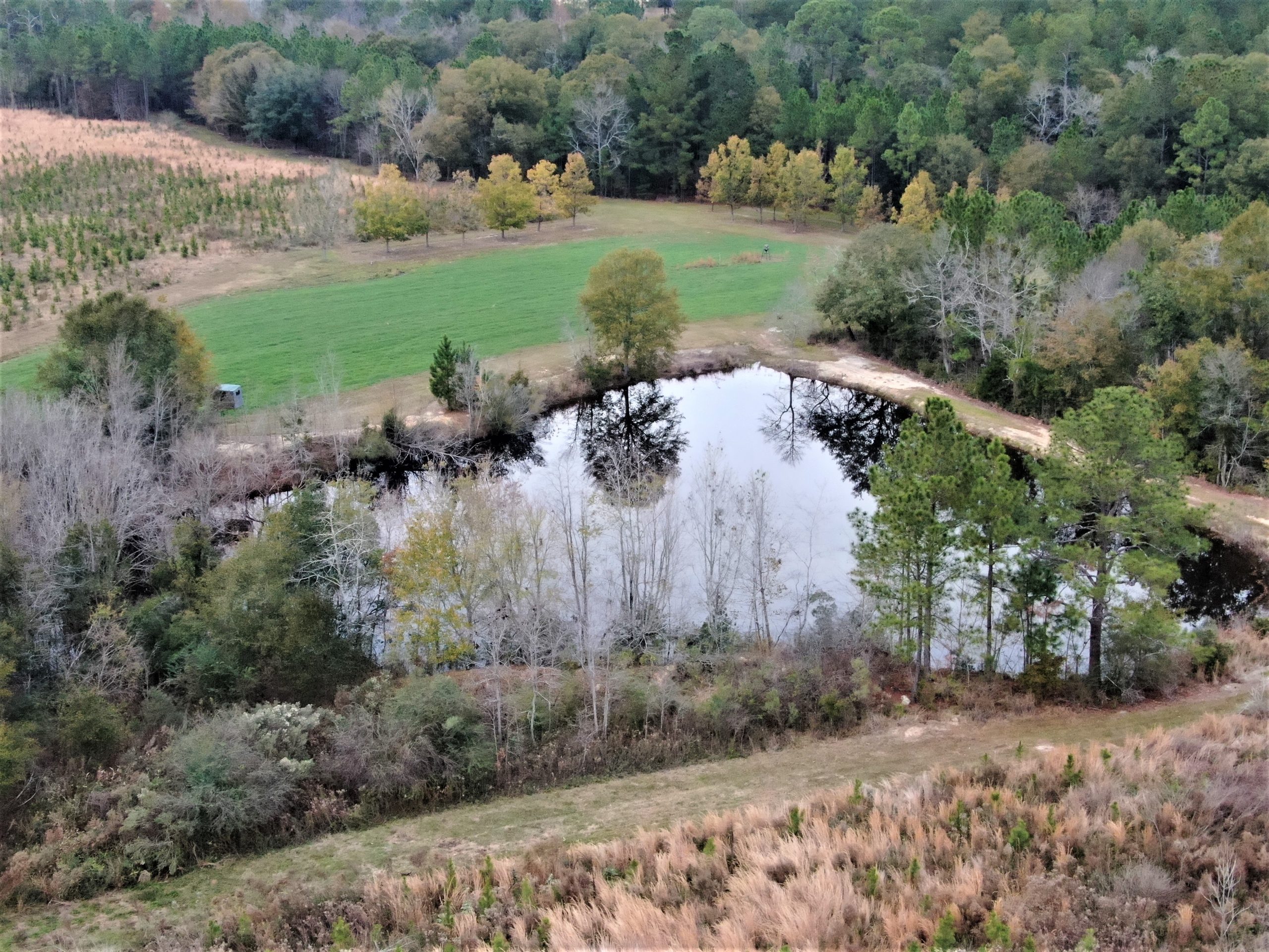 The property has a 5-acre lake, one small pond, and .28 +/- miles of frontage on Clear Creek, including mature hardwoods. The lake is excellent for fishing. There are good roads throughout, beautiful rolling Topography overlooking the lake, majestic live oaks, and excellent soils. The property is managed for turkey and deer, planted sawtooth oaks. There are several very productive food plots and condo stands in place. This is a great Social Storm property; it borders other large landowners and has county-maintained end-of-a-dirt-road privacy, very secure.