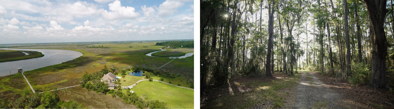 Winding thru a mossy canopy covered lane to arrive at the front gates, it is almost impossible not to instantly feel a wave of relaxation wash over you as you experience the views this peaceful setting has to offer. Situated on the Darien River with Black Island Creek running along the west border .... it affords 180 degree views of water and absolutely magical sunsets.