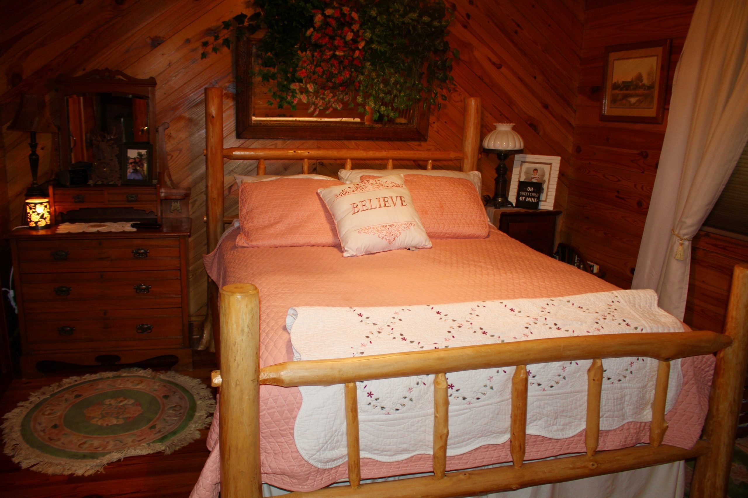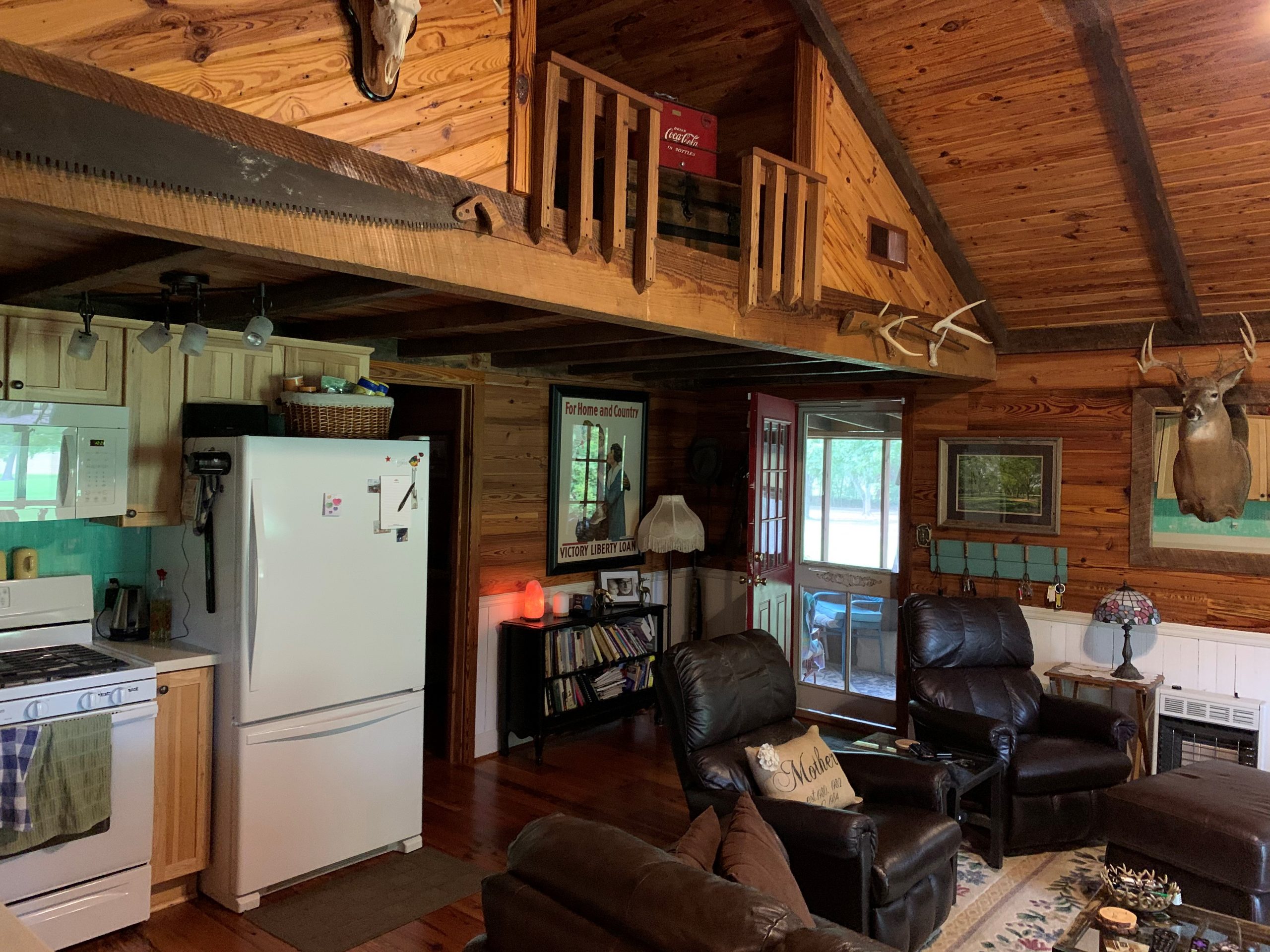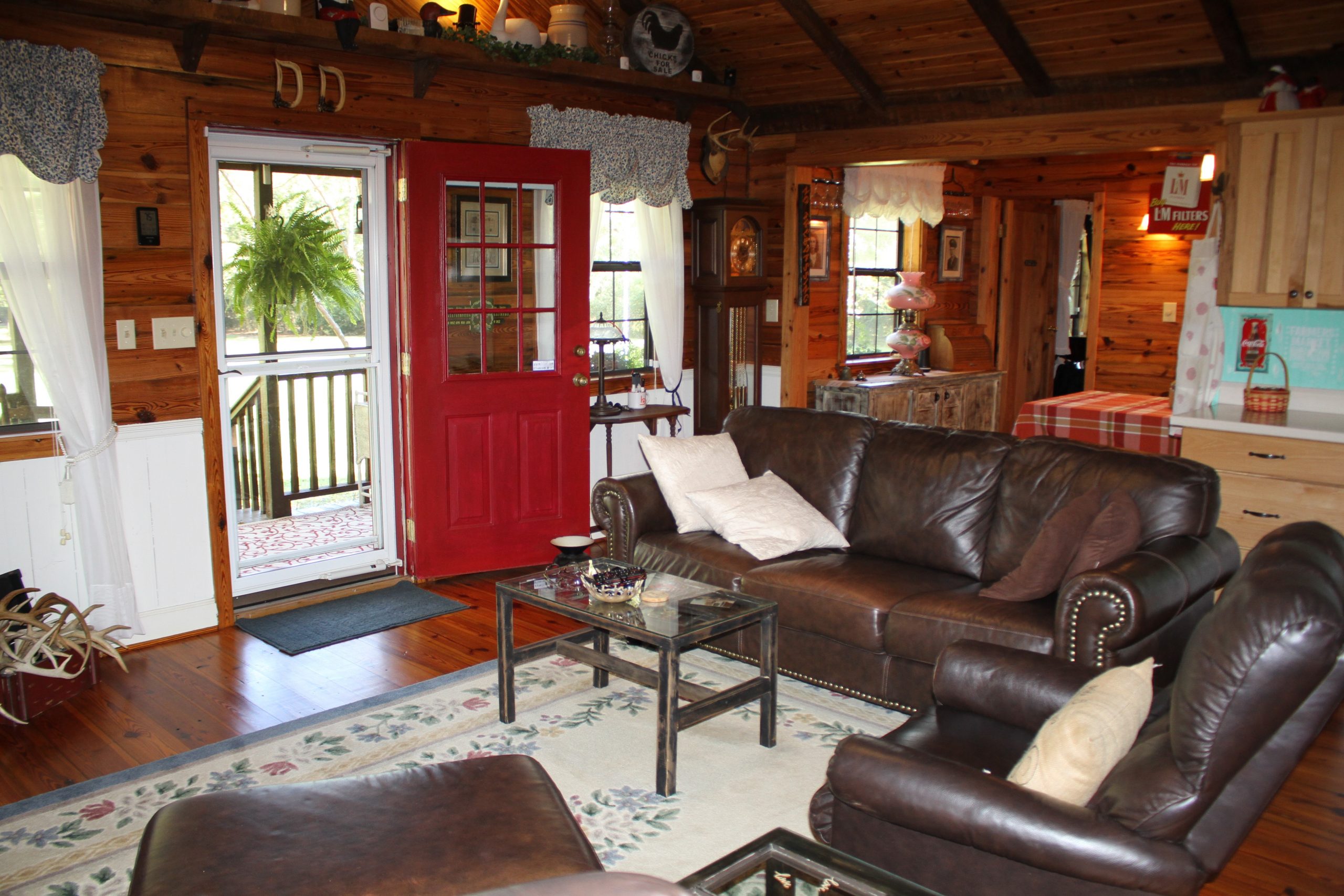 - 1,048 sq ft nice cabin with pine floors; 2 bedrooms/2 baths, fully furnished; swimming pool, firepit, landscaped