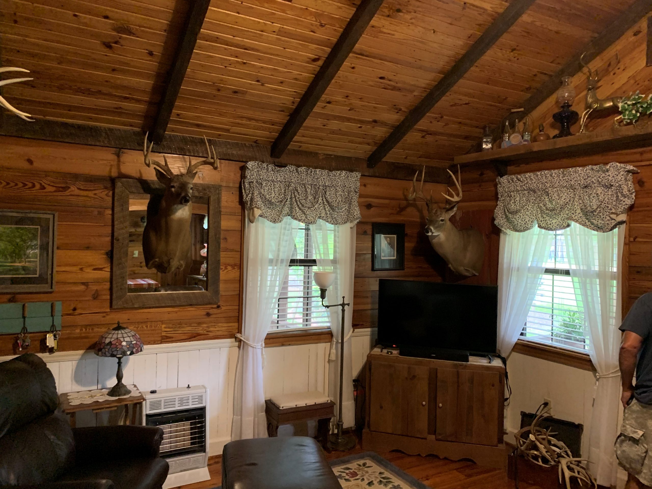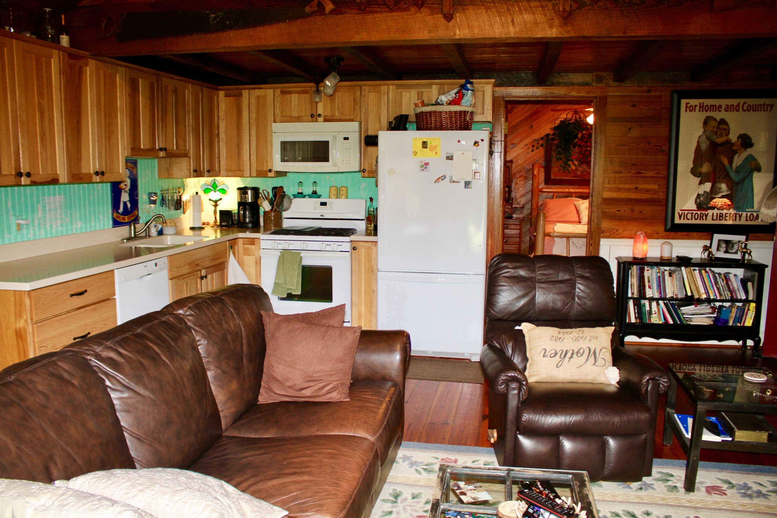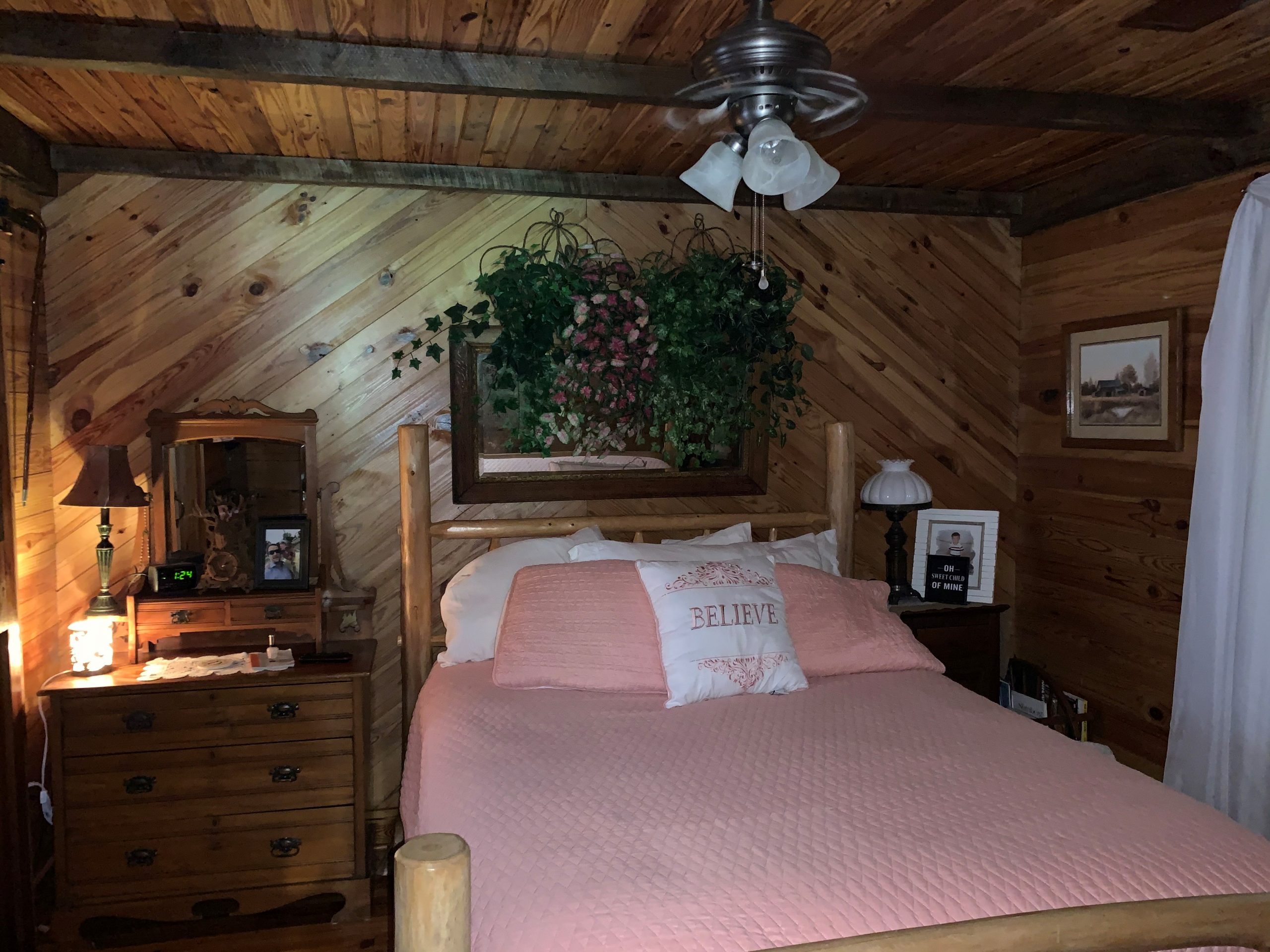 - 1,048 sq ft nice cabin with pine floors; 2 bedrooms/2 baths, fully furnished; swimming pool, firepit, landscaped
