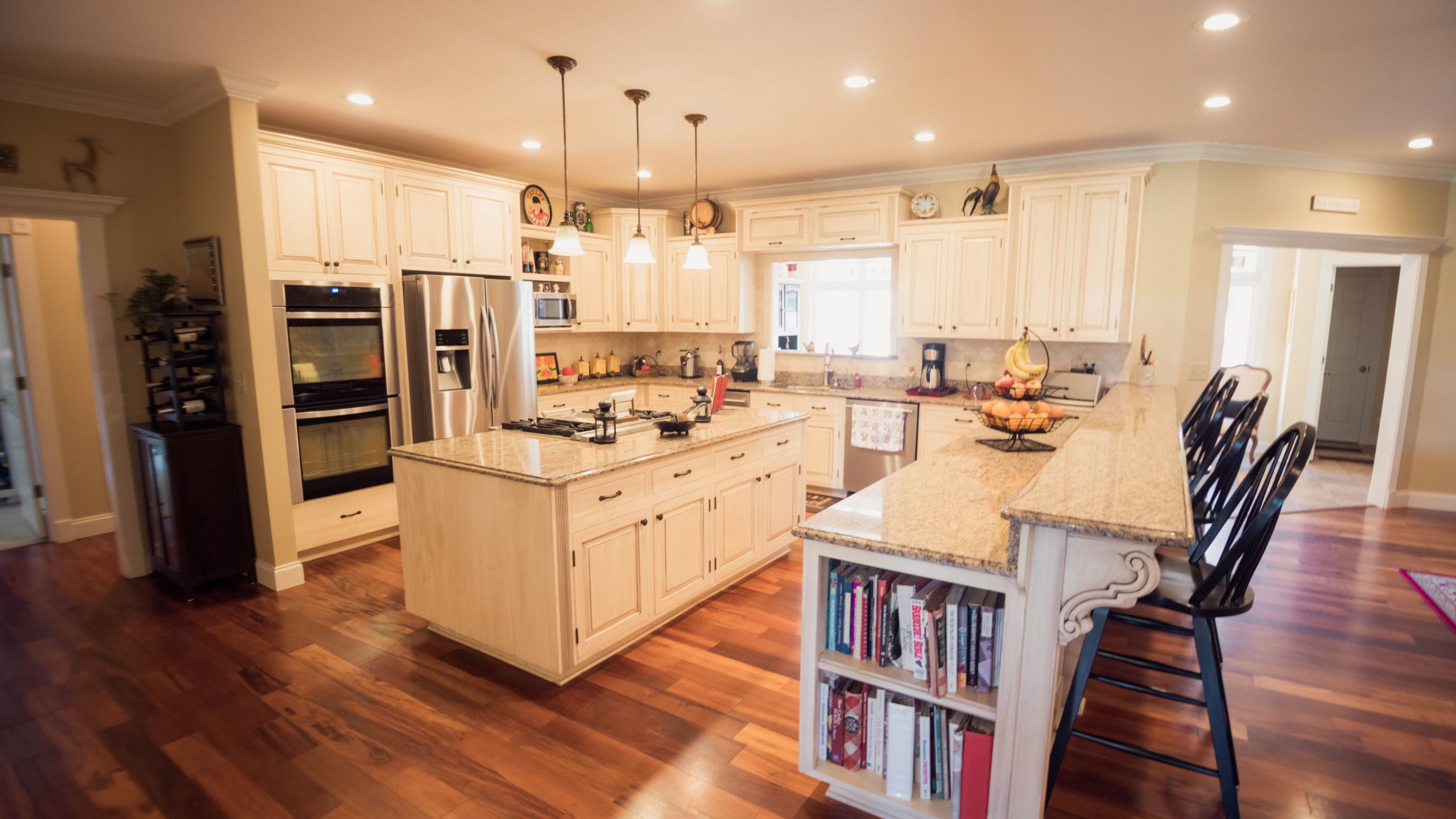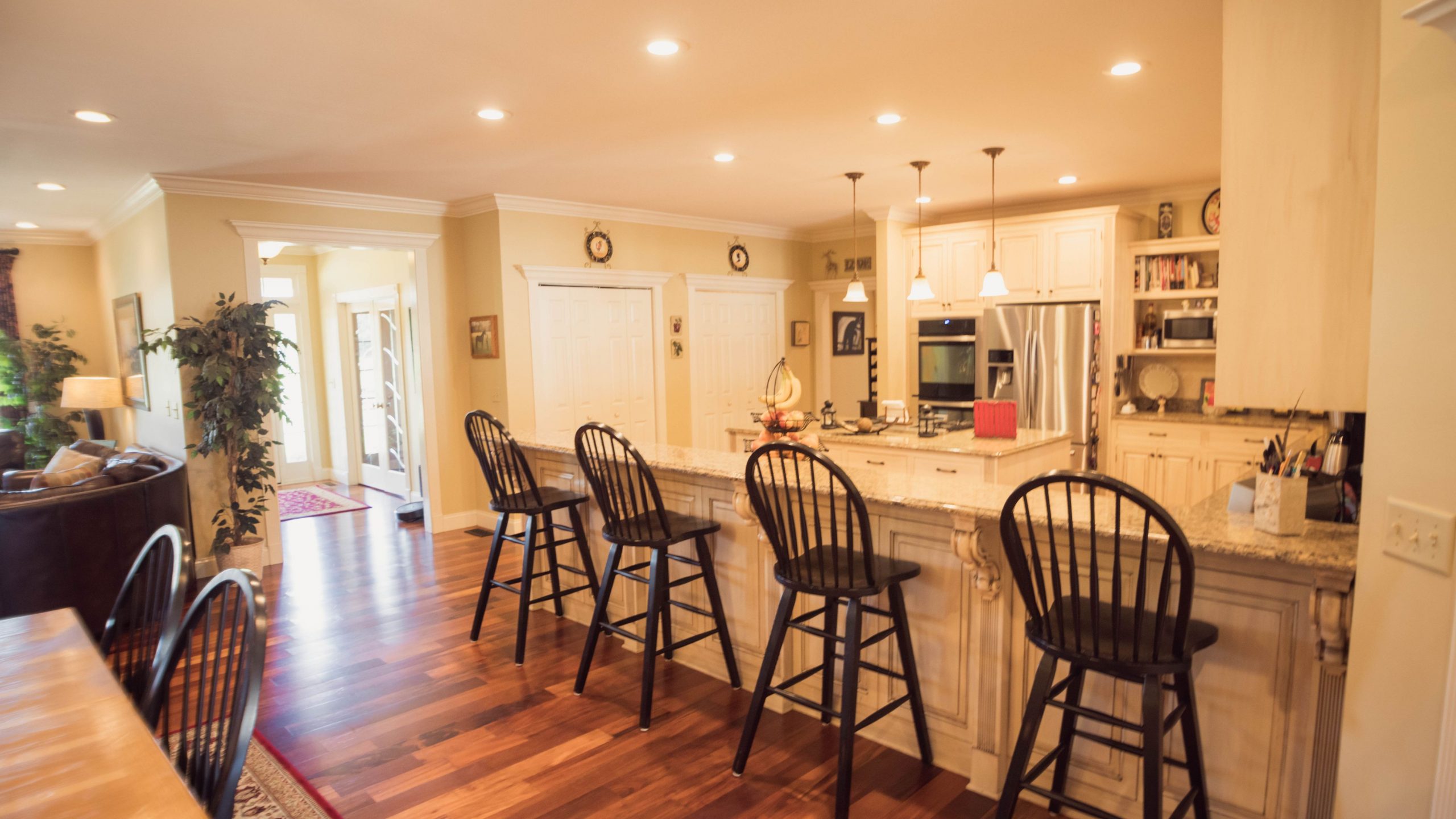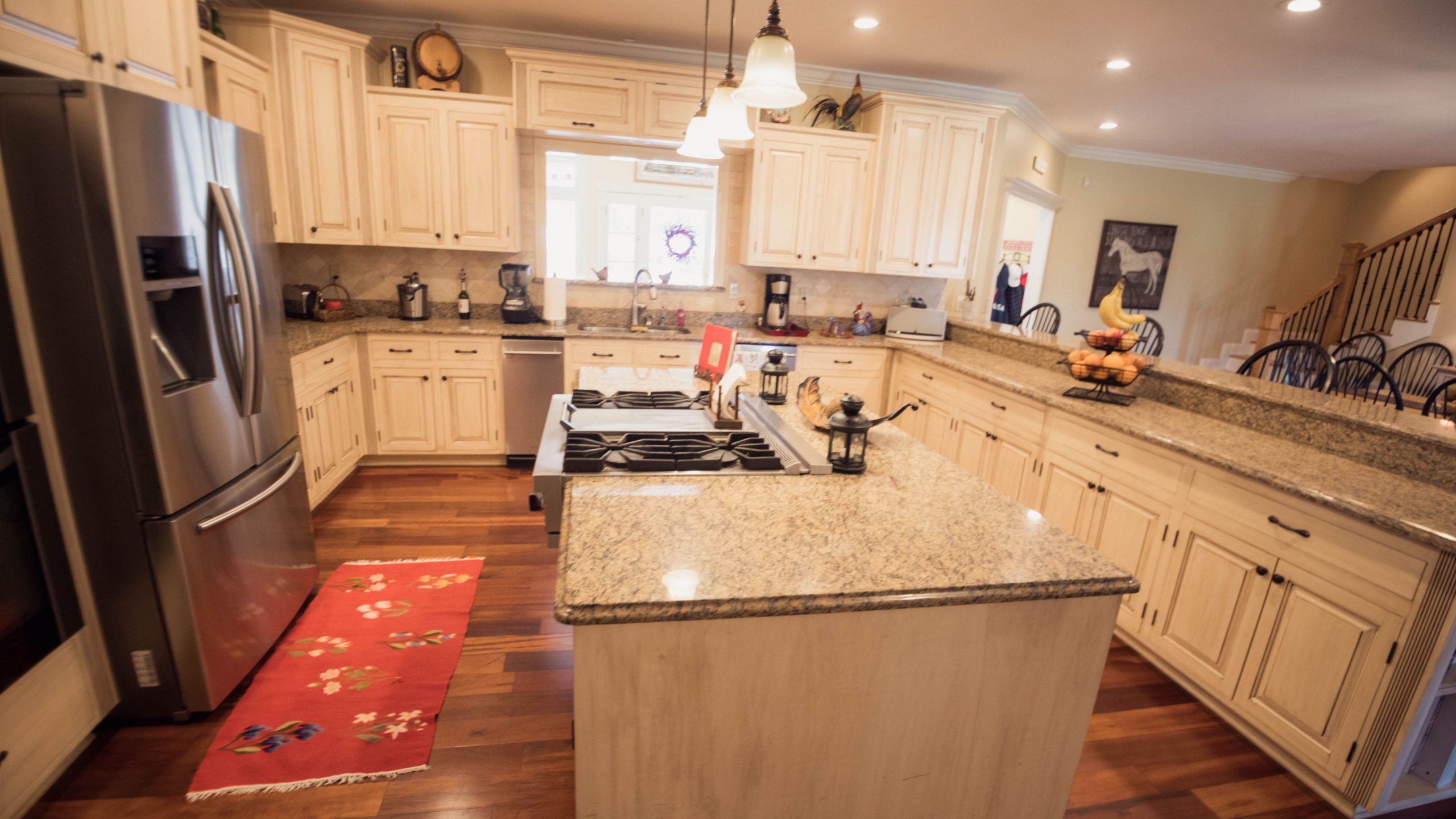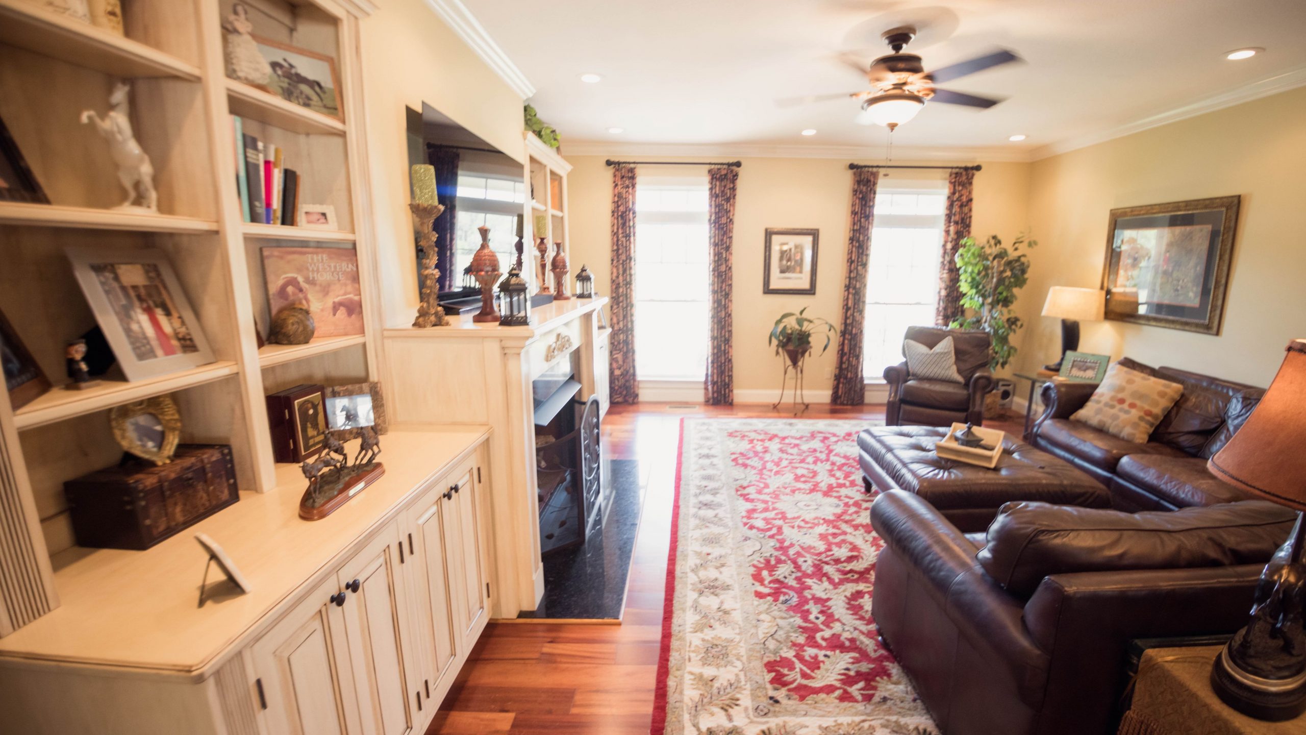The main residence is a Southern Living-inspired open layout with relaxing rocking chairs on the front porch overlooking the peach trees and horse pastures out front. The interior of the residence is a 5186 SF Under Roof with 4181 Heated and Cooled 4-BR / 4.5-BA custom crafted home complete with hardwood flooring, granite countertops, and an open living plan that welcomes entertaining friends and family. The gourmet kitchen is a fantastic space designed for the chef of the family to be able to cook but still be a part of entertaining guests. It boasts stainless steel appliances with gas burners assuring every dinner party prepared is a hit for all involved. The bar area is expansive and the perfect spot to have a seat in the kitchen area and enjoy a meal. Don't forget the walk-in pantry area for food storage and an abundant amount of custom cabinets for proper space to store dishes and other items. This space flows effortlessly into the dining and great room areas and makes transitioning guests after dinner a simple task.