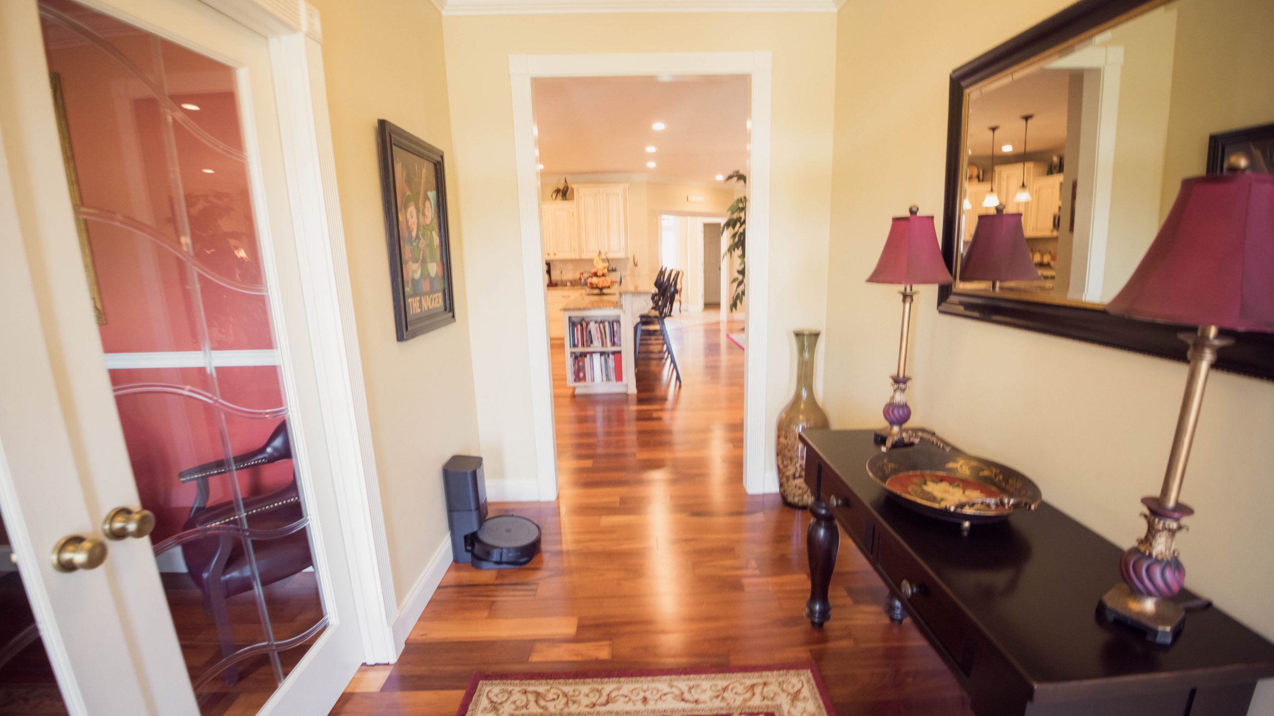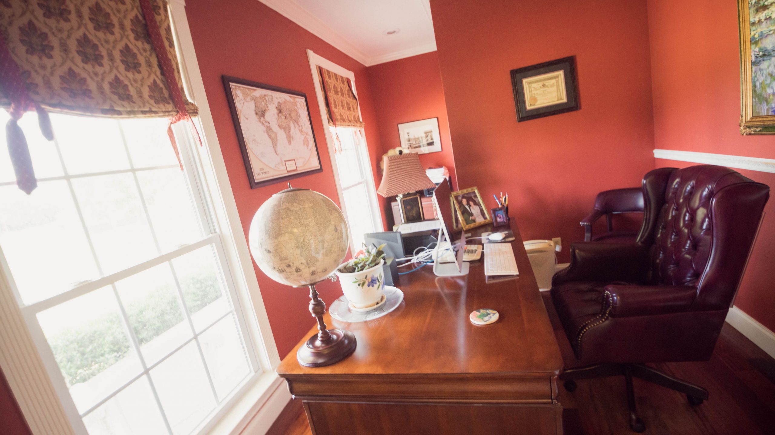 A custom office is situated near the front entry hall foyer and gives one the perfect view out over the manicured horse pastures, making a work from home situation an enjoyable experience.