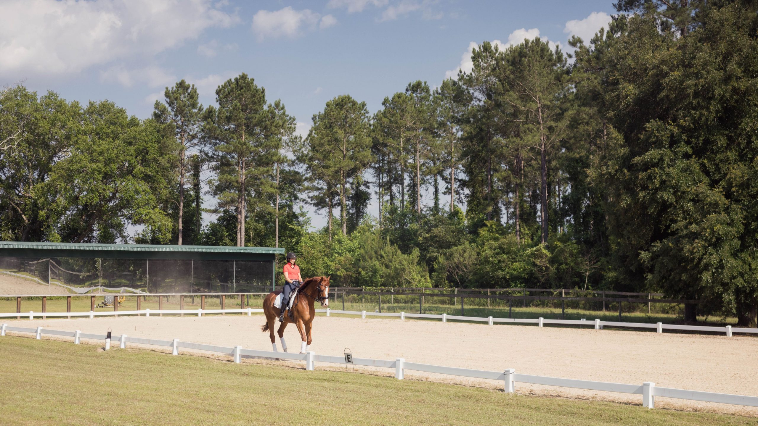- Full Size Mirrored Dressage Arena with Paddocks Behind Arena for Injured Horses