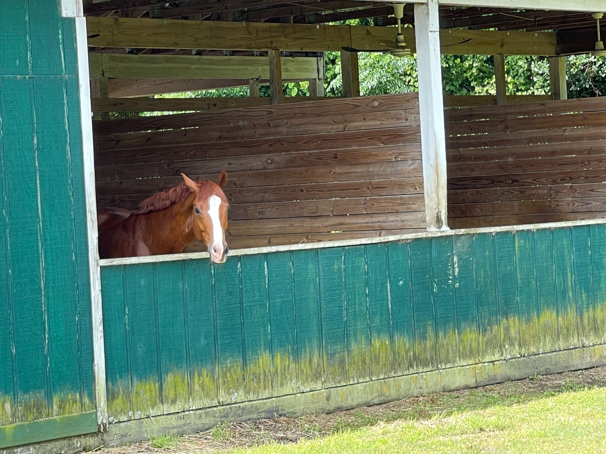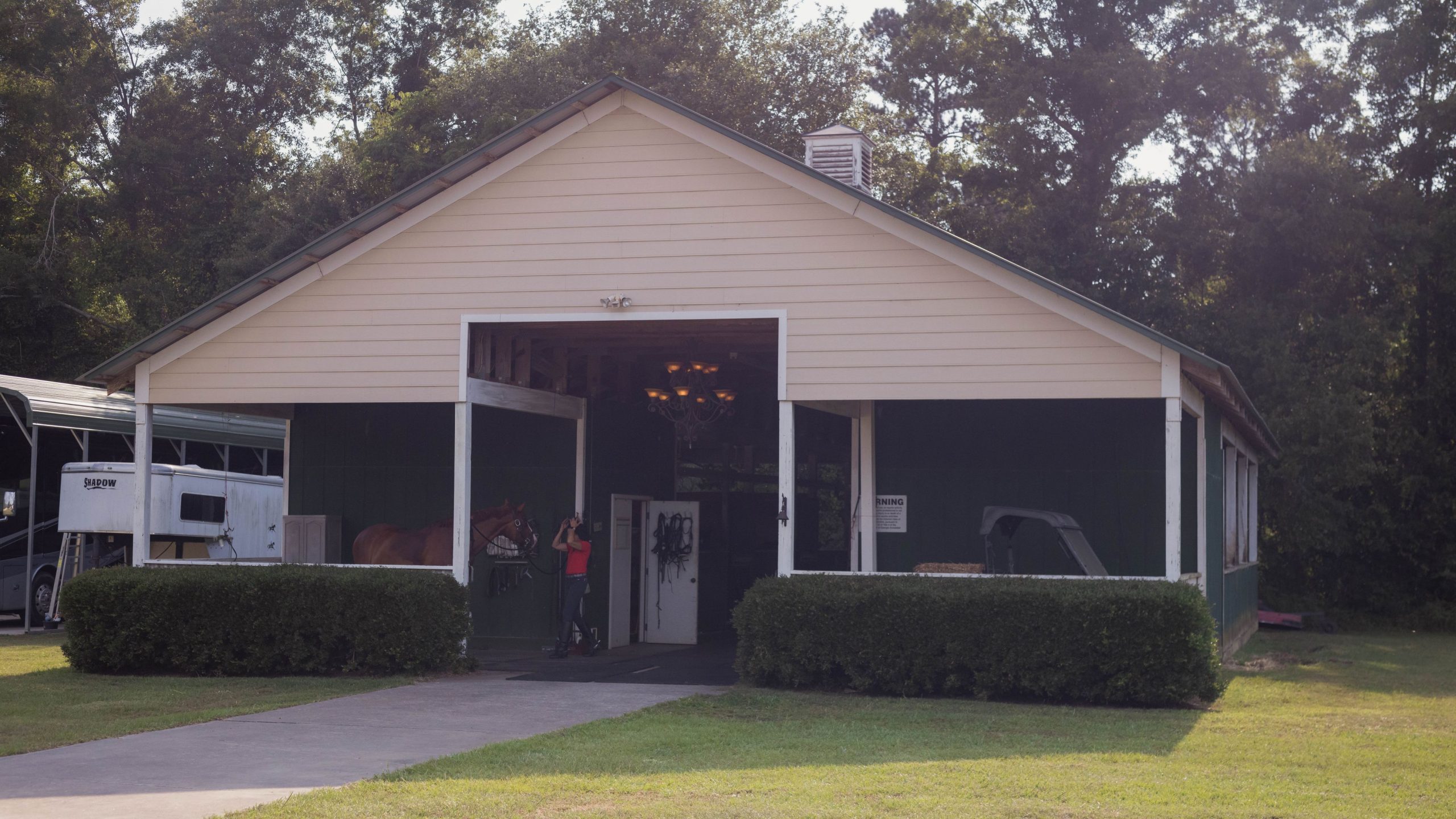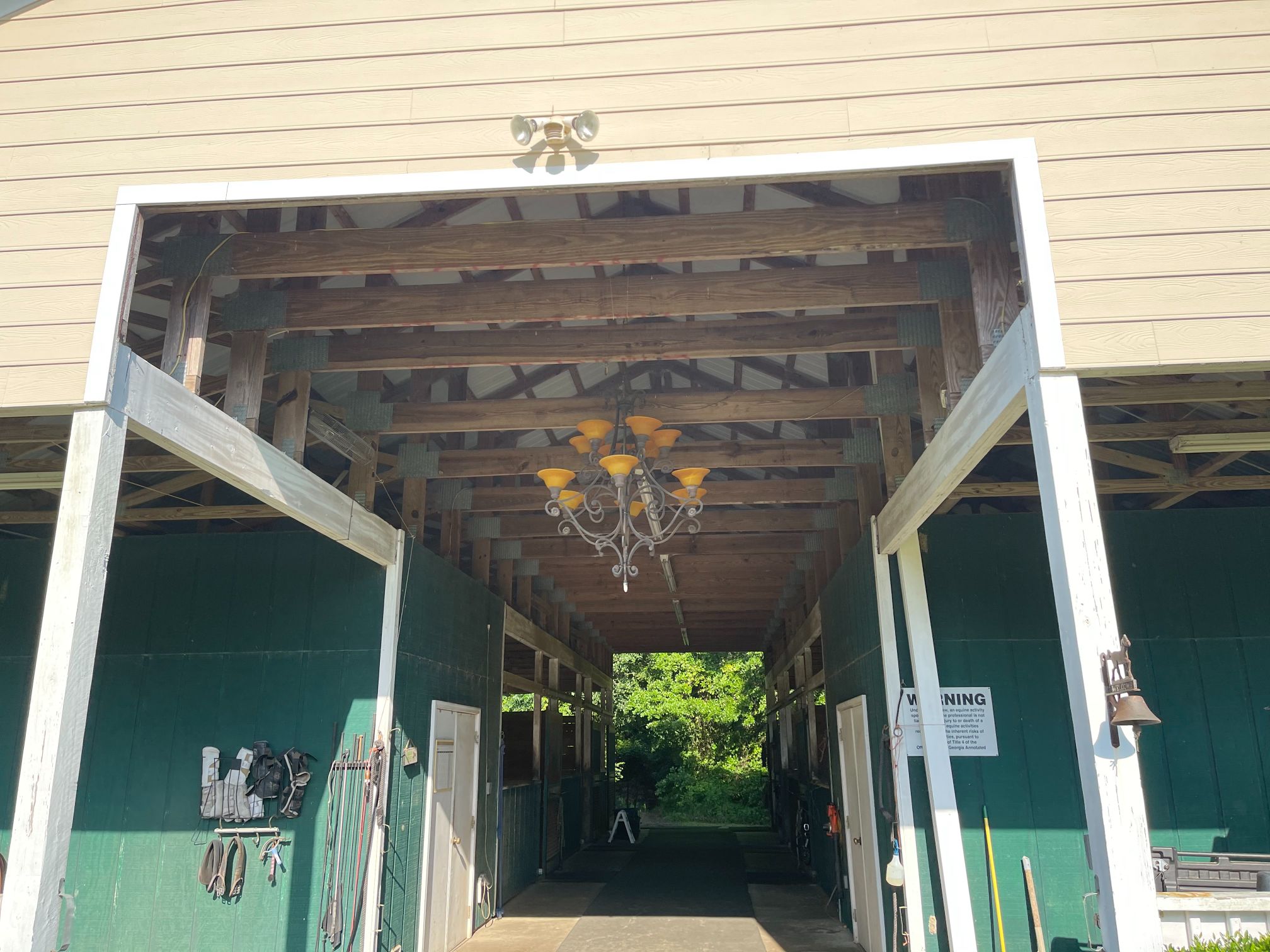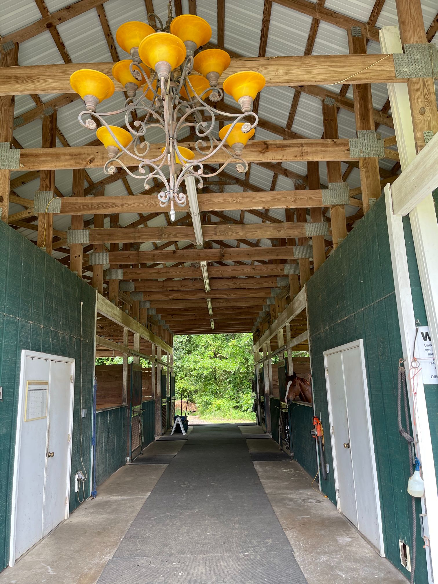 - 6 Stall Horse Barn Complete with Feed and Tack Rooms; Horse Washing Station; Polaris Storage Area and a Chandelier that Fits the Barn Perfectly