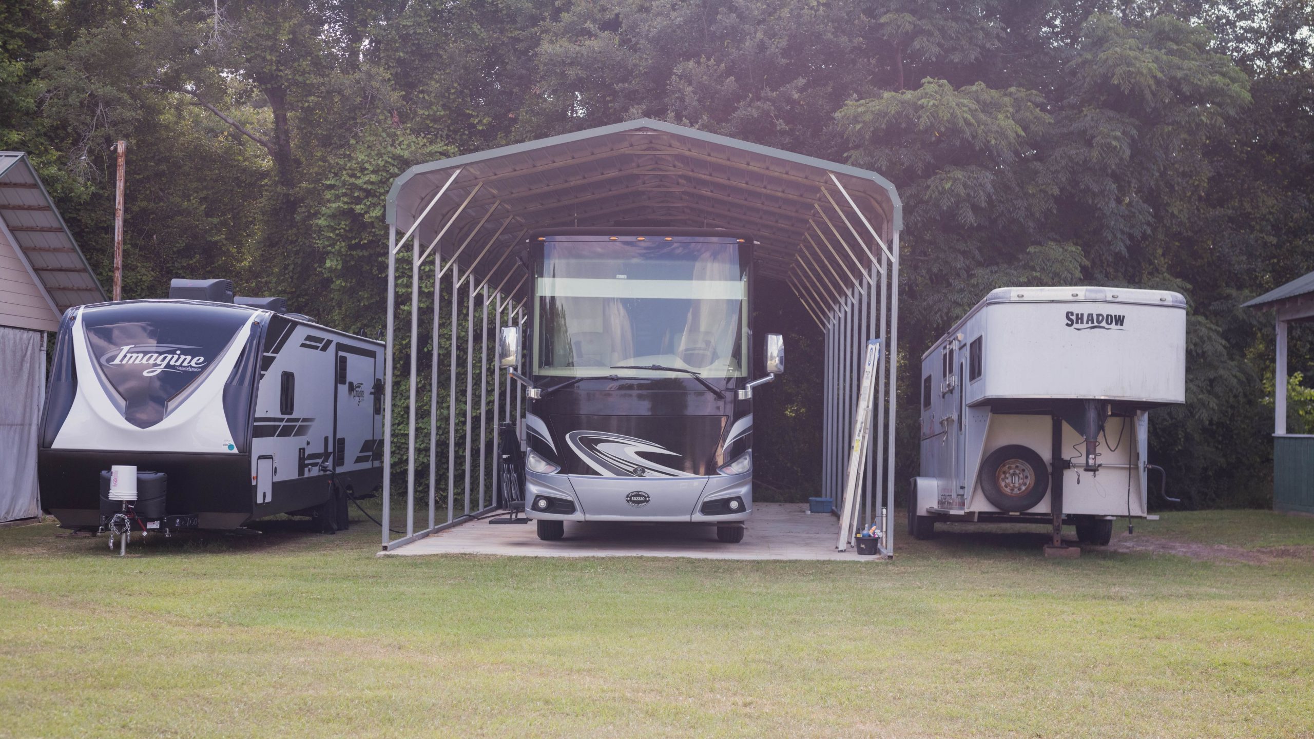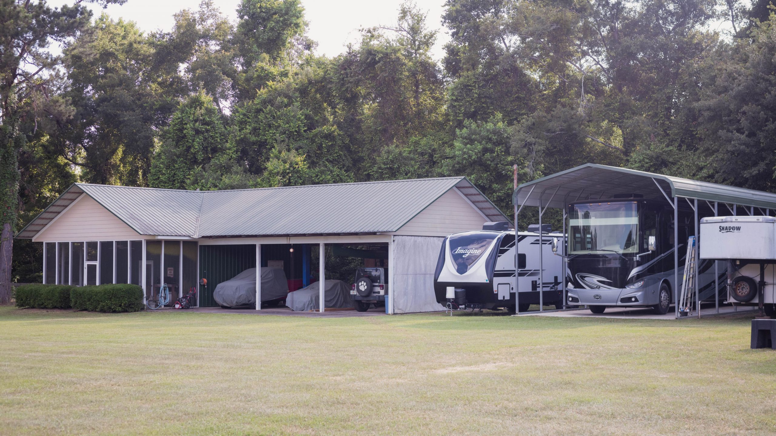 - Concrete Covered Luxury RV Carport and Area to Store Horse Trailers
