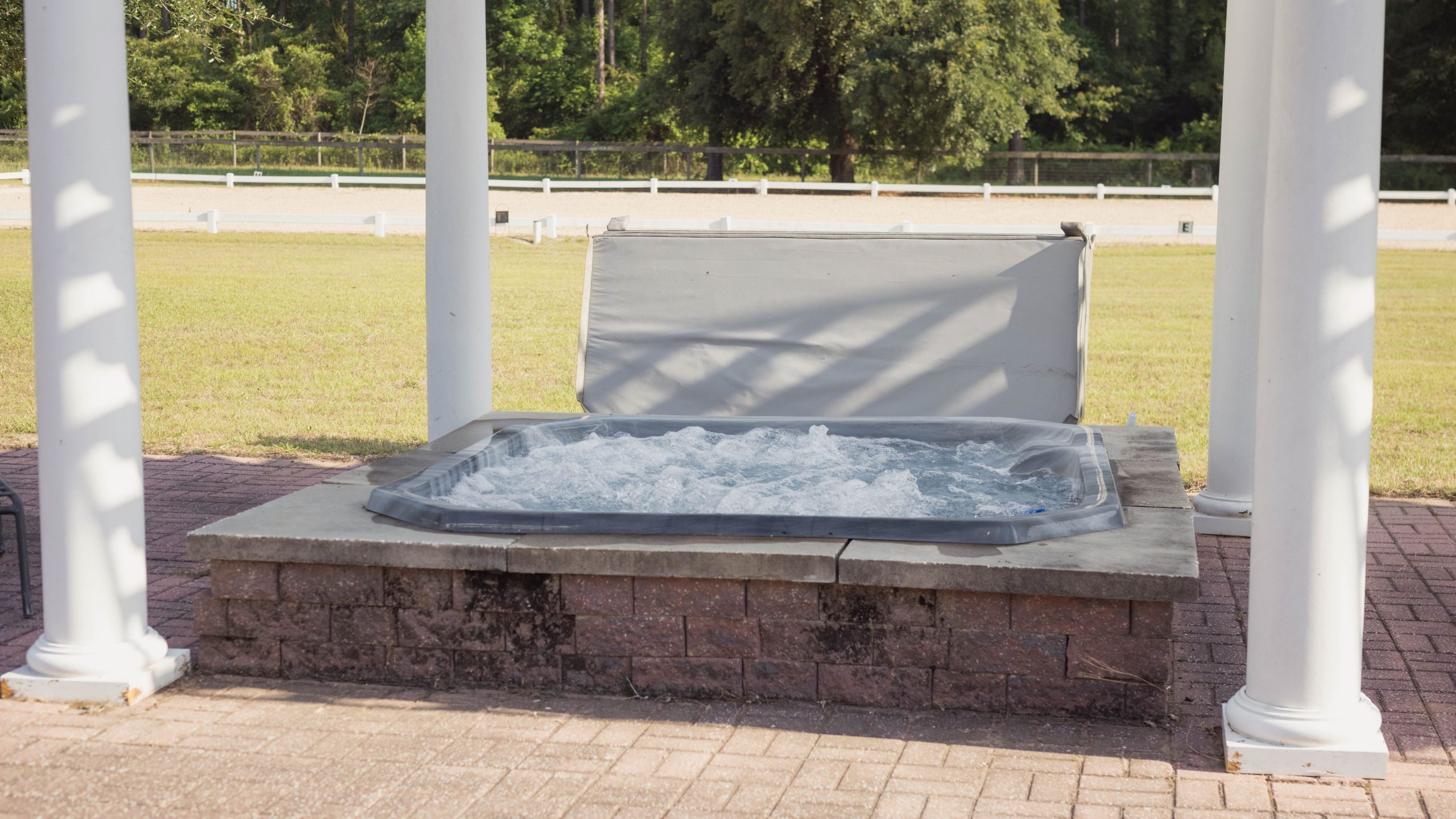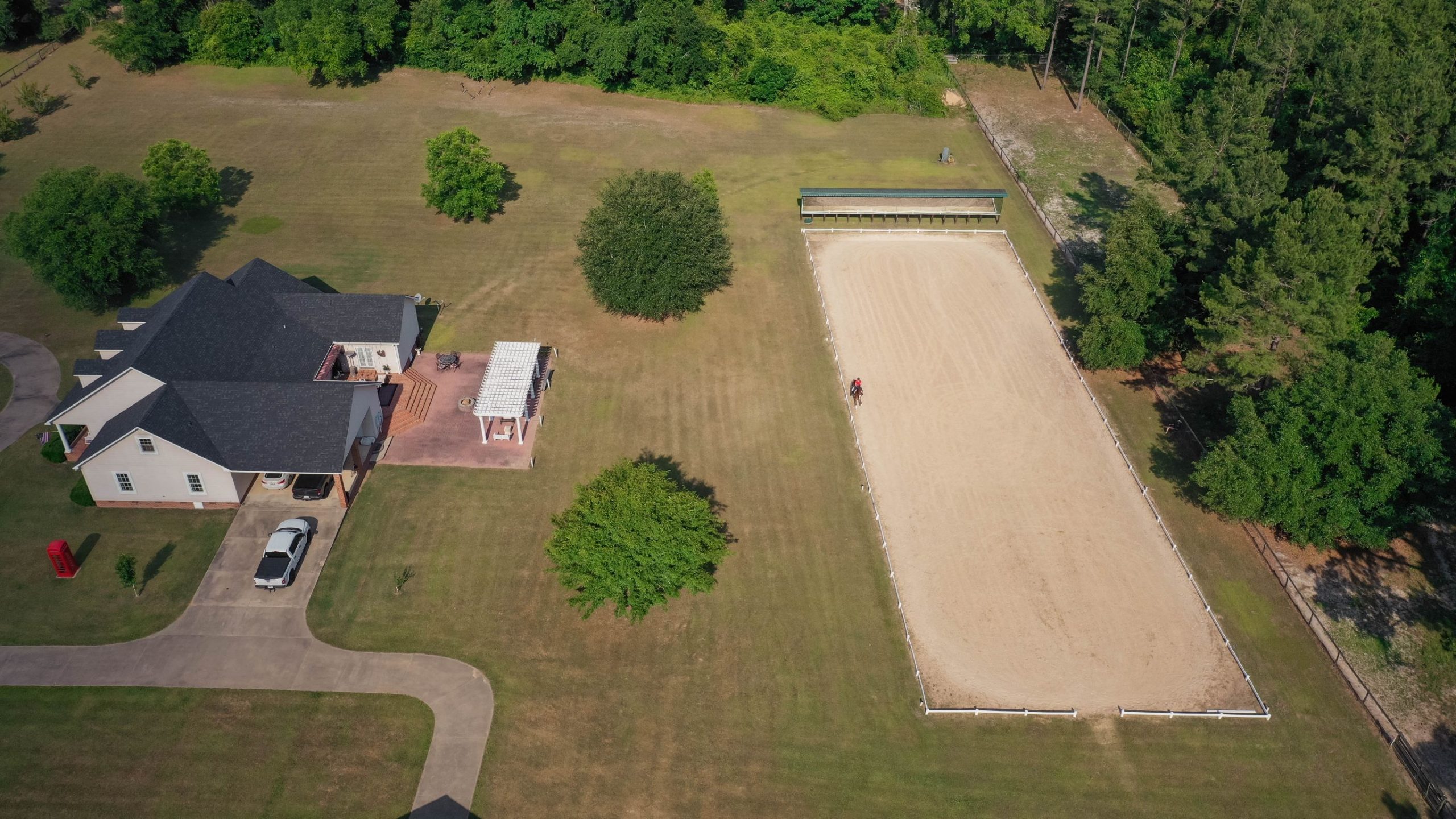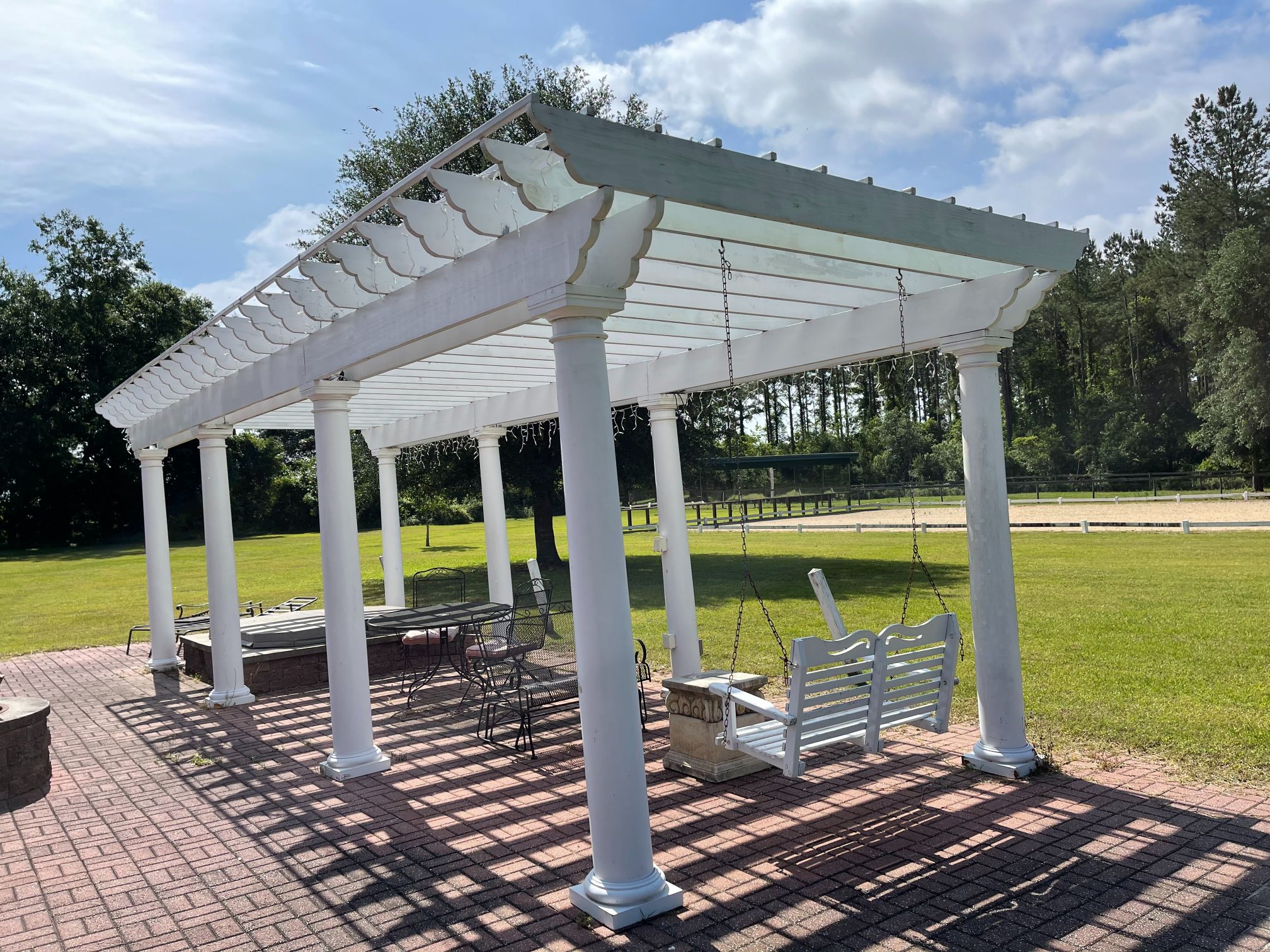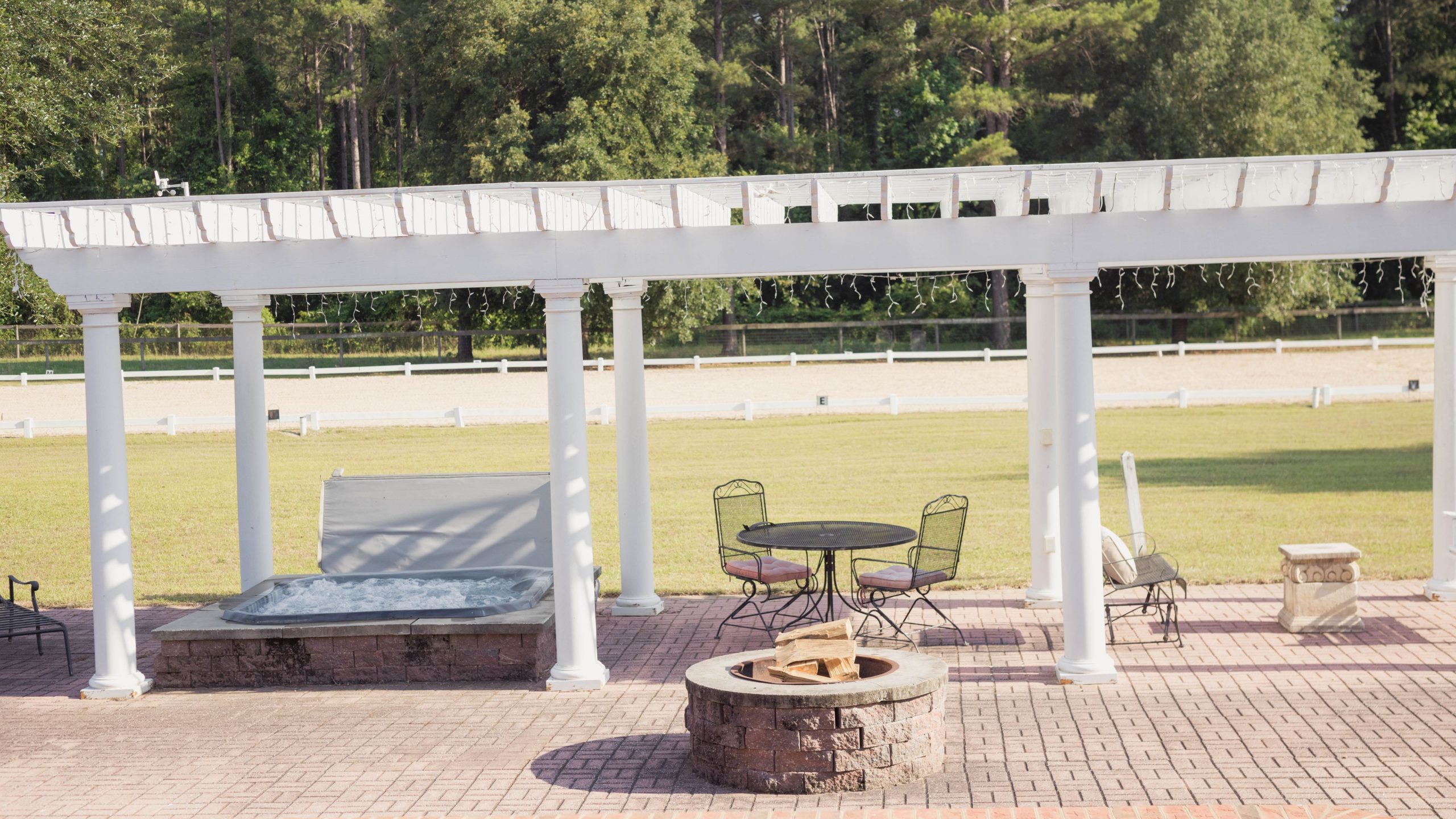 If mornings are your favorite time of day, enjoy your coffee and the sunrise in the spacious lighted sunroom area. The French doors give way to an inviting back patio space with a lighted seating area created on the bricked space perfect for taking in sunsets, sitting by the fire pit and watching the equestrians work the Dressage Arena. As you walk down the brick steps, the custom pergola awaits with the rolling waters of the hot tub and double porch swing welcoming all to take a seat and decompress after a fun day on the farm riding horses.