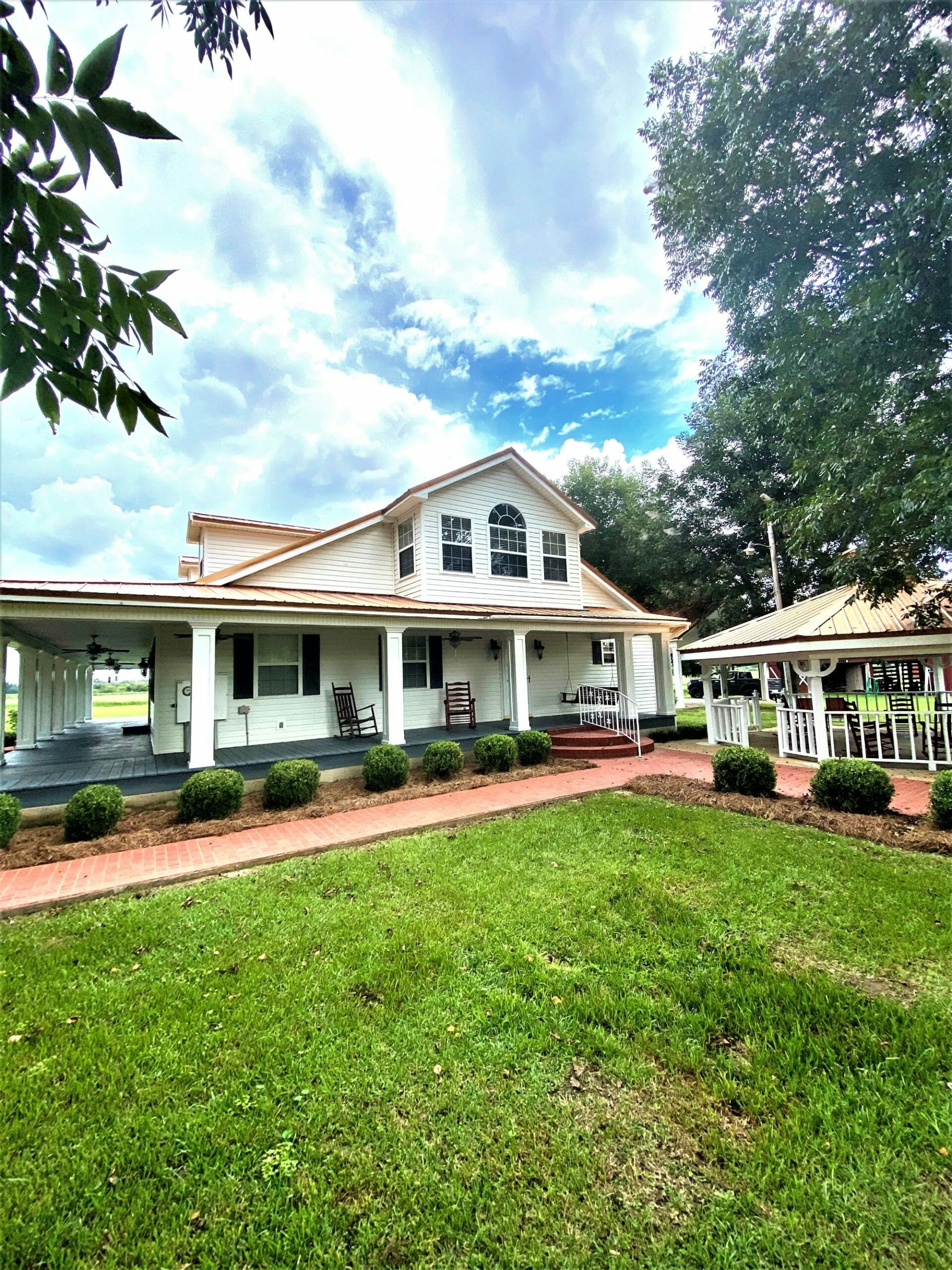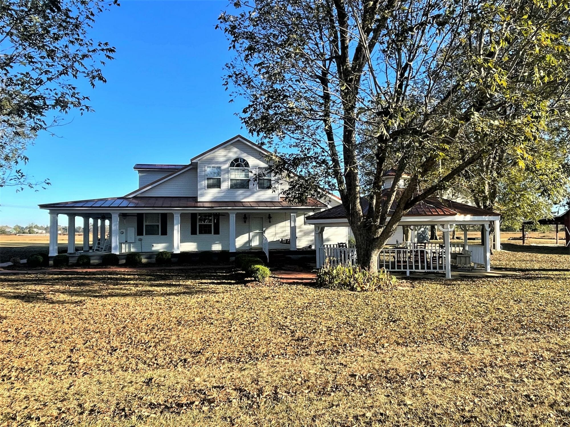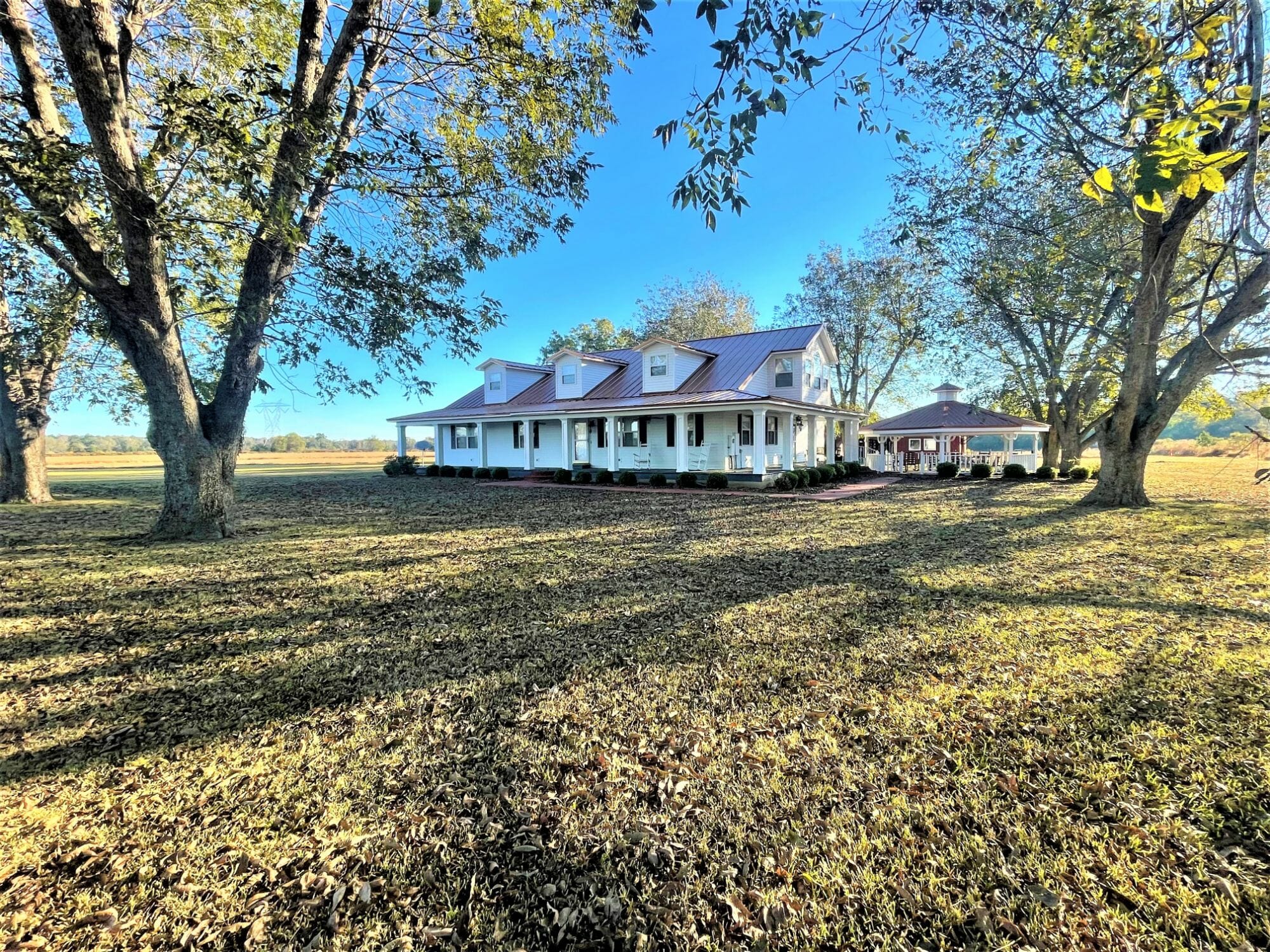 Laid back country living at its finest. Offering solitude and peaceful relaxation, Fitzgibbons Farm features a beautiful country farm with a lovely 3,608 sq ft quintessential country farmhouse. With wraparound porches, a copper-tin roof, rocking chairs a-plenty, and a large outdoor gazebo overlooking pecans, time seems to move a little slower here (and in a good way). The 5 BD/4B home is quite large and has plenty of space for a growing family. Adjacent to the back of the home is a separate three-car garage, and a classic wooden red barn. The farm has approximately 157 combined acres of cropland and pasture that would be perfect for raising cattle and/or horses, or multiple agriculture practices. Some of the cropland could be set up for irrigation with the permitted 10-inch well in place that would irrigate approximately 130 acres. There is a beautiful 2-acre pond on the property, in addition to 54 acres of wooded habitat that play host to abundant deer and turkey. With the added bonus of an annual income of $11,835 from a farm lease, this is a one-of-a-kind find in a truly beautiful setting.