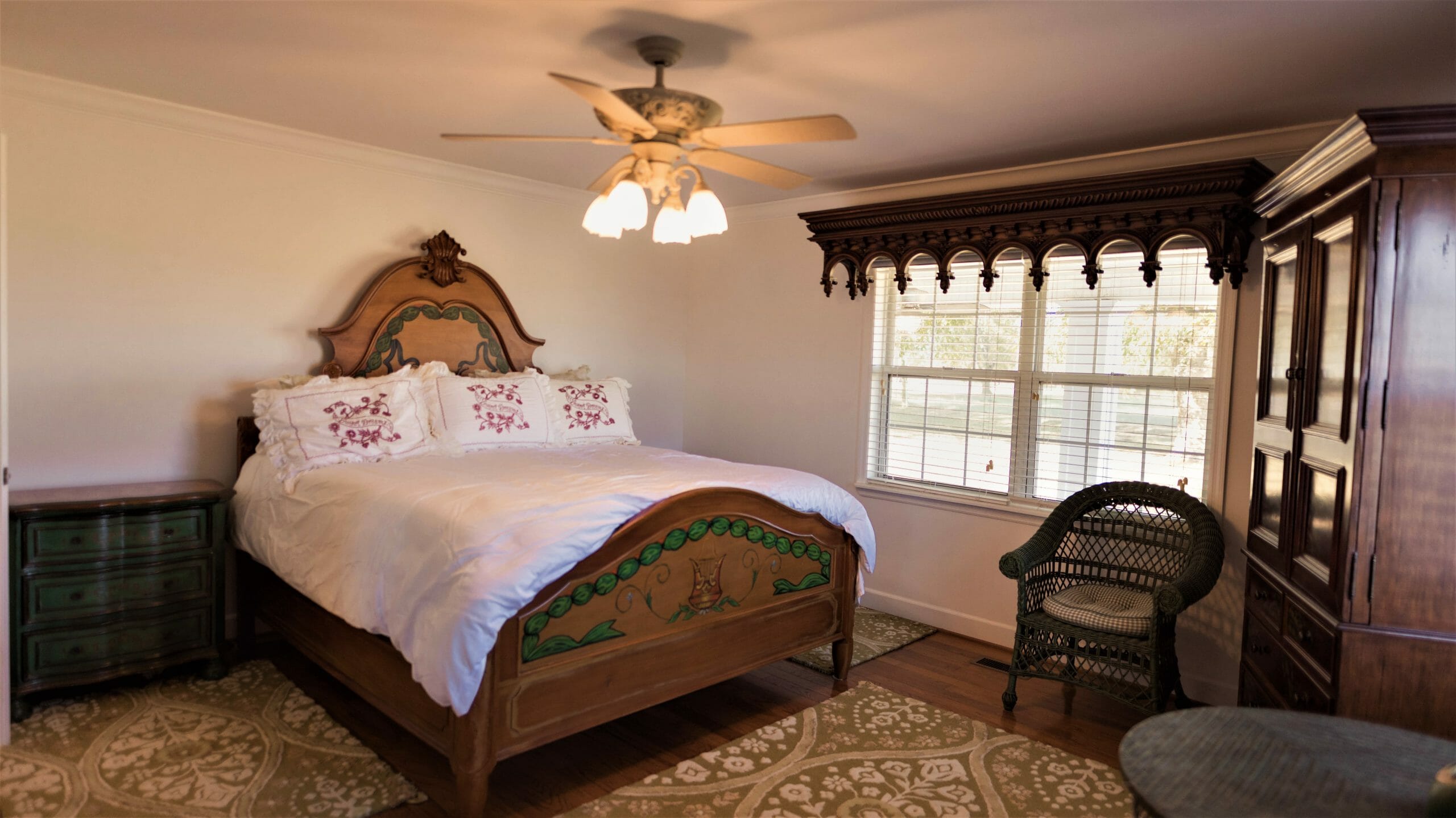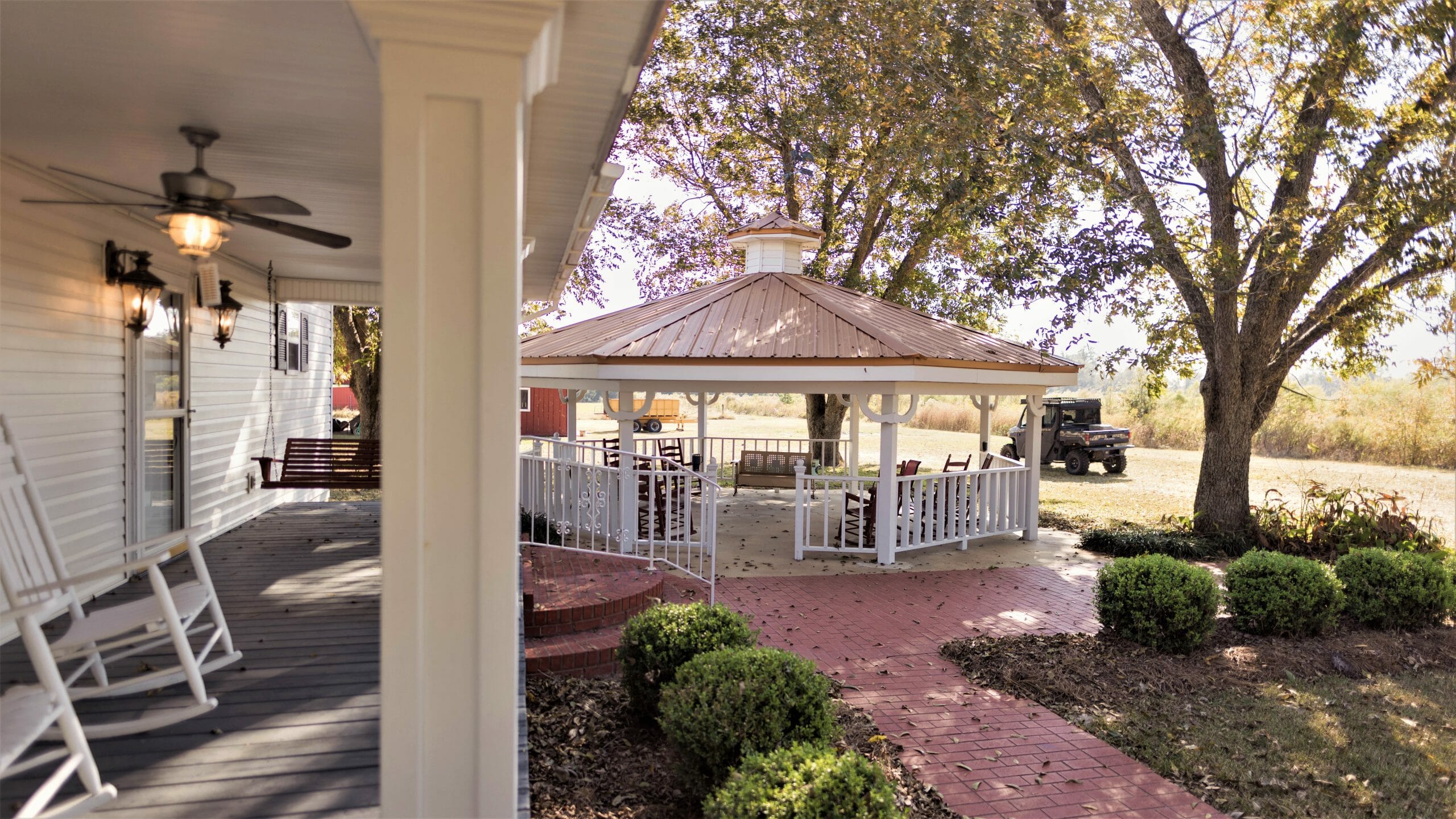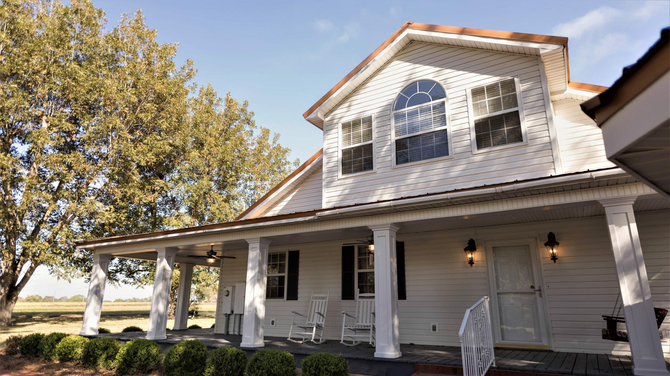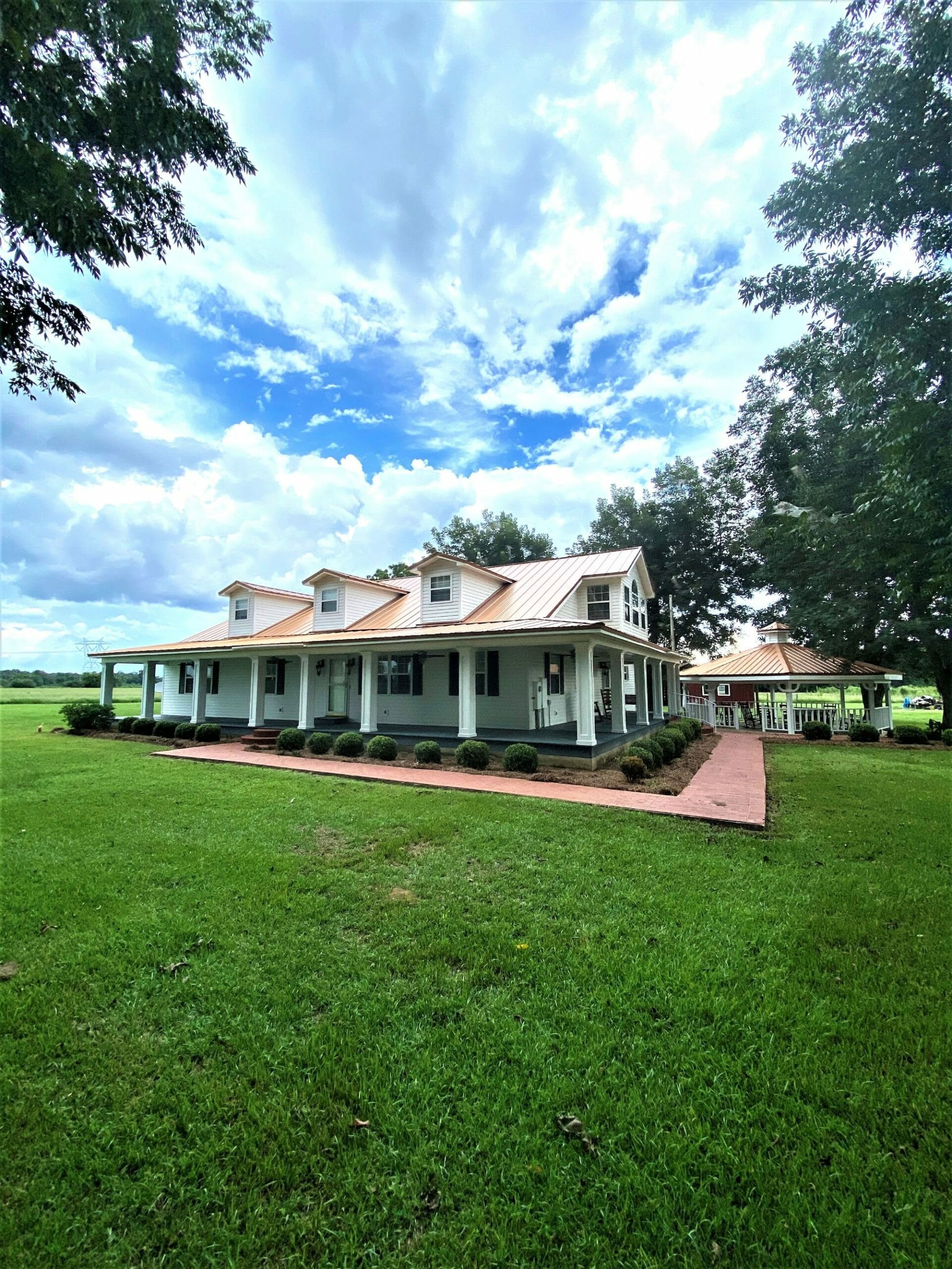 Laid back country living at its finest. Offering solitude and peaceful relaxation, Fitzgibbons Farm features a beautiful country farm with a lovely 3,608 sq ft quintessential country farmhouse. With wraparound porches, a copper-tin roof, rocking chairs a-plenty, and a large outdoor gazebo overlooking pecans, time seems to move a little slower here (and in a good way). The 5 BD/4B home is quite large and has plenty of space for a growing family. Adjacent to the back of the home is a separate three-car garage, and a classic wooden red barn. The farm has approximately 157 combined acres of cropland and pasture that would be perfect for raising cattle and/or horses, or multiple agriculture practices. Some of the cropland could be set up for irrigation with the permitted 10-inch well in place that would irrigate approximately 130 acres. There is a beautiful 2-acre pond on the property, in addition to 54 acres of wooded habitat that play host to abundant deer and turkey. With the added bonus of an annual income of $11,835 from a farm lease, this is a one-of-a-kind find in a truly beautiful setting.