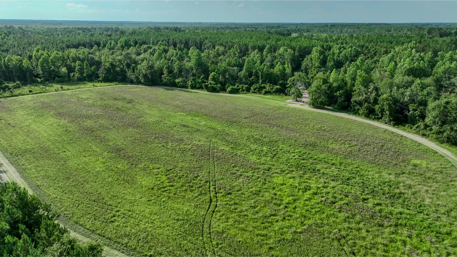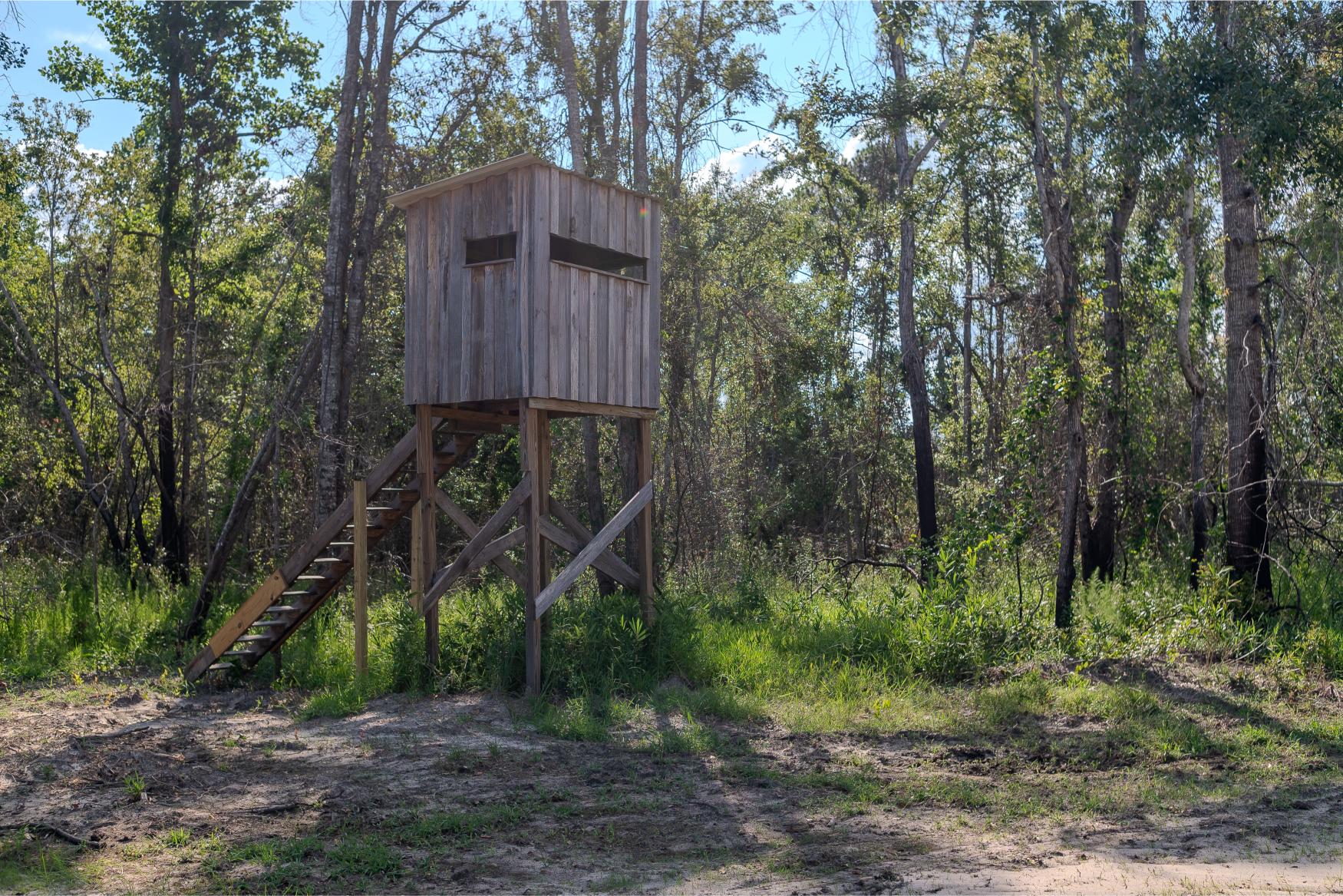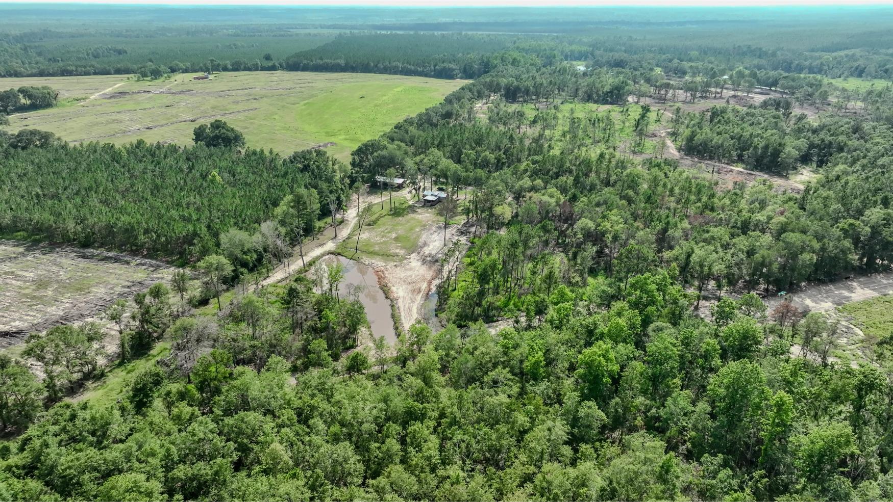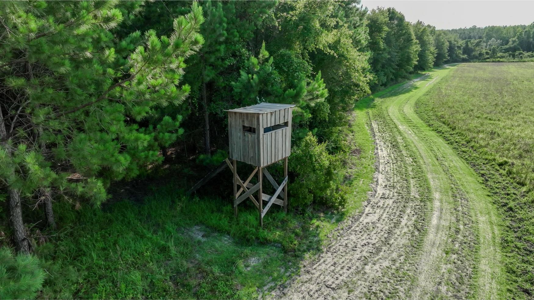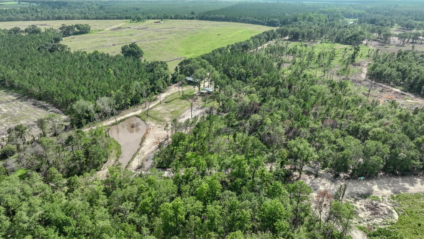 The land itself is a strong mix of habitat types with strong potential for hunting, wildlife management, and future timber income. A key highlight is the 1± acre pond, stocked with bass, bluegill, and shiners by Edge’s Aquatic Services, with a 12” overflow pipe and depth reaching 15 feet. The owners have routinely planted food plots twice a year, and the property includes three custom-built 5x6 shooting houses and three custom trough feeders. While some of the land has been clearcut, 34± acres are scheduled for replanting in slash pine in December 2025 as part of a reforestation program. Additional food plots could easily be added. The property also includes mature timber that will provide the future owner a variety of management options moving forward.