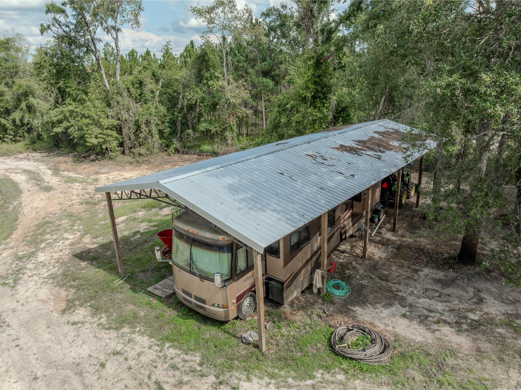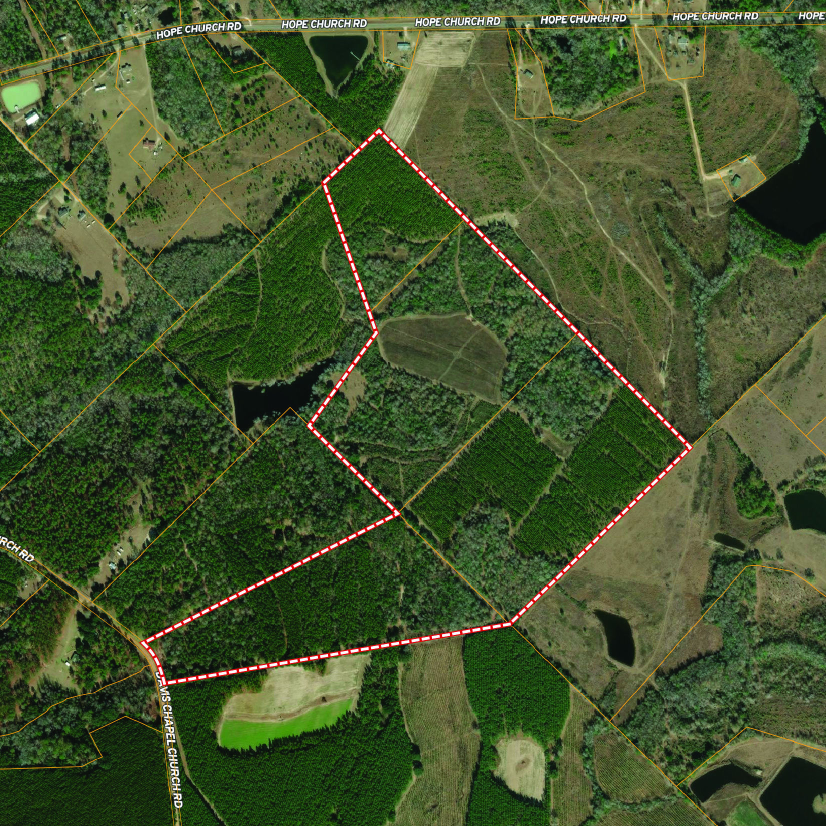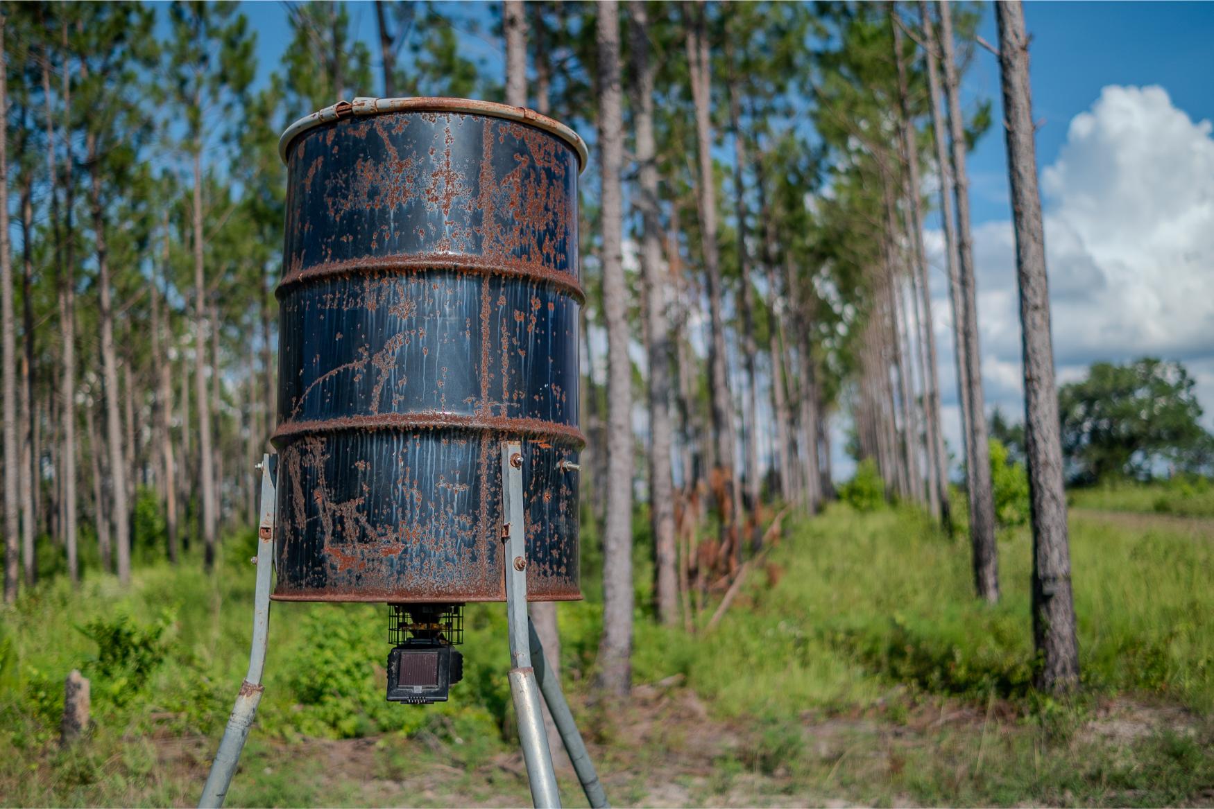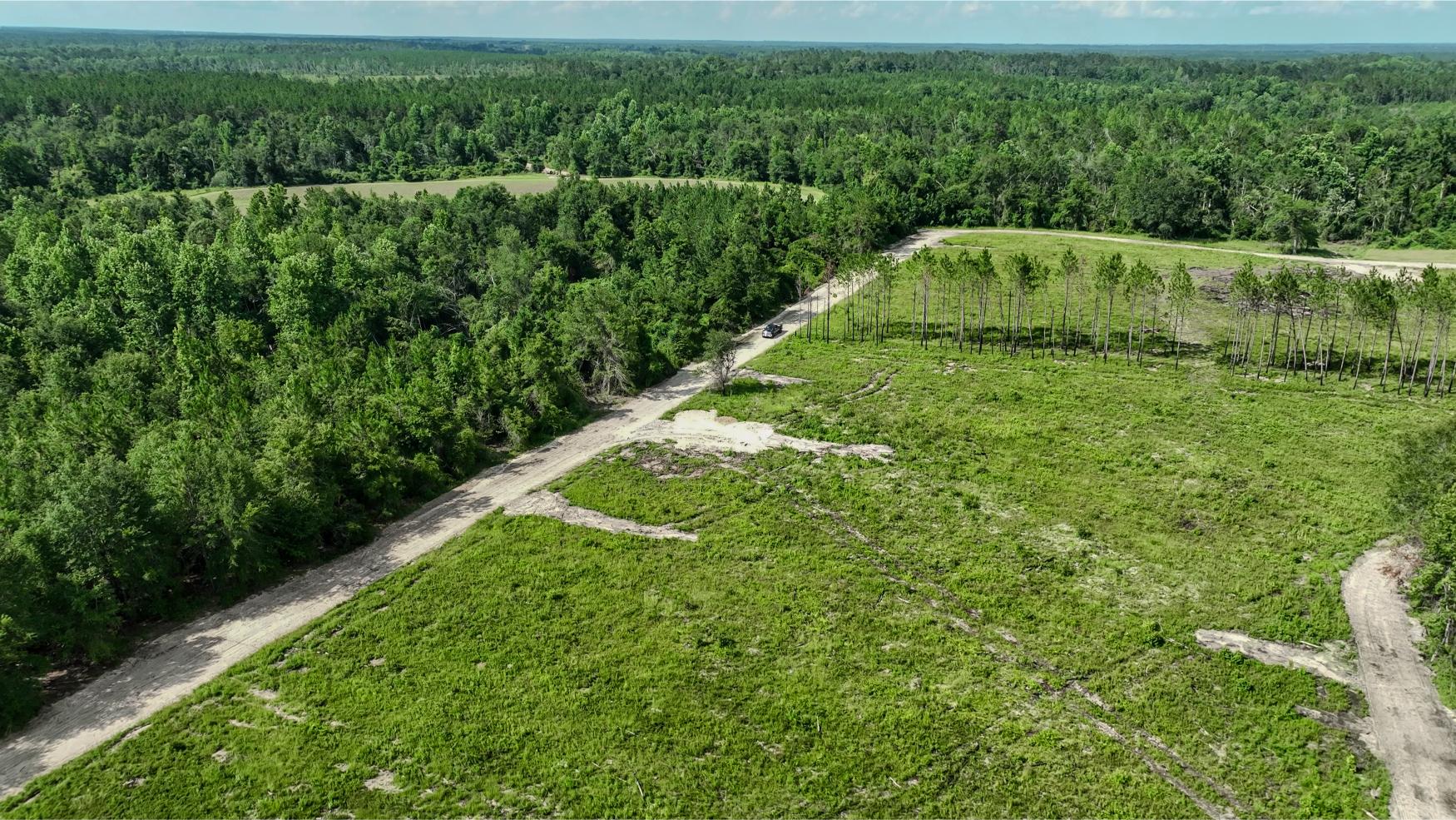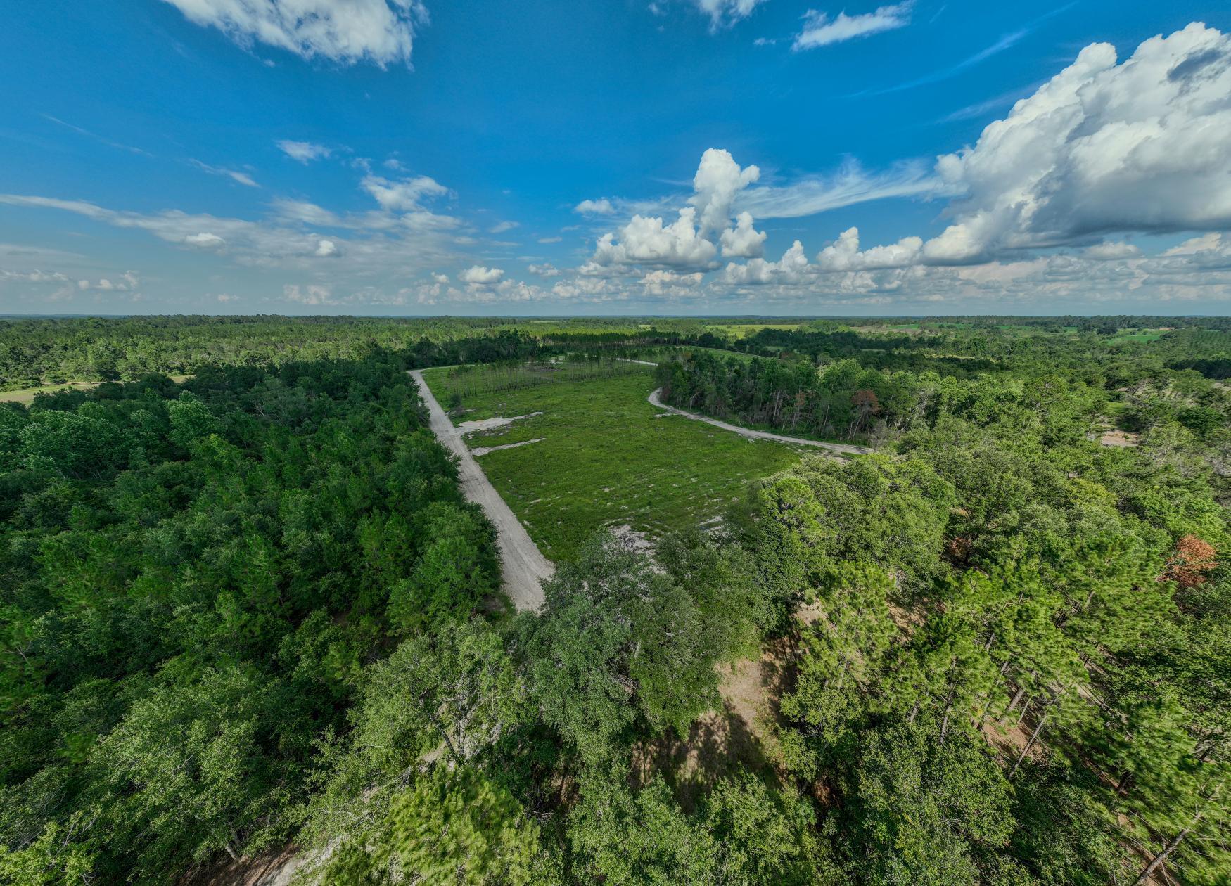 The land itself is a strong mix of habitat types with strong potential for hunting, wildlife management, and future timber income. A key highlight is the 1± acre pond, stocked with bass, bluegill, and shiners by Edge’s Aquatic Services, with a 12” overflow pipe and depth reaching 15 feet. The owners have routinely planted food plots twice a year, and the property includes three custom-built 5x6 shooting houses and three custom trough feeders. While some of the land has been clearcut, 34± acres are scheduled for replanting in slash pine in December 2025 as part of a reforestation program. Additional food plots could easily be added. The property also includes mature timber that will provide the future owner a variety of management options moving forward.