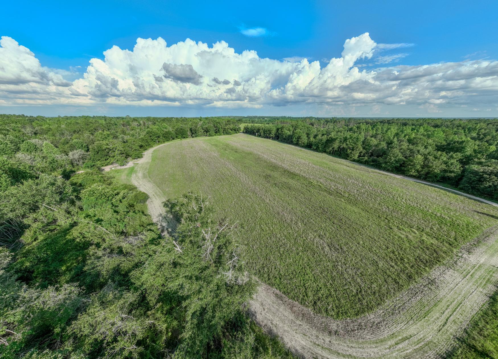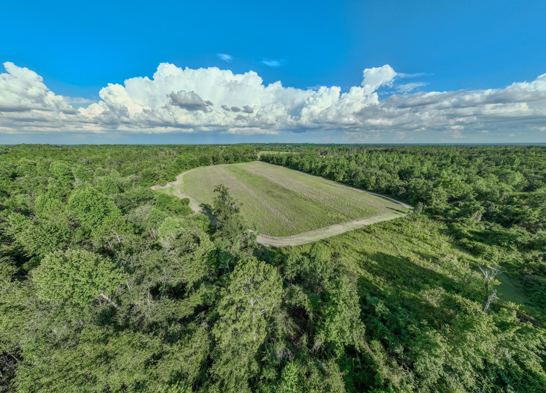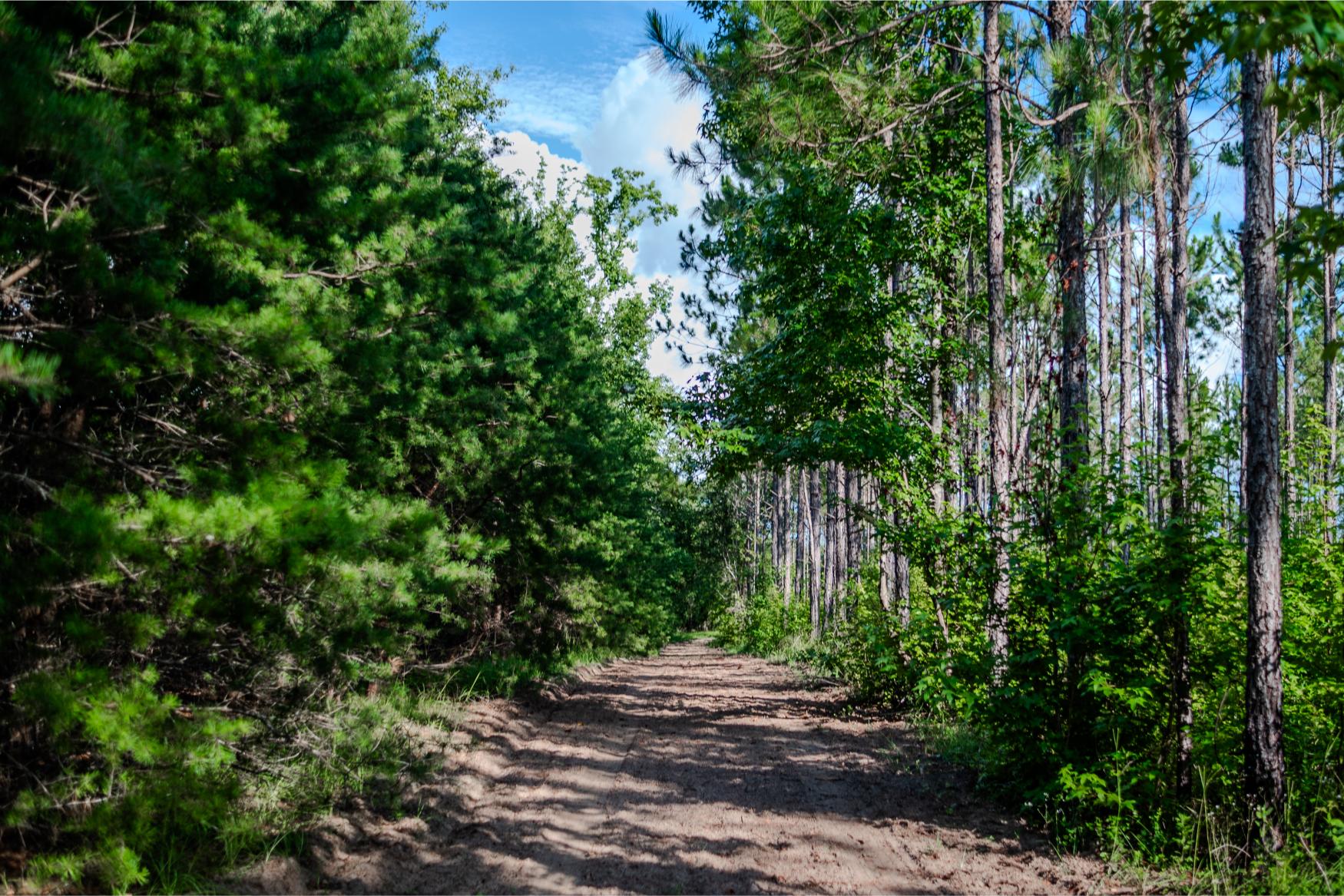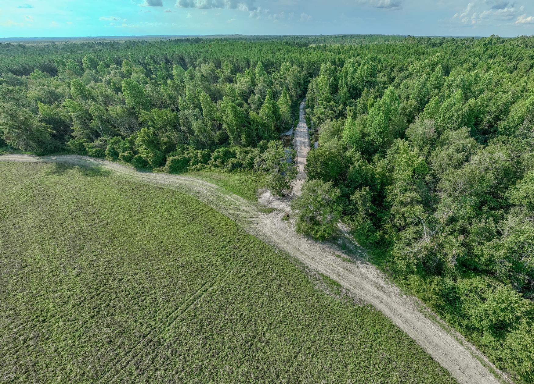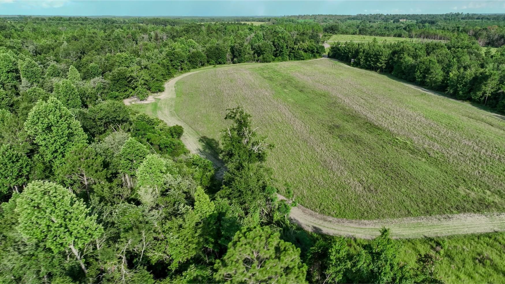 Access is private and secure, with just enough county-maintained road frontage to offer convenience without disturbing the peace or the hunting. The entrance is gated and fenced, and the driveway has been widened and improved. A well-laid trail and internal road system allows for easy travel throughout the property.
