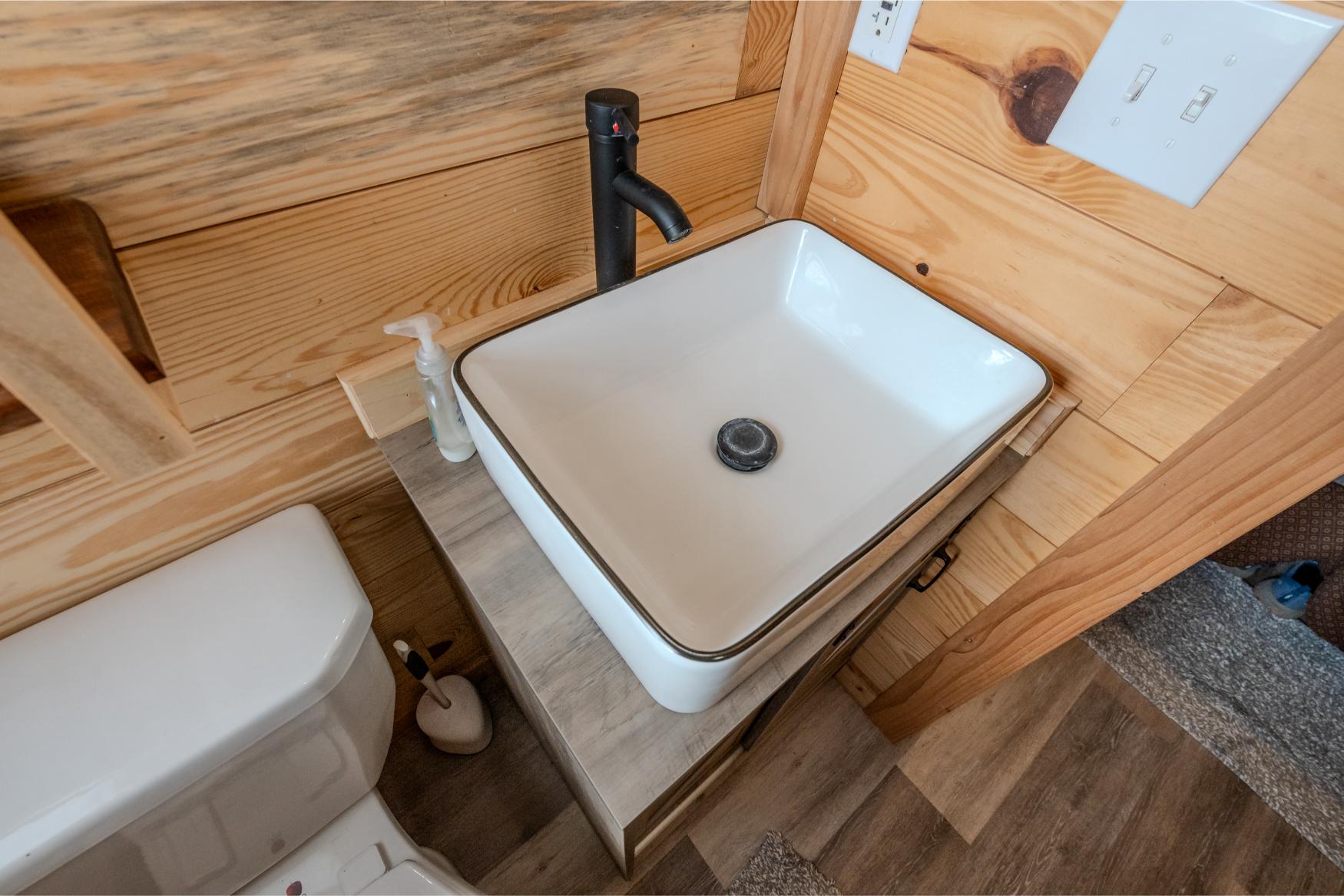 - Custom 640± sq ft home, featuring walls hand-milled by the owner — every board and nail thoughtfully placed