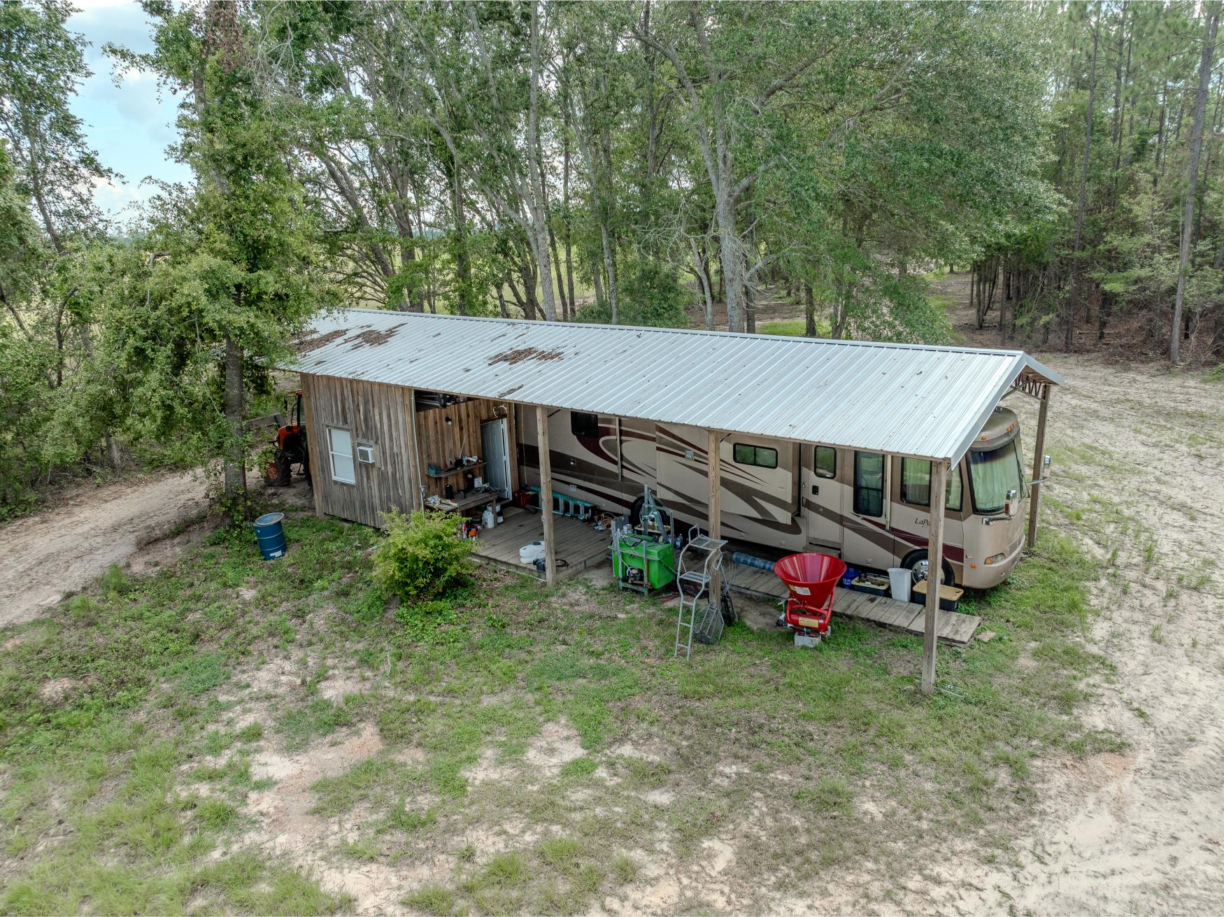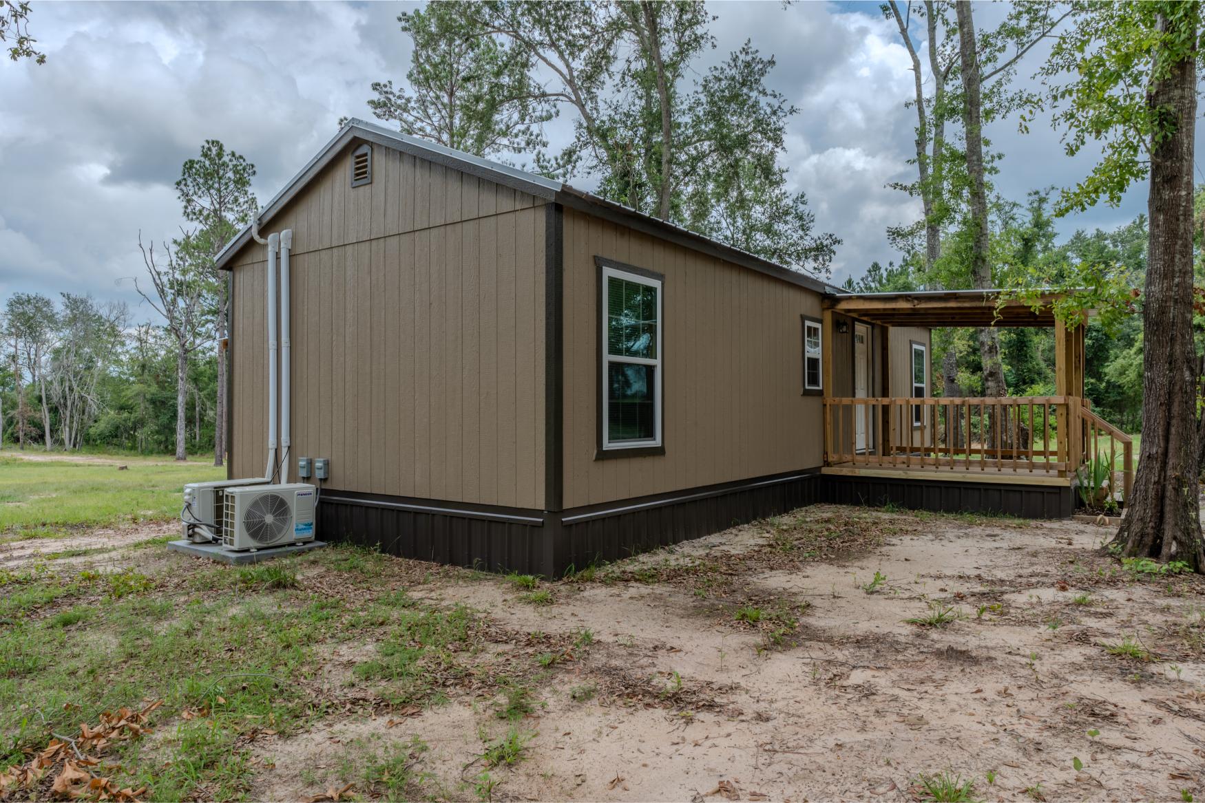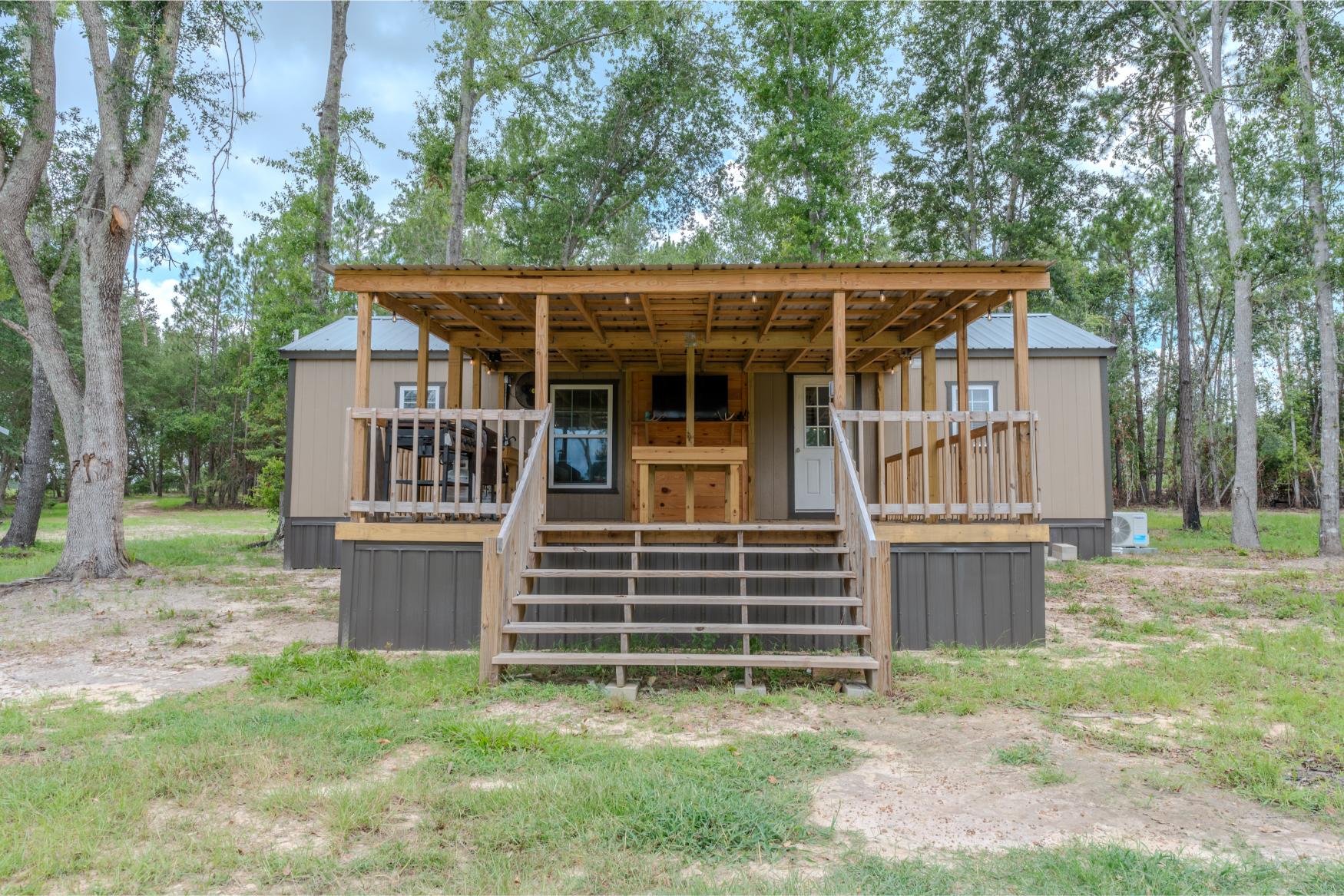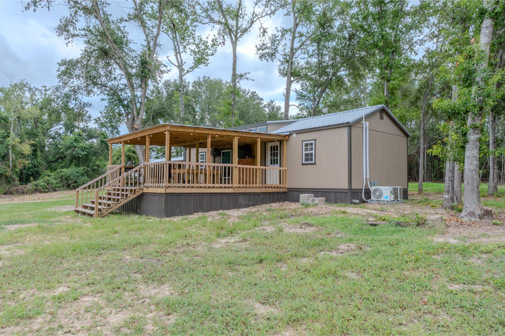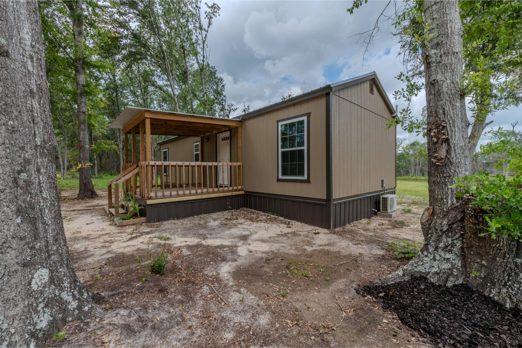 Located in the quiet countryside of Alamo, Georgia, Triple H Farm is a turnkey 120± acre property thoughtfully set up for comfort, recreation, and the enjoyment and pursuit of wildlife. The farm features a recently completed 16x40 (640 sq ft) custom-built home, finished approximately six months ago. Built with care and craftsmanship by the owner, every board was hand-selected and milled on-site. The home includes soft-close cabinets and drawers, granite countertops, two bedrooms and bathrooms, washer and dryer, all in a smart layout that maximizes space. The interior is trimmed with pine walls, two of which are insulated, and portions of the ceiling are spray-foam insulated for energy efficiency. Despite being a portable building, it’s anchored securely with matching skirting and is fully up to code with a 150 amp electrical service. Utilities are underground, and fiber optic internet was added in April 2025. The power service is through Little Ocmulgee EMC, which allows users to monitor usage through a mobile app. The home is extremely efficient, with three AC units keeping it cool while maintaining a very reasonable power bill.