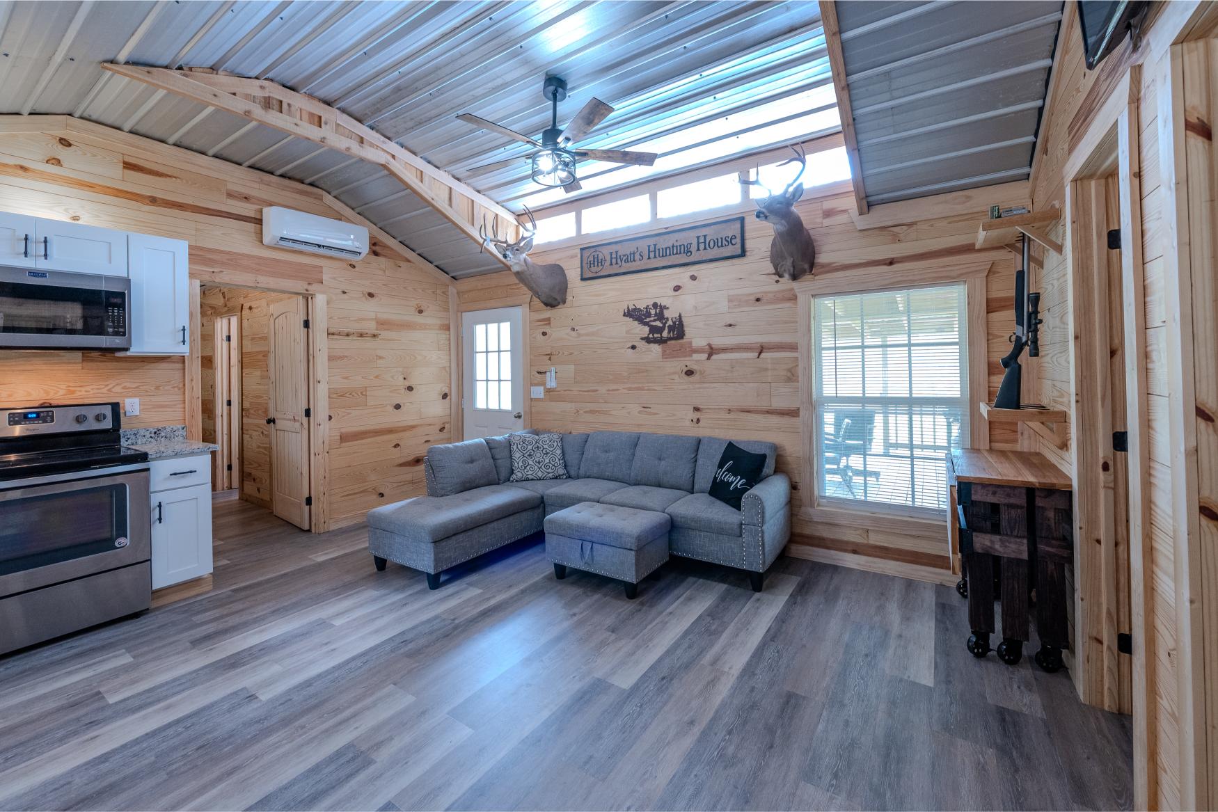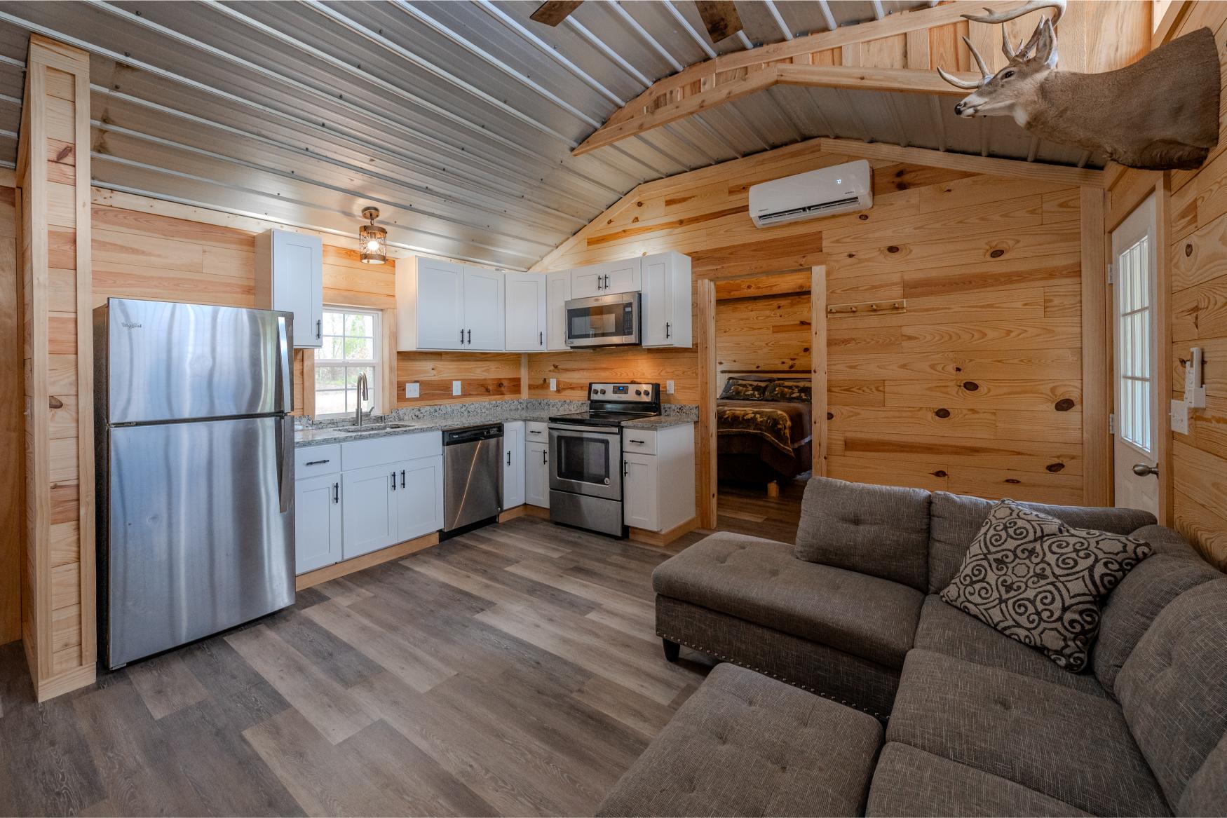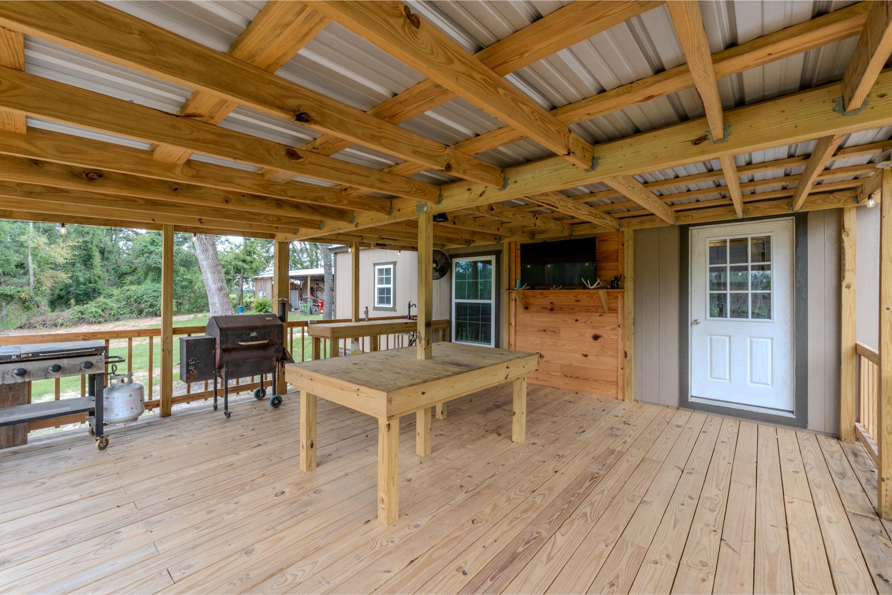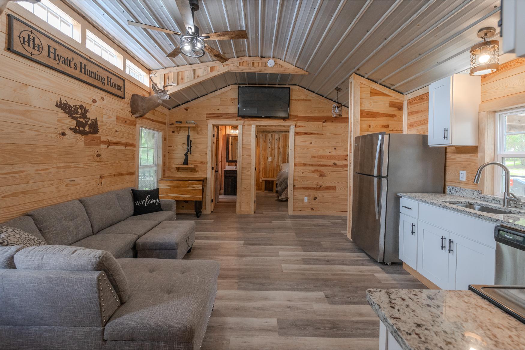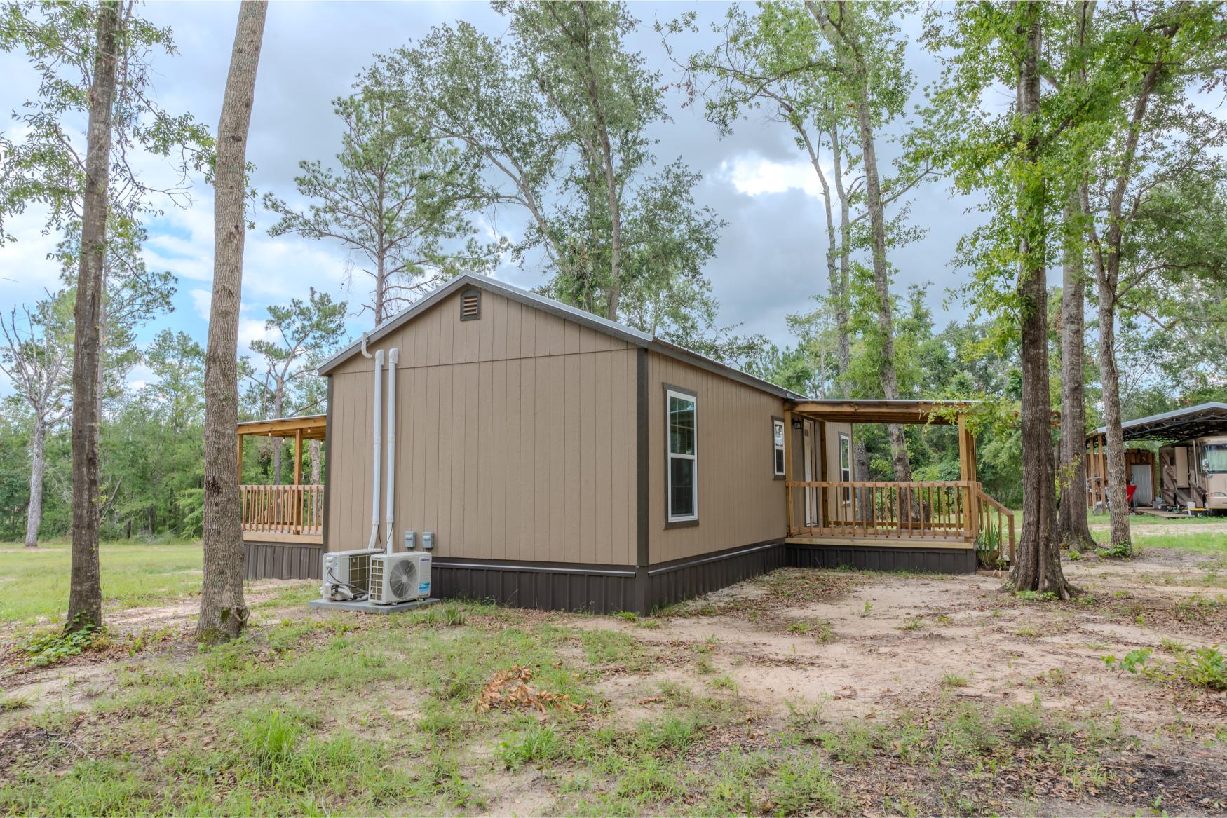 Located in the quiet countryside of Alamo, Georgia, Triple H Farm is a turnkey 120± acre property thoughtfully set up for comfort, recreation, and the enjoyment and pursuit of wildlife. The farm features a recently completed 16x40 (640 sq ft) custom-built home, finished approximately six months ago. Built with care and craftsmanship by the owner, every board was hand-selected and milled on-site. The home includes soft-close cabinets and drawers, granite countertops, two bedrooms and bathrooms, washer and dryer, all in a smart layout that maximizes space. The interior is trimmed with pine walls, two of which are insulated, and portions of the ceiling are spray-foam insulated for energy efficiency. Despite being a portable building, it’s anchored securely with matching skirting and is fully up to code with a 150 amp electrical service. Utilities are underground, and fiber optic internet was added in April 2025. The power service is through Little Ocmulgee EMC, which allows users to monitor usage through a mobile app. The home is extremely efficient, with three AC units keeping it cool while maintaining a very reasonable power bill.