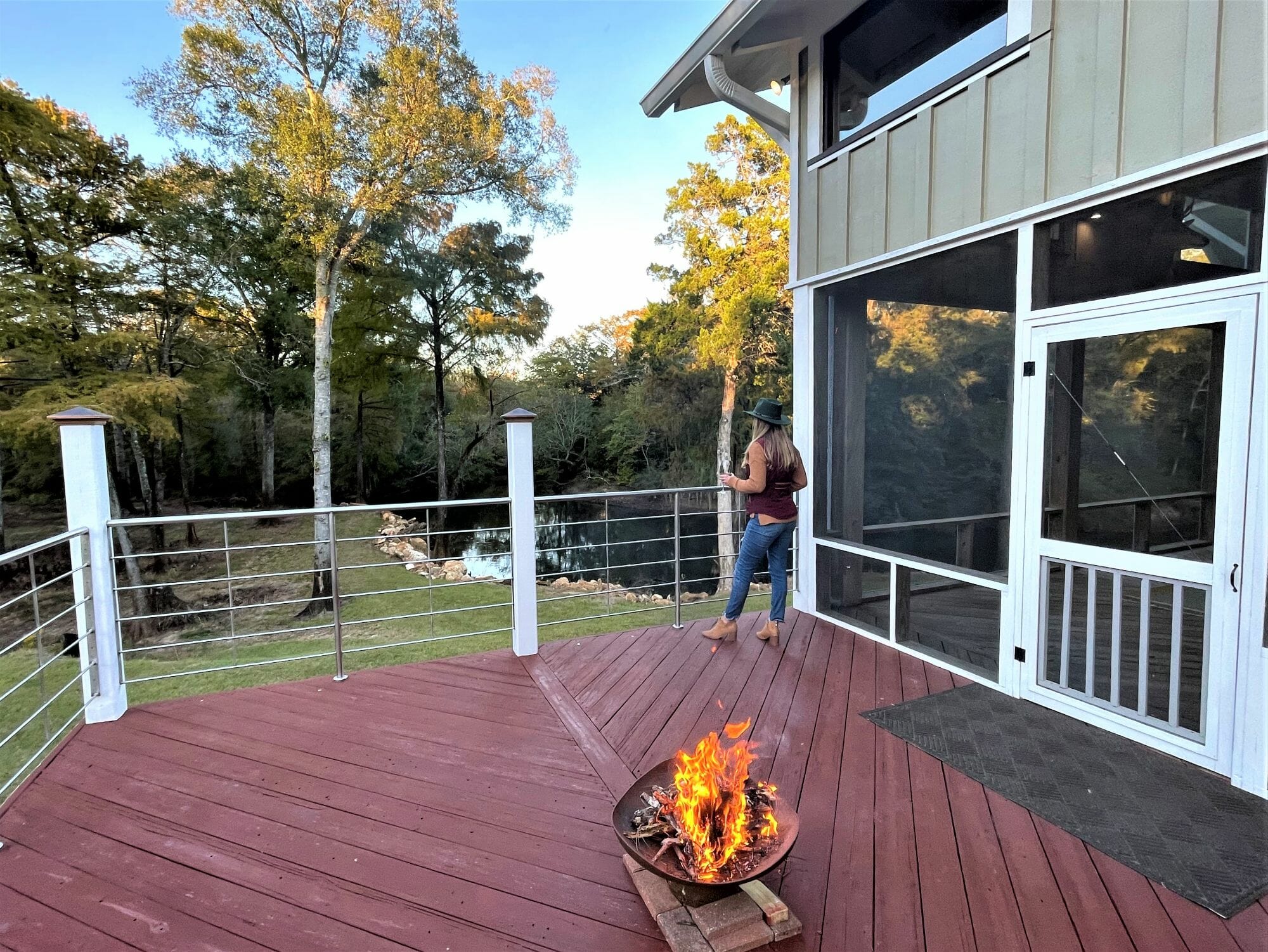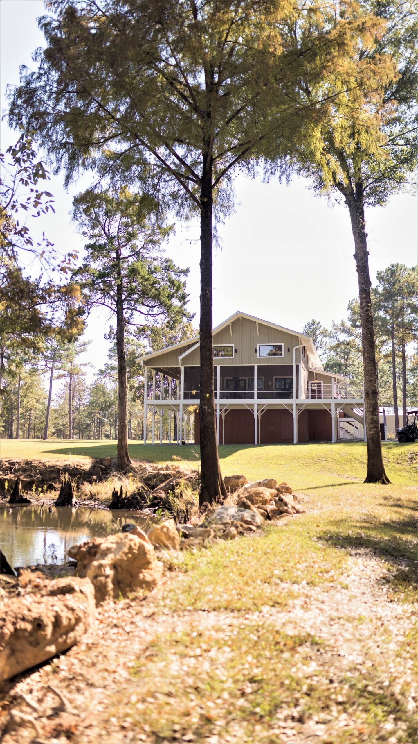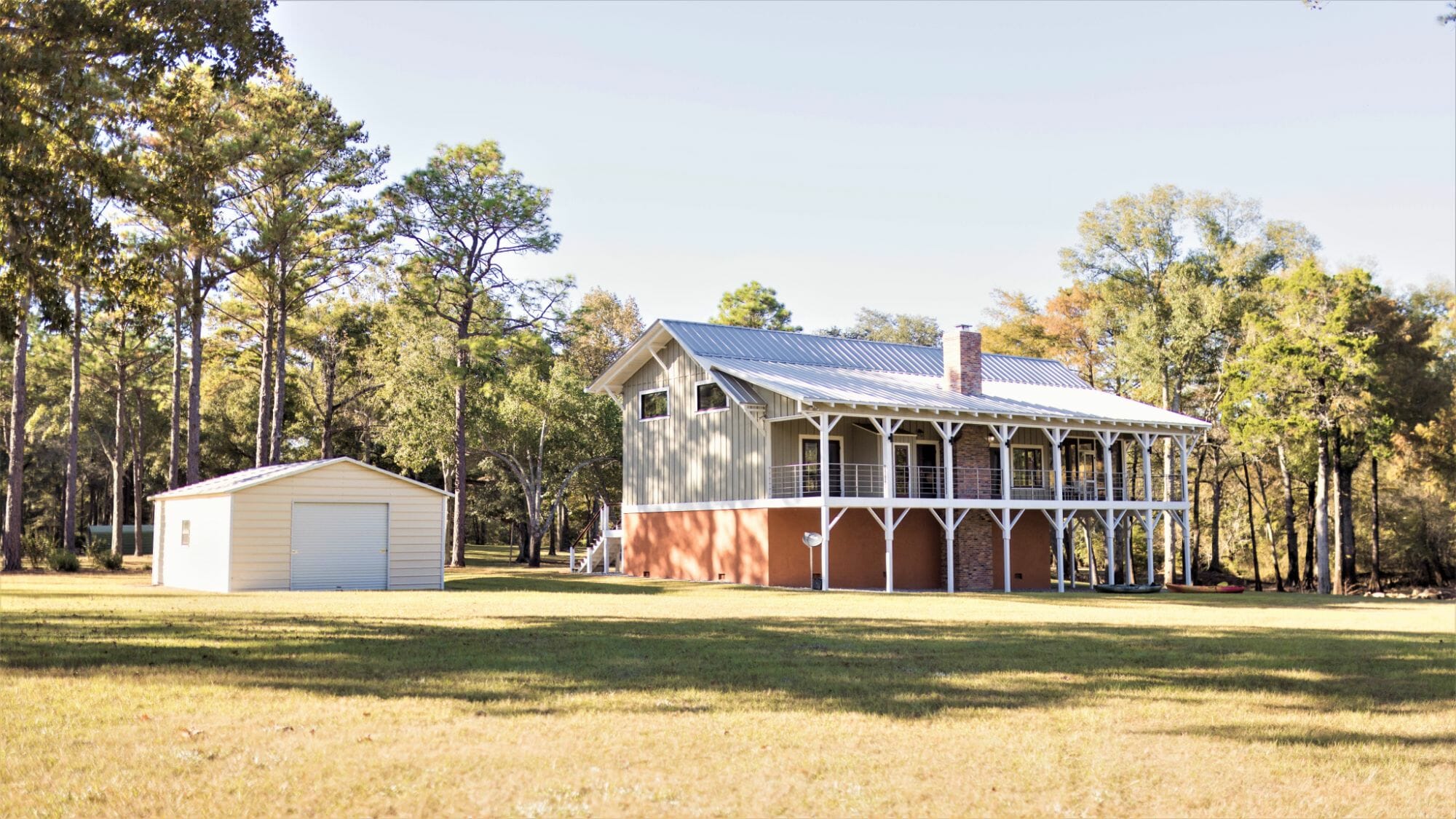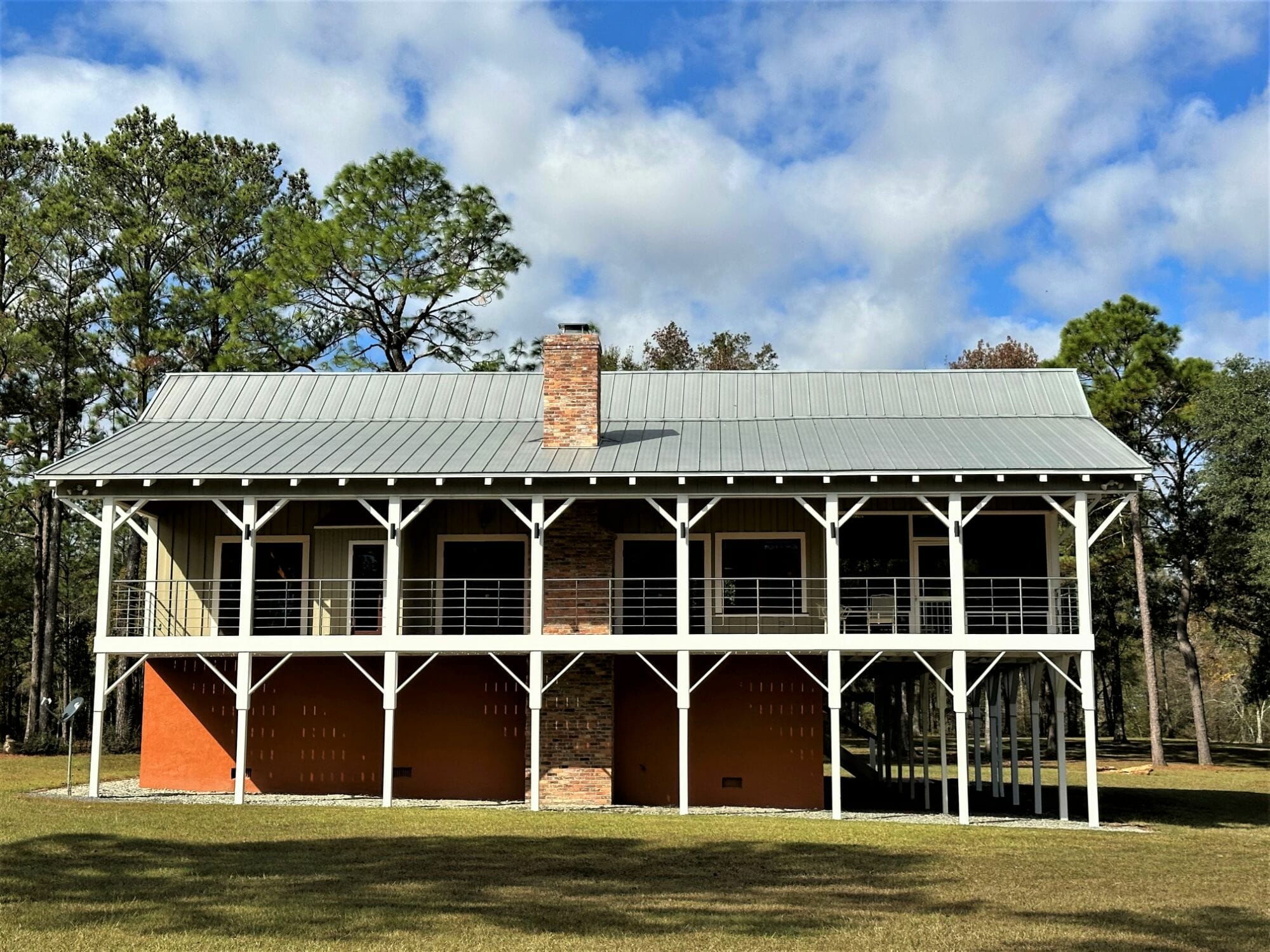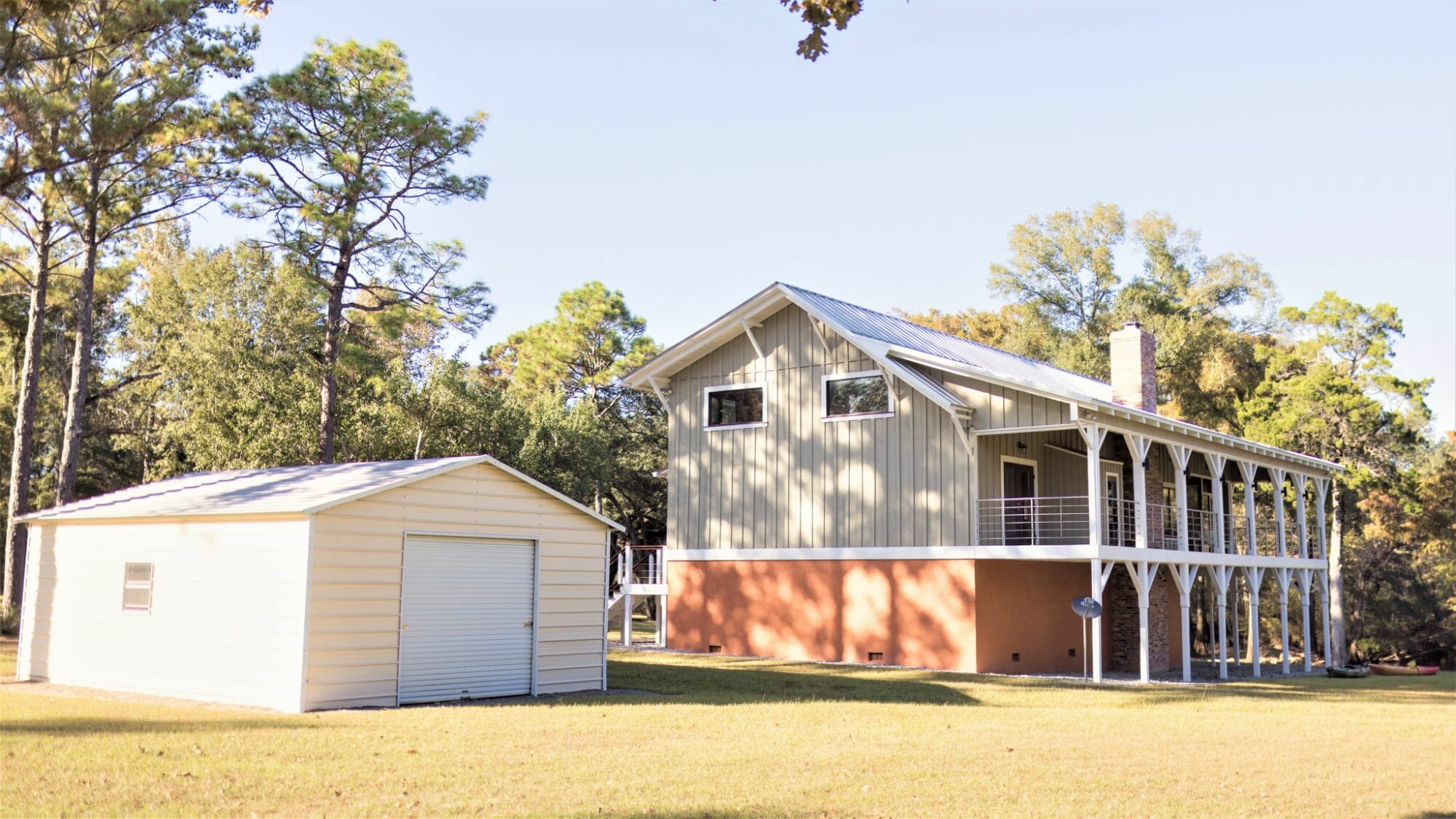 The newly-remodeled in 2018 2,253 sq ft house includes 3 BD/2.5 Baths, custom pine flooring, exposed beans, handrails, and countertops. Taking it 'down to the studs,' the current landowner utilized the former cabin, raised it, opened the floor plan up, and capitalized on the good bones whiles still retaining much of the original cabin's former charm. What was once the cabin walls, now serve as custom pine flooring, with wood beams and details found throughout. An expansive screened porch overlooks the creek, as well as the open porches (complete with custom stainless steel railing). Adorning the more open portion of the property are several magnificent moss-draped oaks.