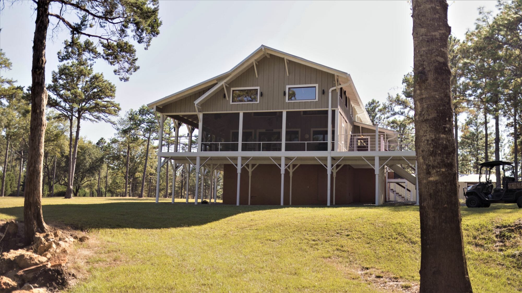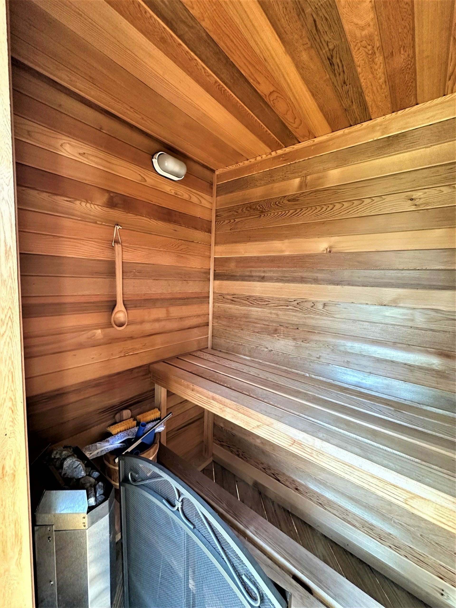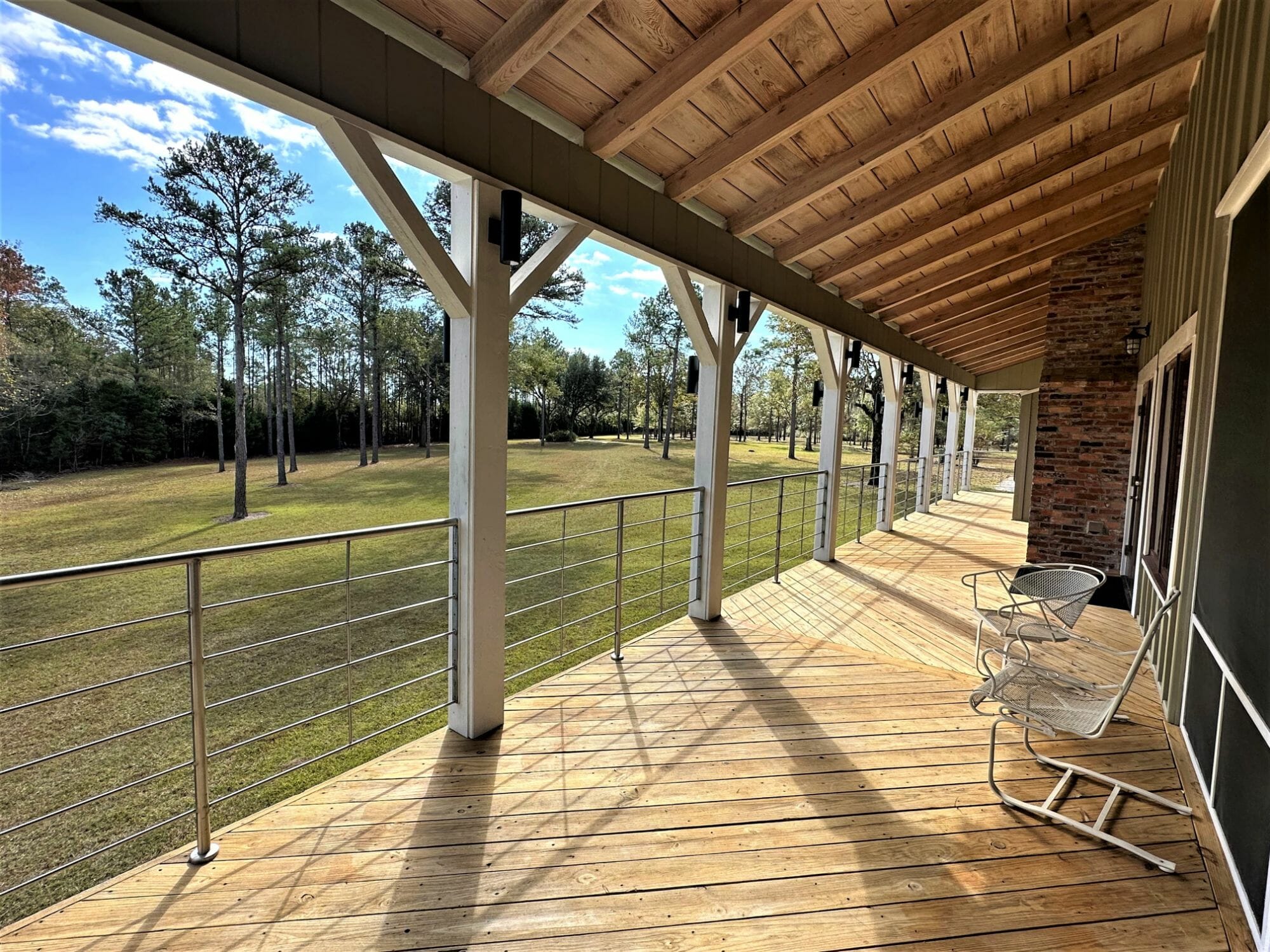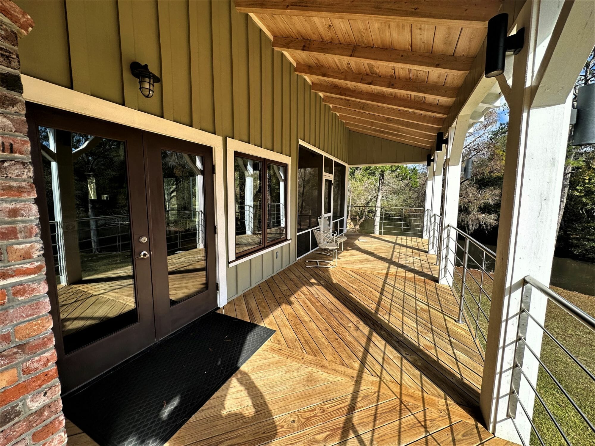 - 15.5X30 screened porch; 10X61 open porch with stainless steel railing and outdoor lighting system; 360 Sq Ft open porch with stainless steel railing and outdoor lighting system; sauna located on porch