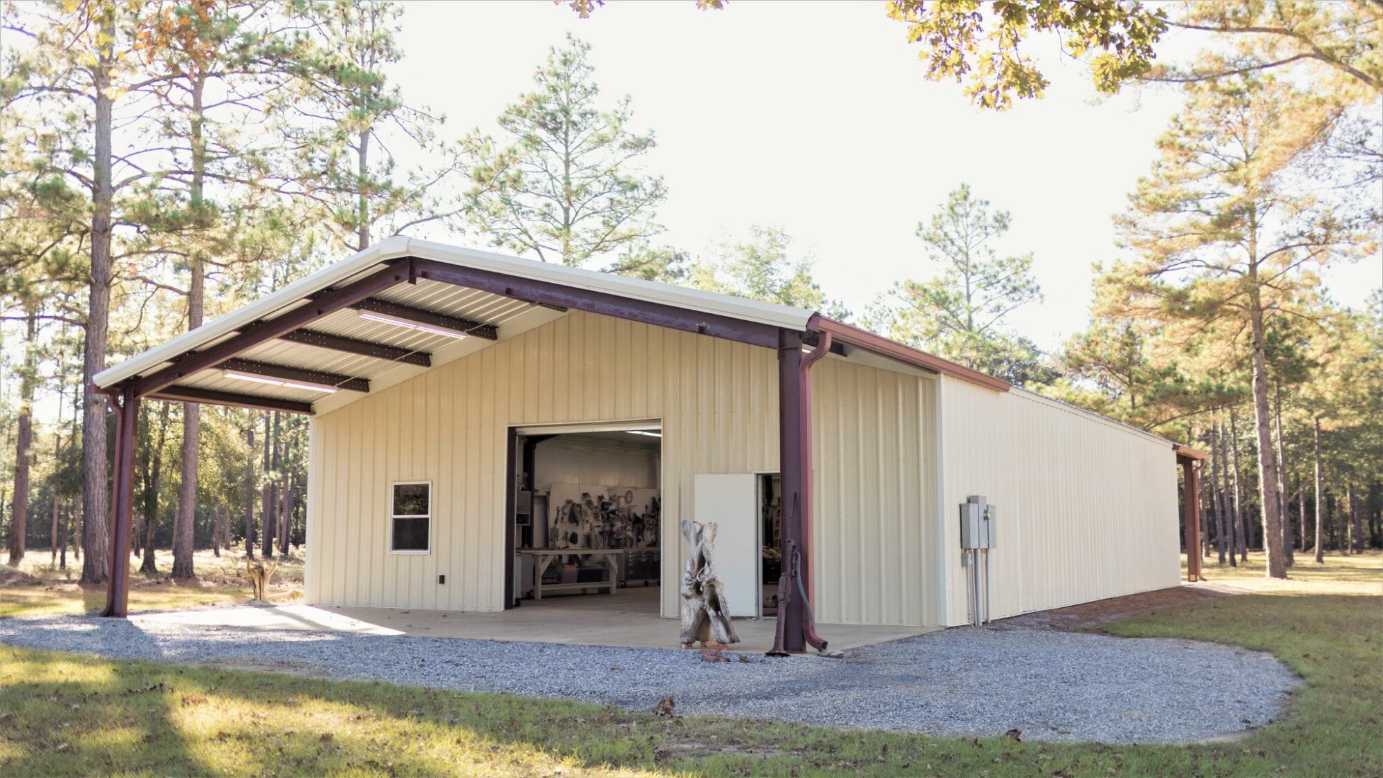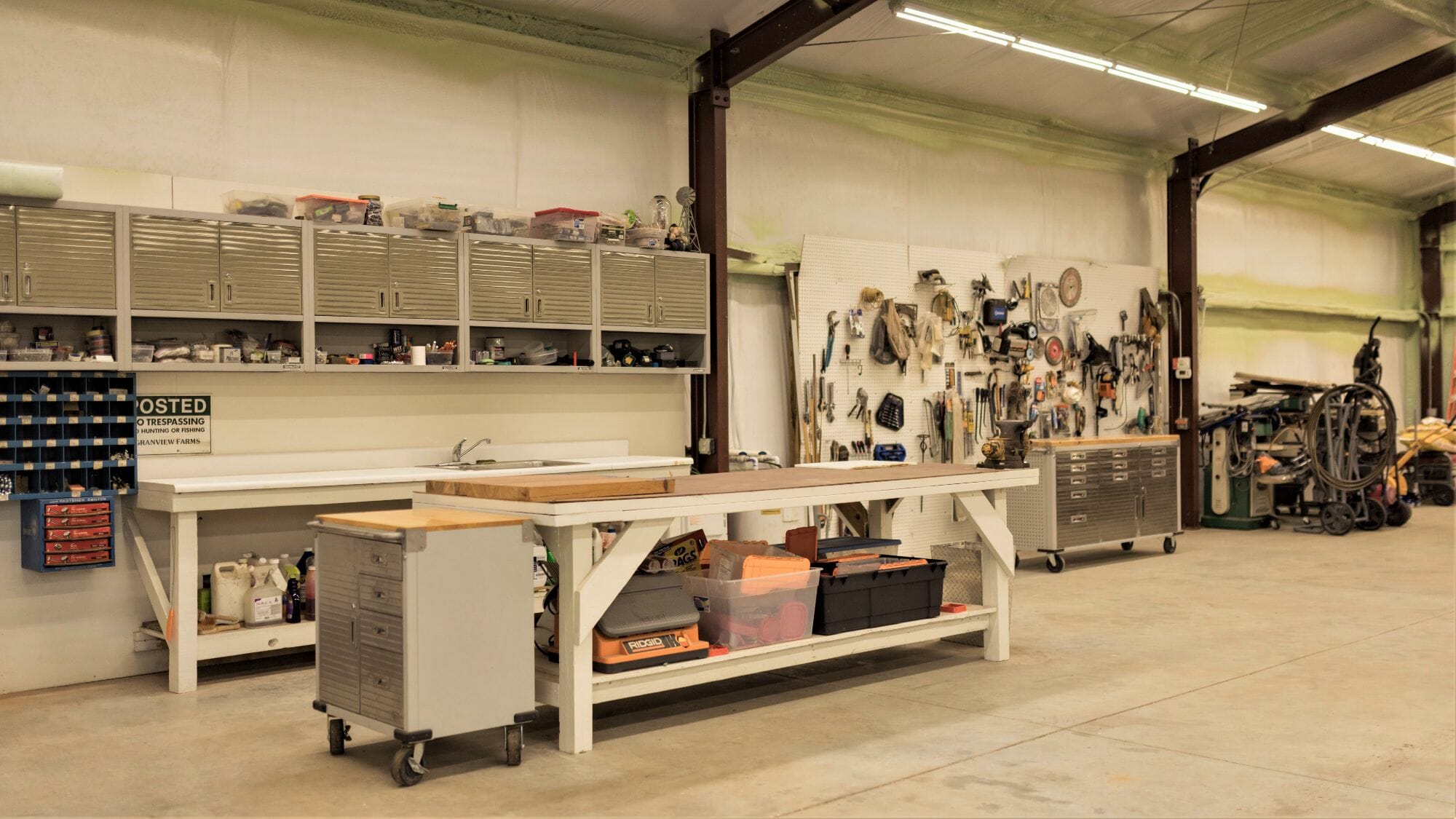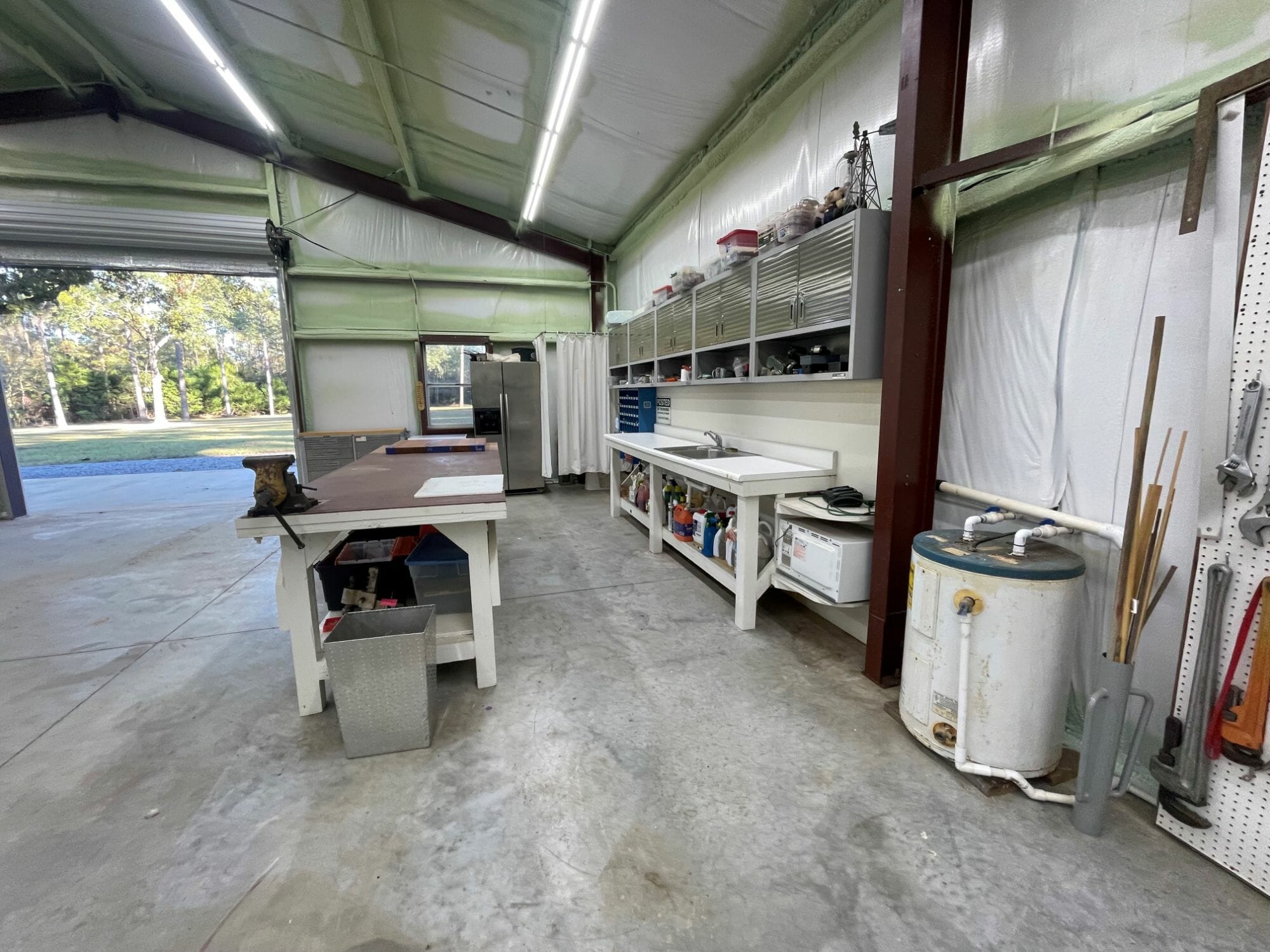 - 20X25 metal carport; 40X60 insulated metal building, heated and cooled; 1 Bath; three Ultra HD rolling tool chests; wall cabinets; multiple shop work benches, including hand tools
