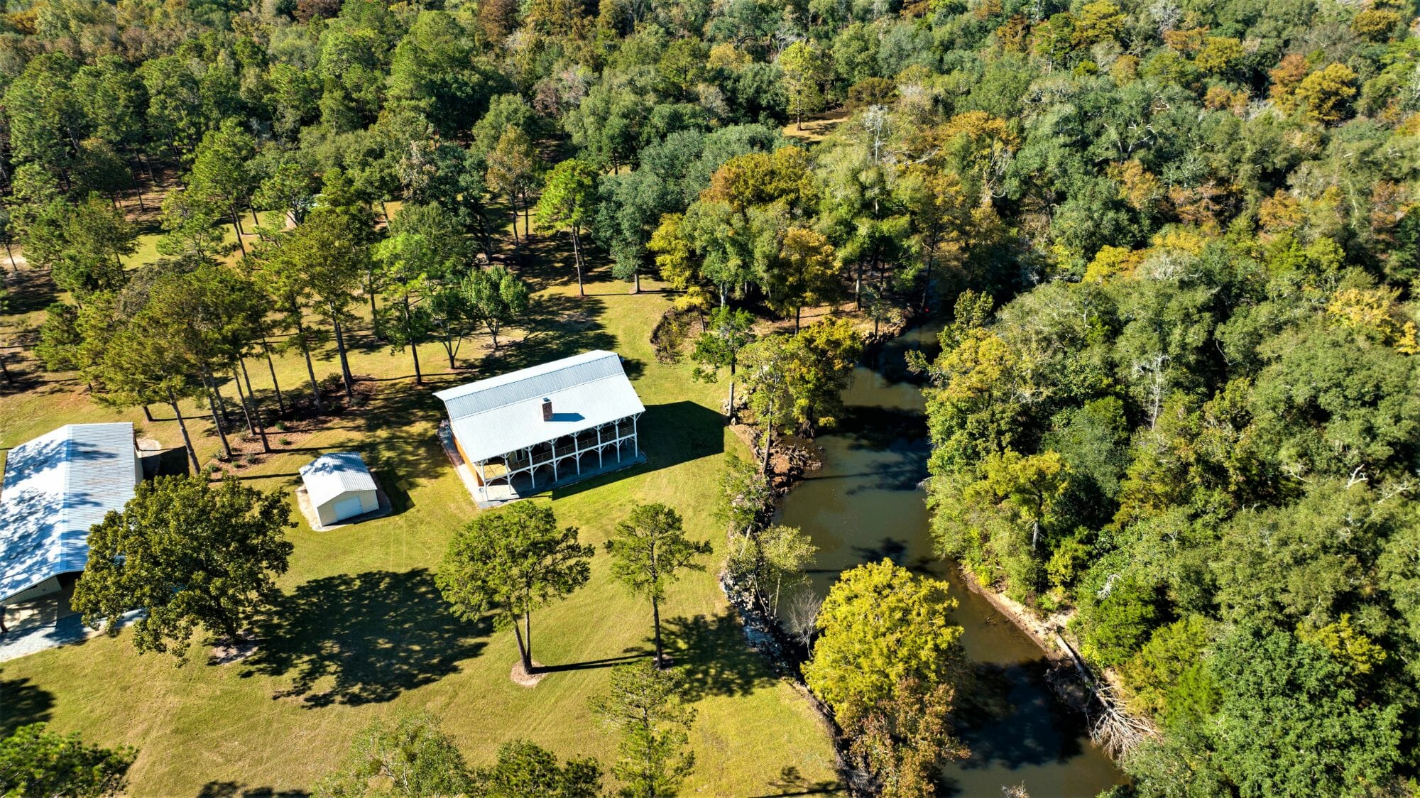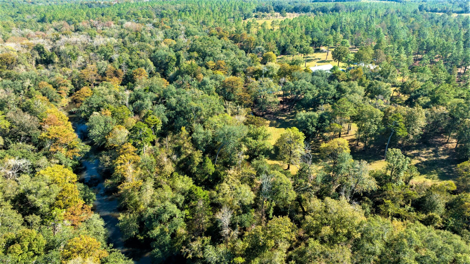 With over 6/10ths of a mile of spring-fed Mill Creek being the border for the 6,000-acre Caney Creek Plantation, the game flow produces abundant wildlife. This property is a perfect Social Storm property with end-of-the-road privacy and incredibly rare water frontage.