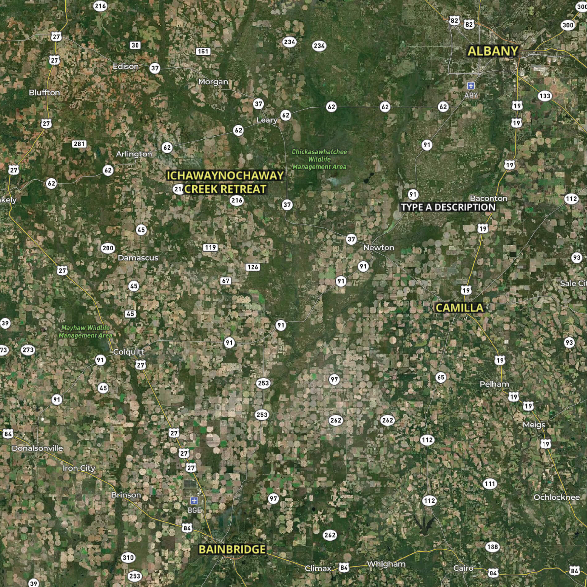 Ichawaynochaway Creek Retreat Aerial Map