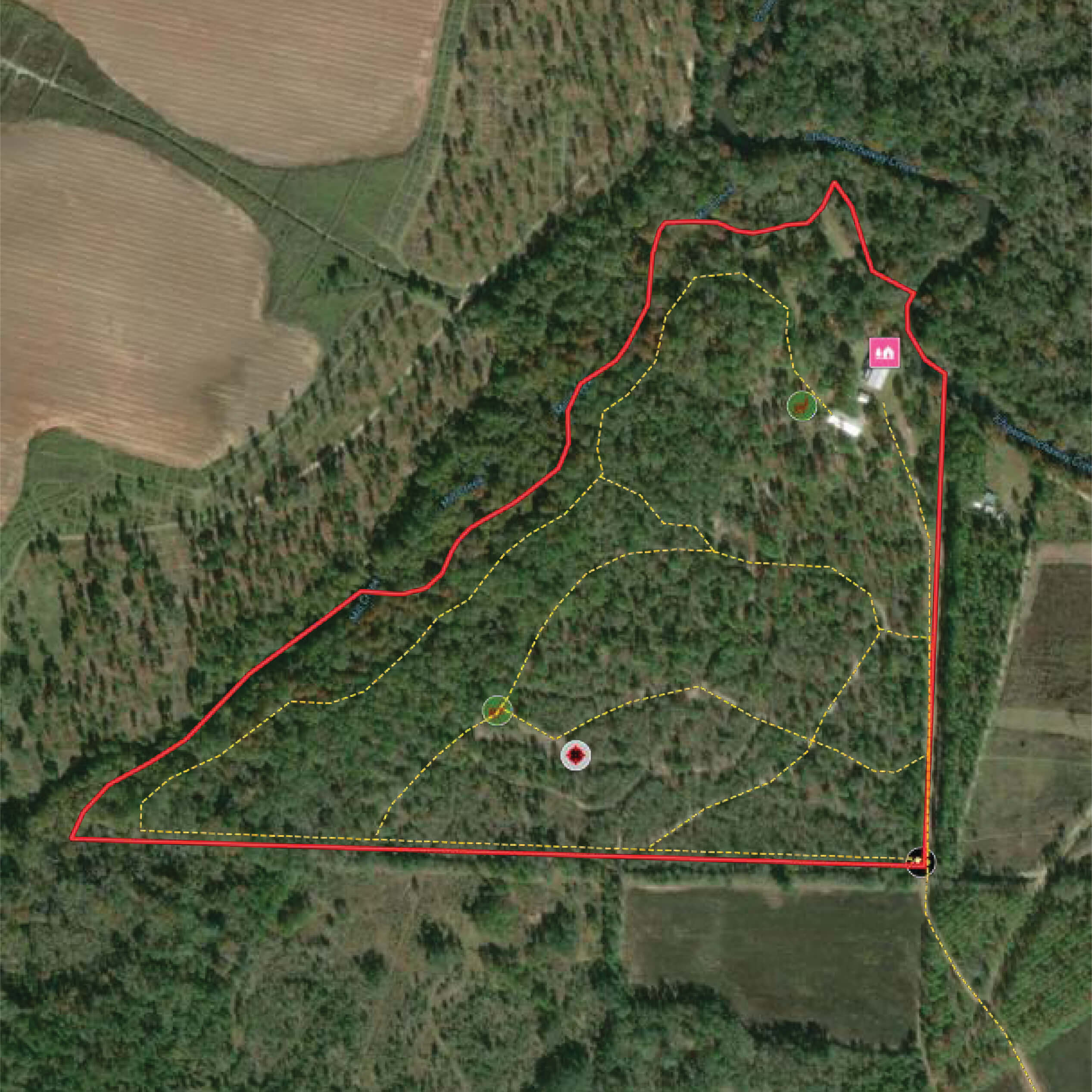 - Borders 6,000-acre Caney Creek Plantation and other large landowners