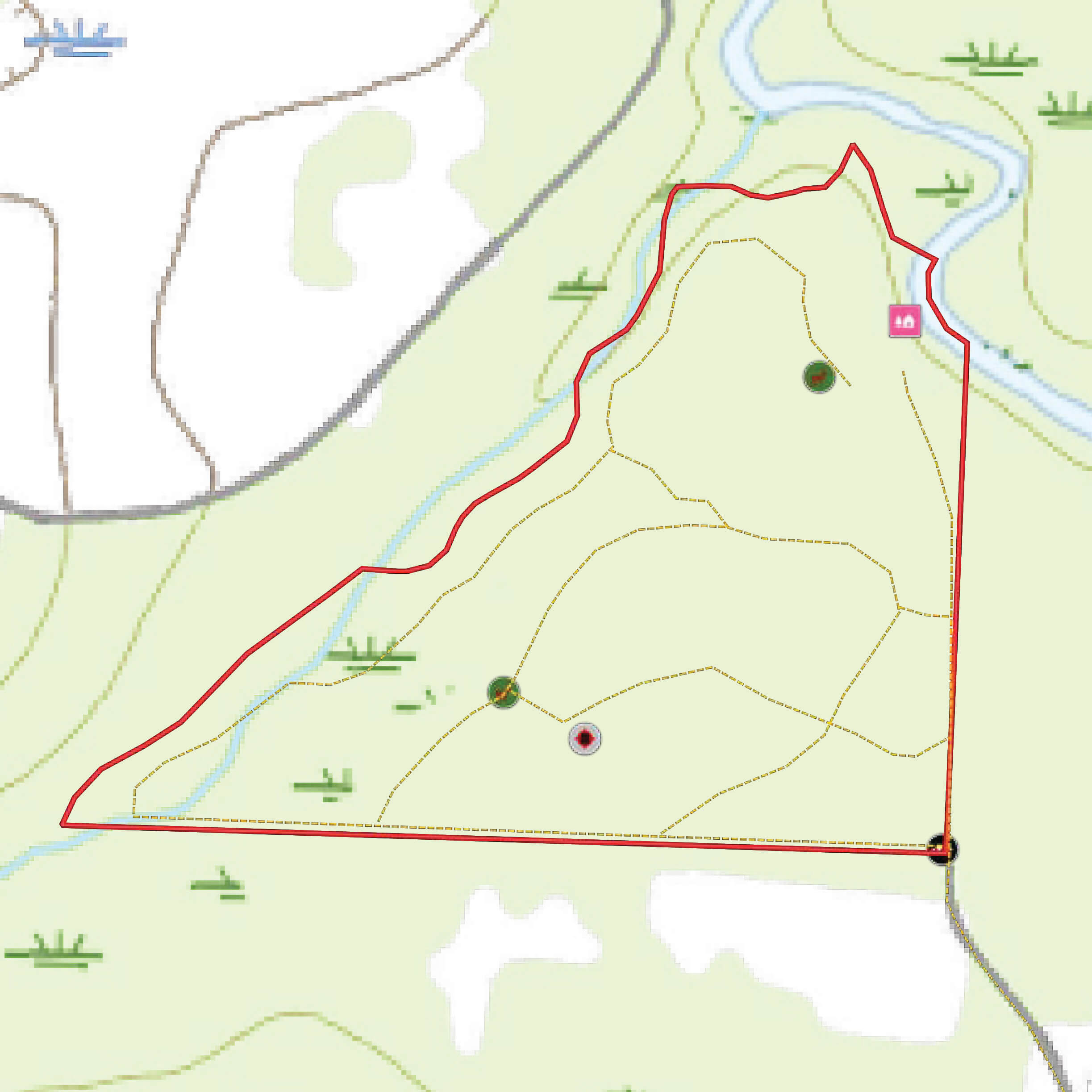 - Good roads throughout, including a winding scenic road/trail along Mill Creek with mature hardwoods; rolling Topography