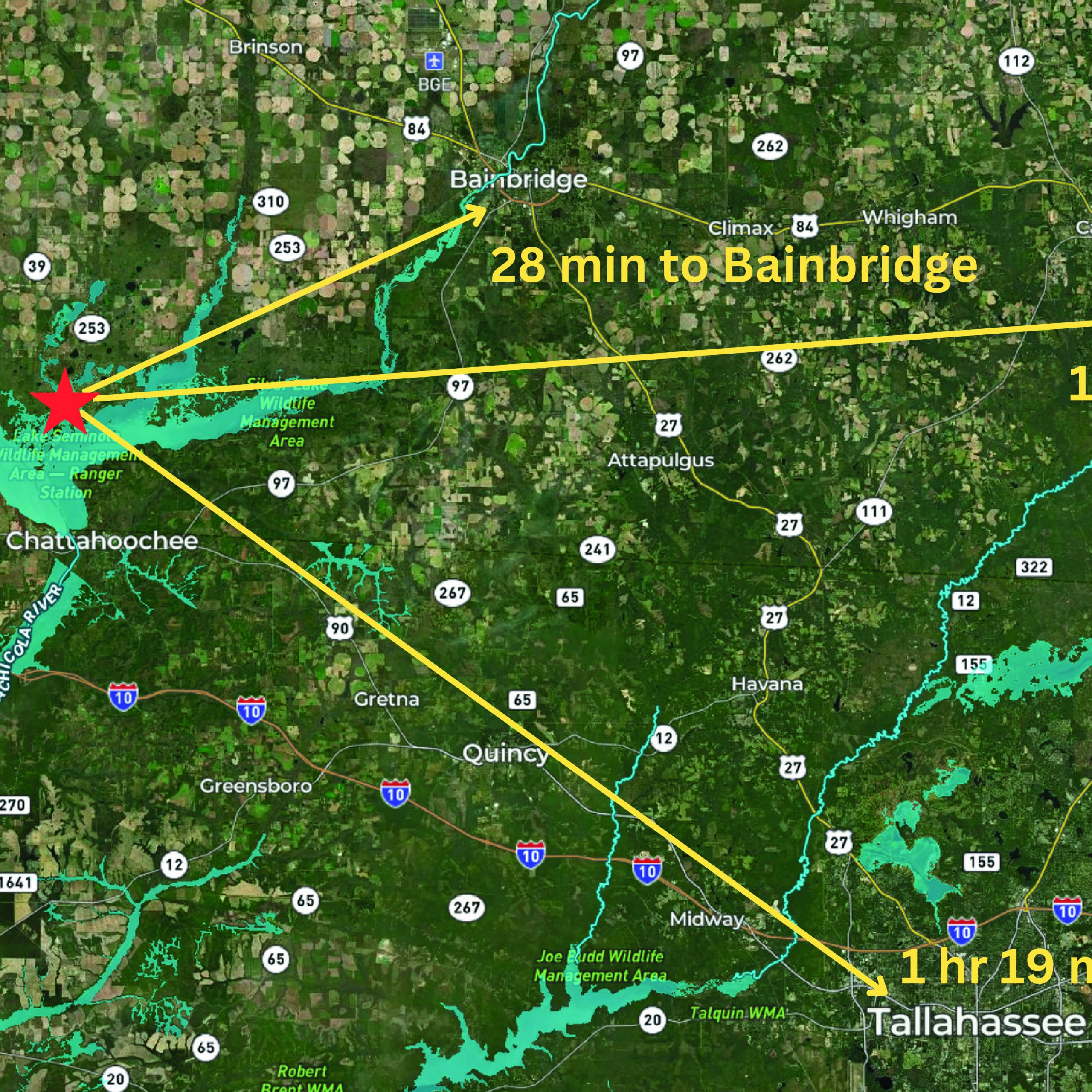 • An hour (approx. 60 miles) from both Thomasville, GA, and Tallahassee, FL.