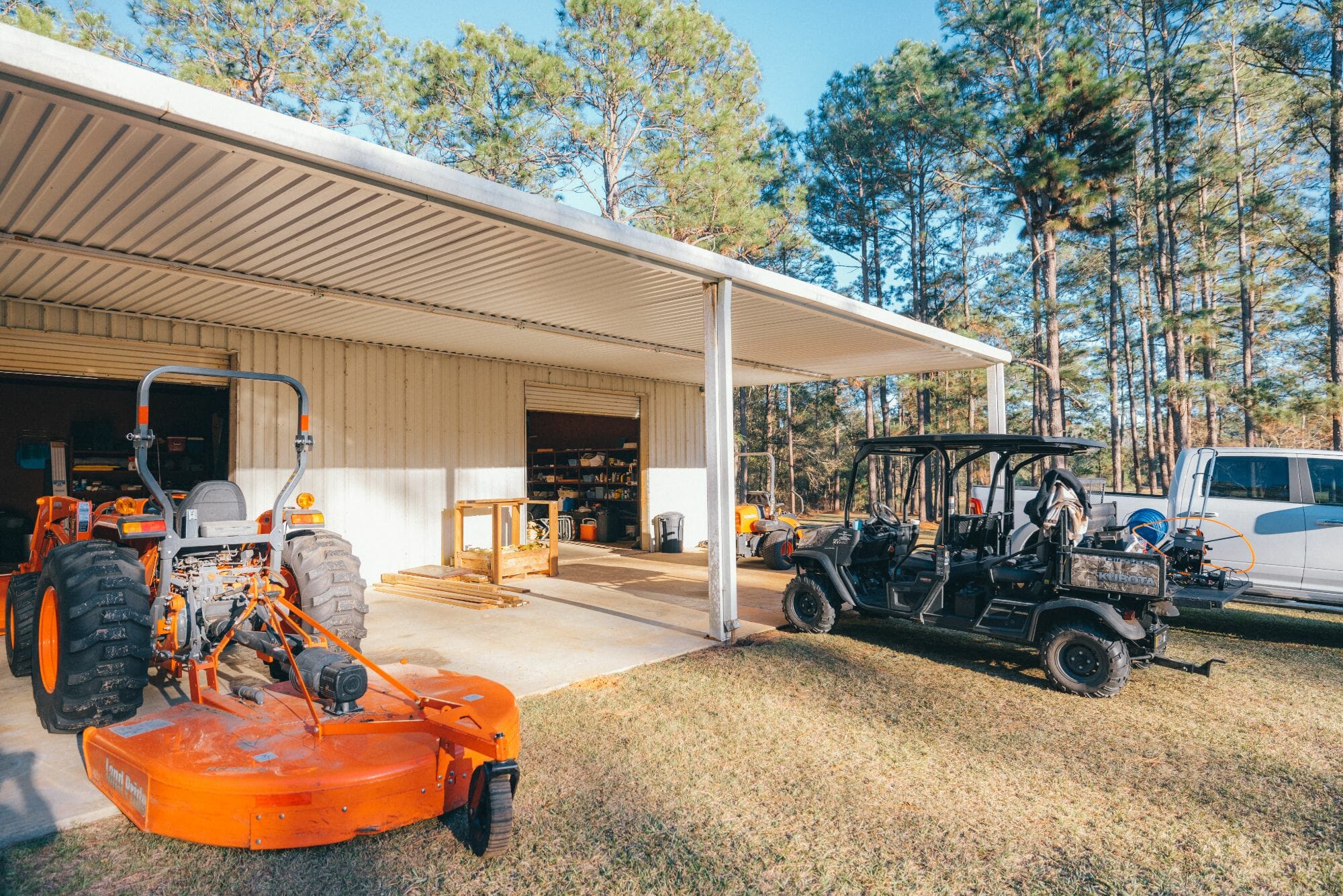 - 2250 Sq Ft Metal Shed With Tool & Equipment Storage Area, Rolling Metal Doors