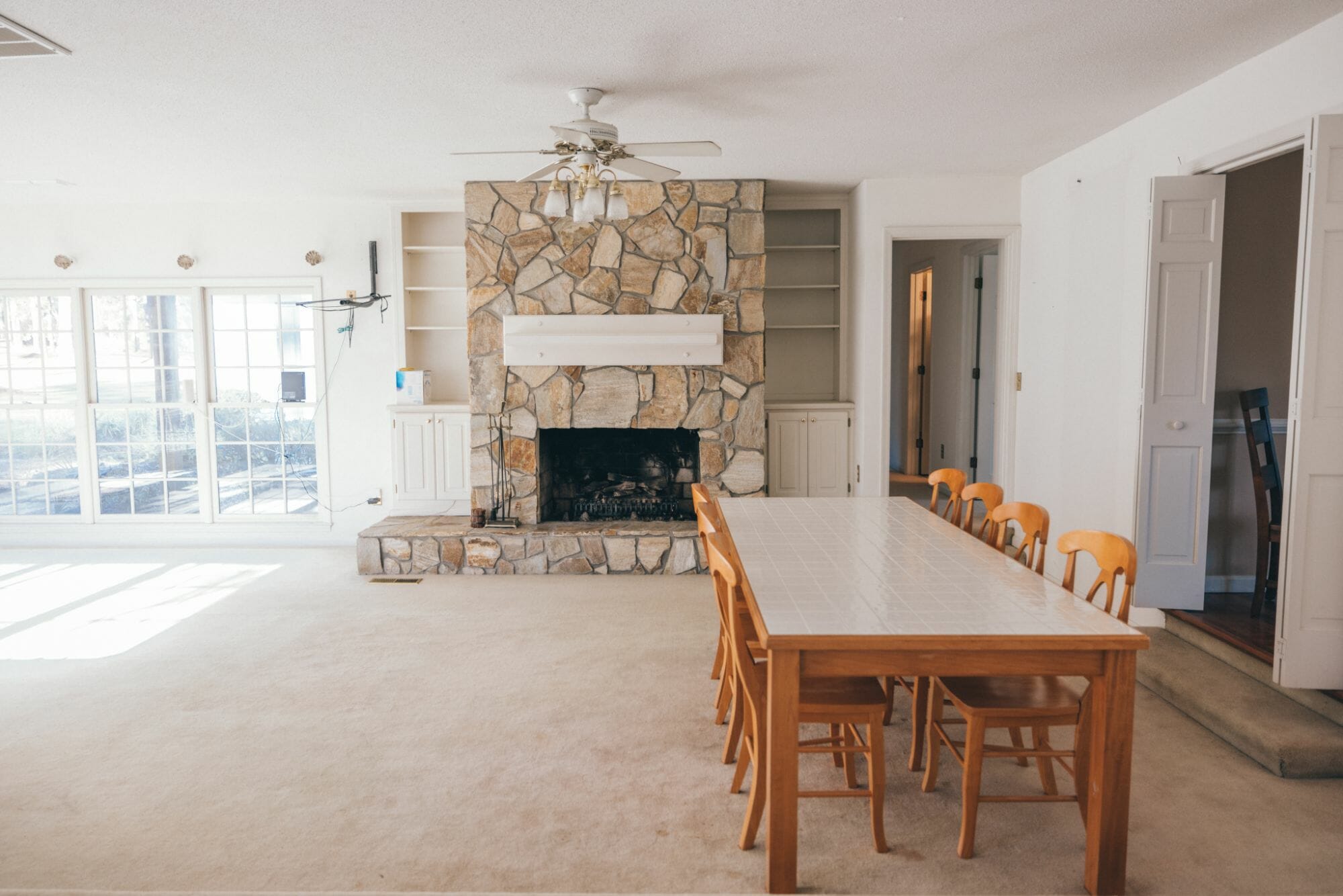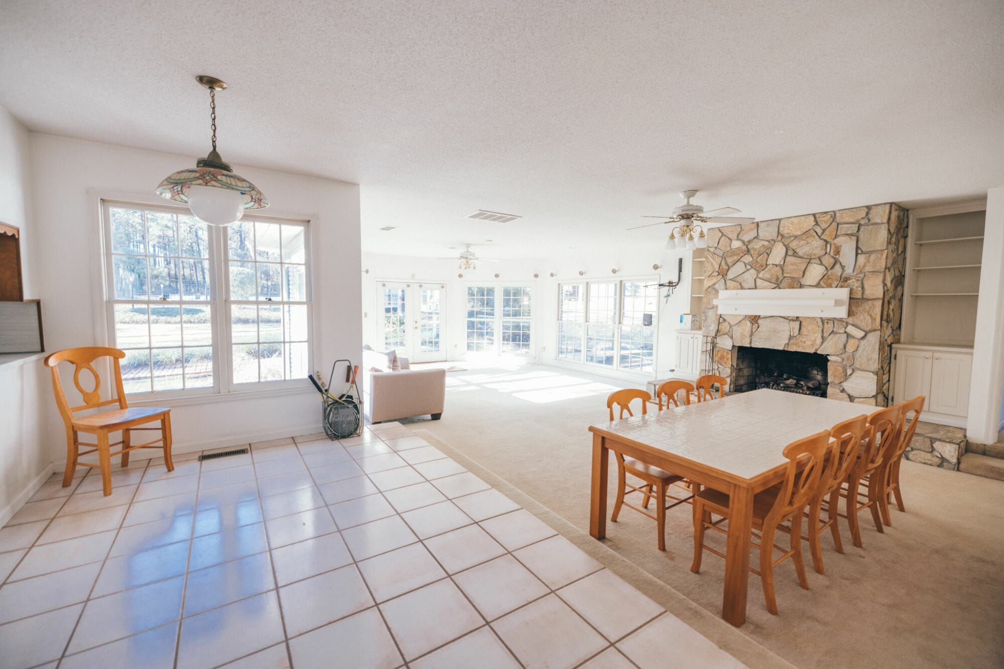 - Stone Fireplace in Living Room With Views of the Water From Master Suite and Dining Room
