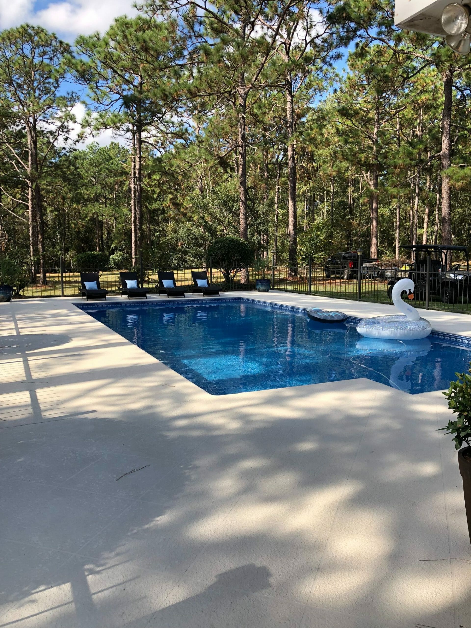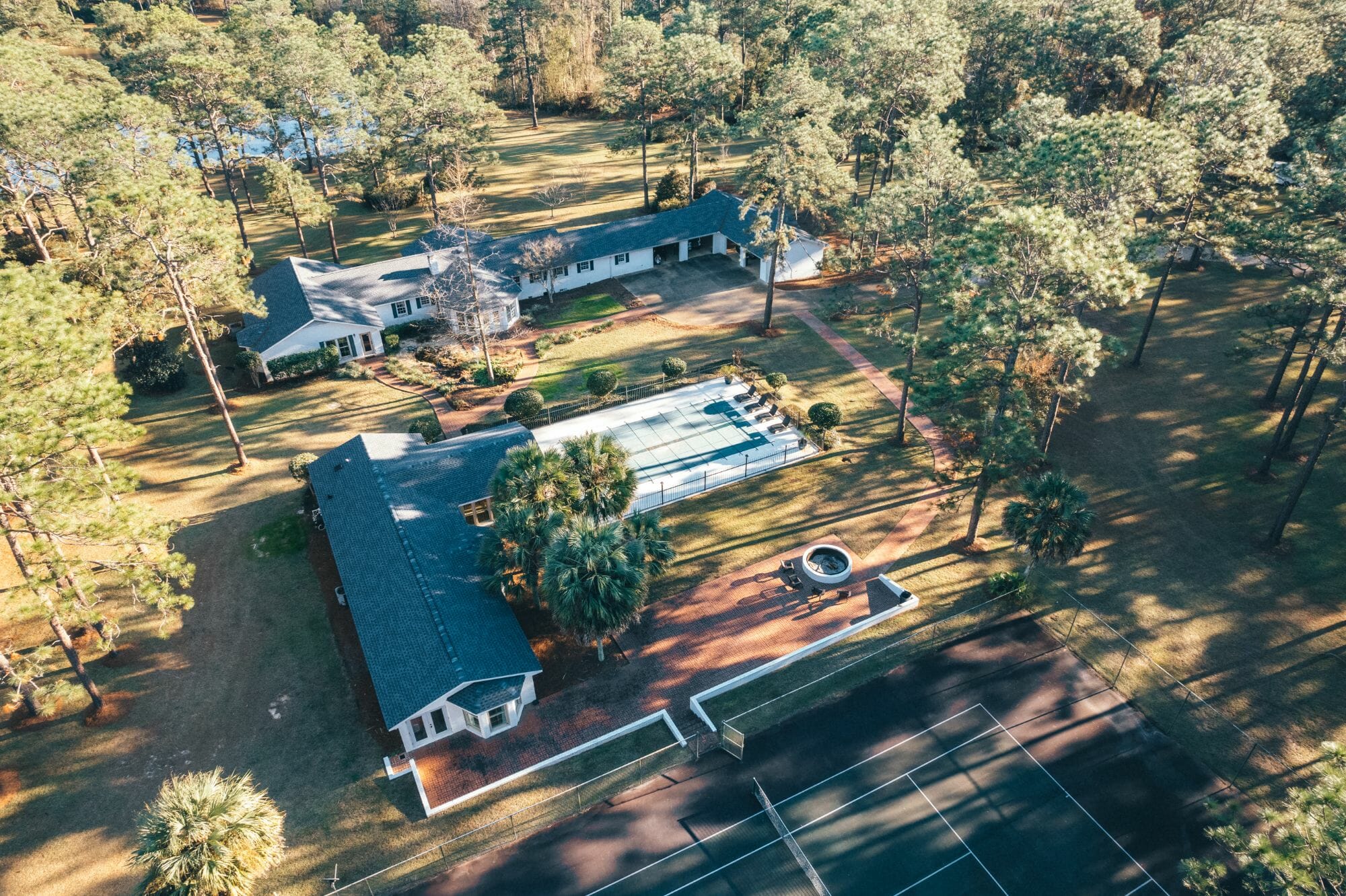 The newly renovated (2020) guest/pool house has great wife appeal. It is 1900 sq ft and turn key ready to walk in and begin enjoying life in the country. There are 2 BR/1BA with a dry sauna located in the bath perfect for ensuring your days are relaxing. The design and decor is modern farm house with an open floor plan that transitions into a large sunroom dining area overlooking the pool and fire pit. The outdoor space has new decking in the pool area, a new pool liner and is fenced with iron gate fencing. The patio area includes a new fire pit and is lined with brick pavers complimenting the surrounding pines for that classic South Georgia feel. This area is the perfect space for entertaining guest and enjoying the outdoors. If tennis is your game, grab your racket and head up to the courts for a quick match with friends.