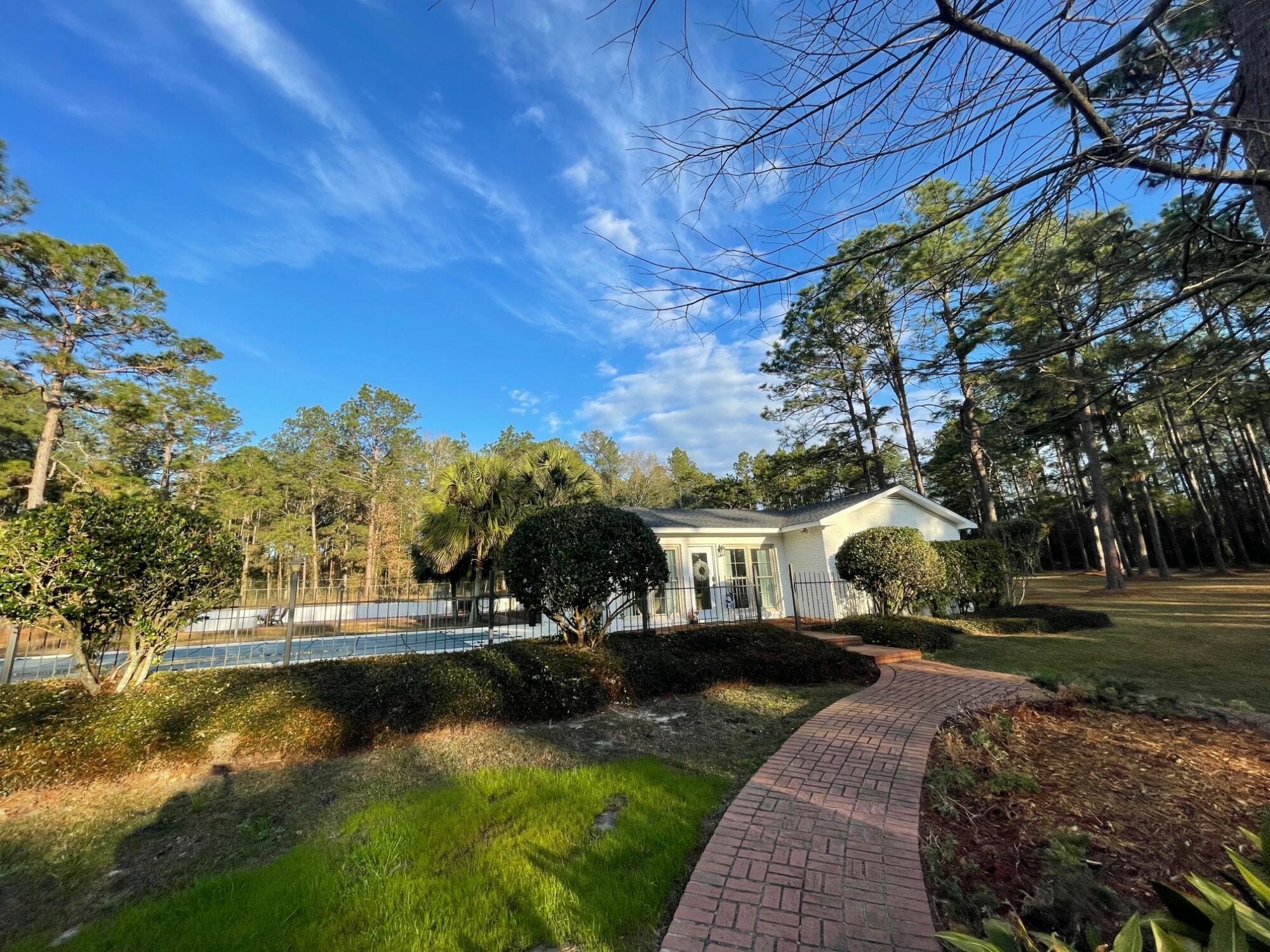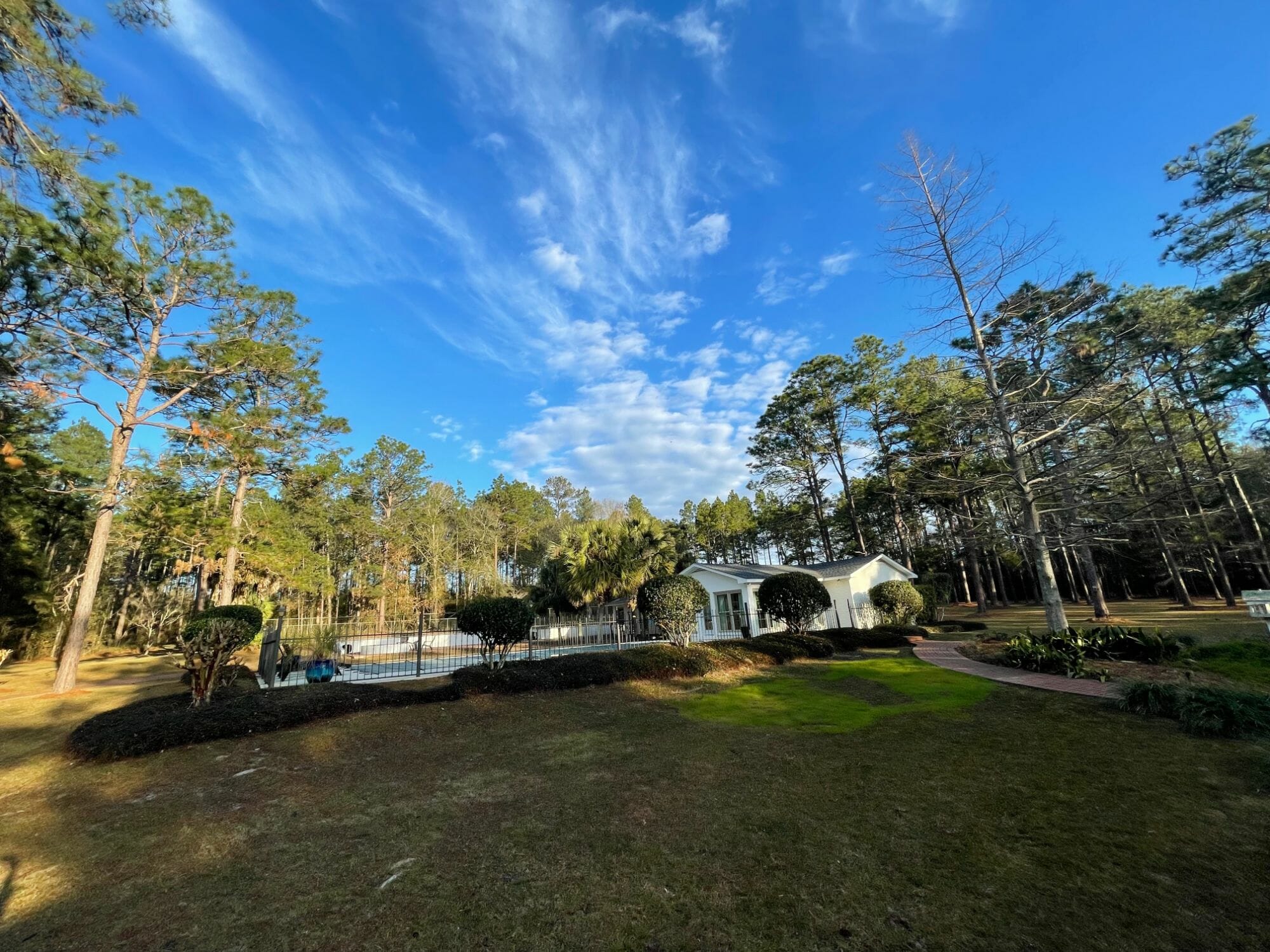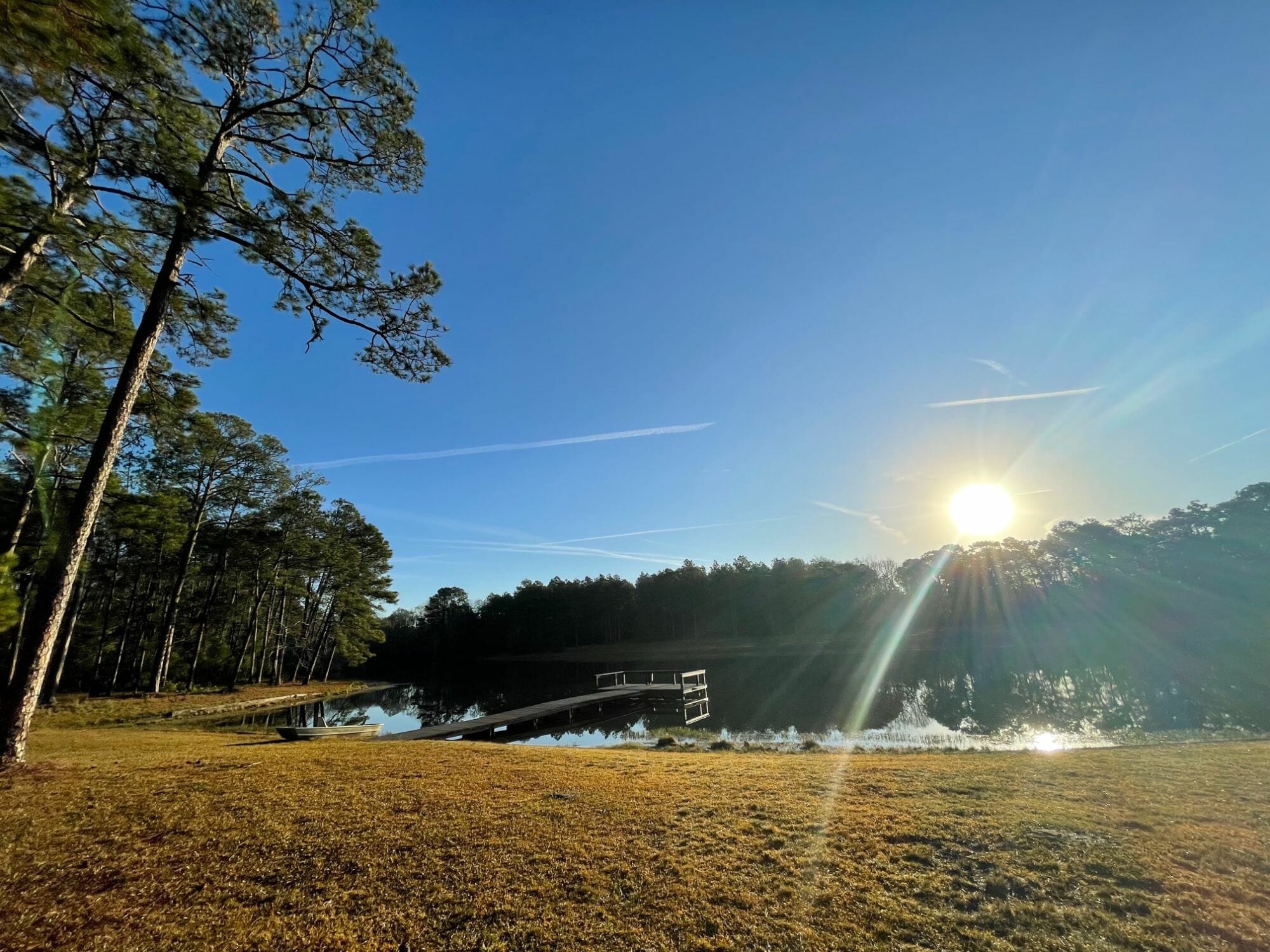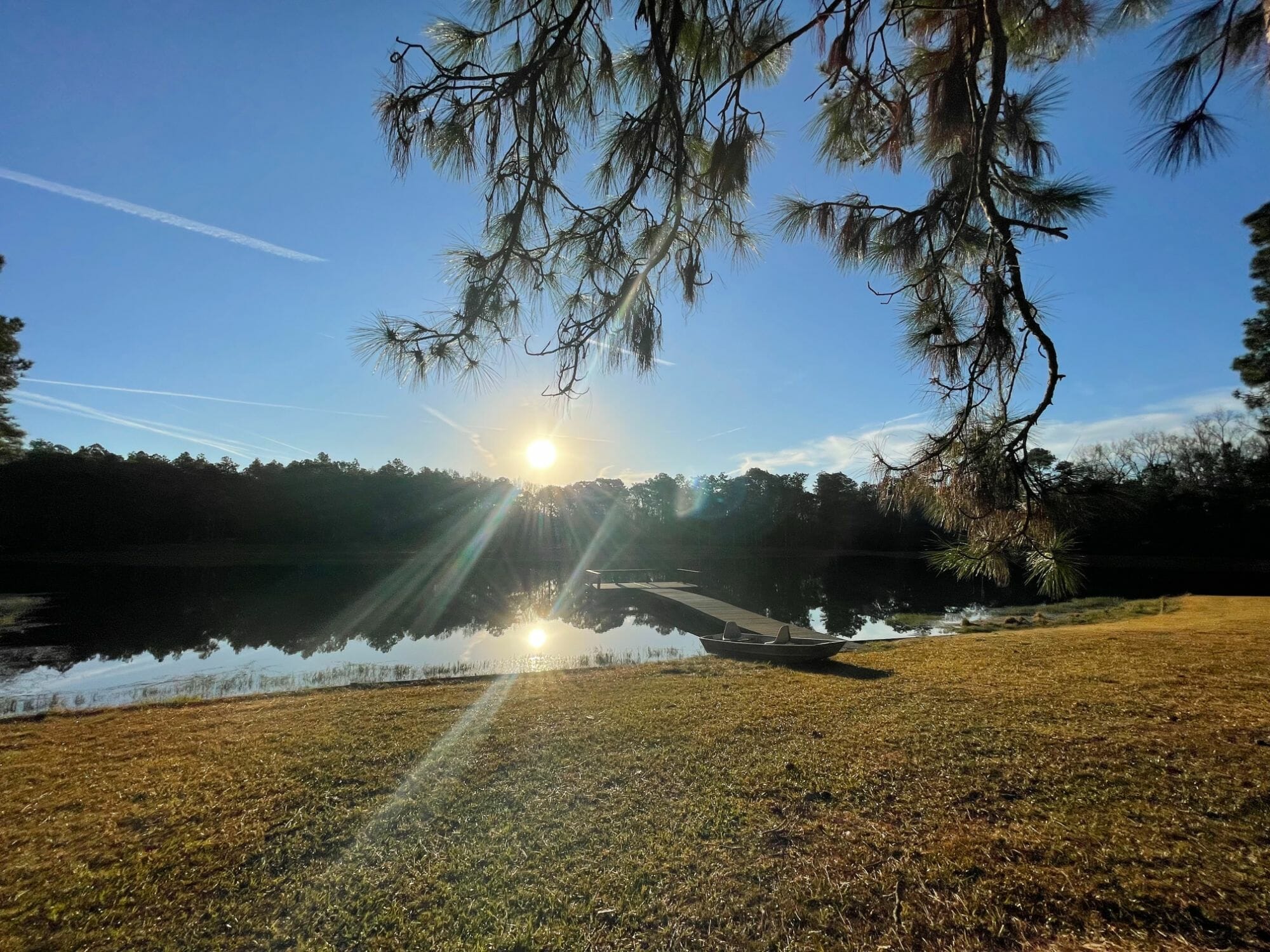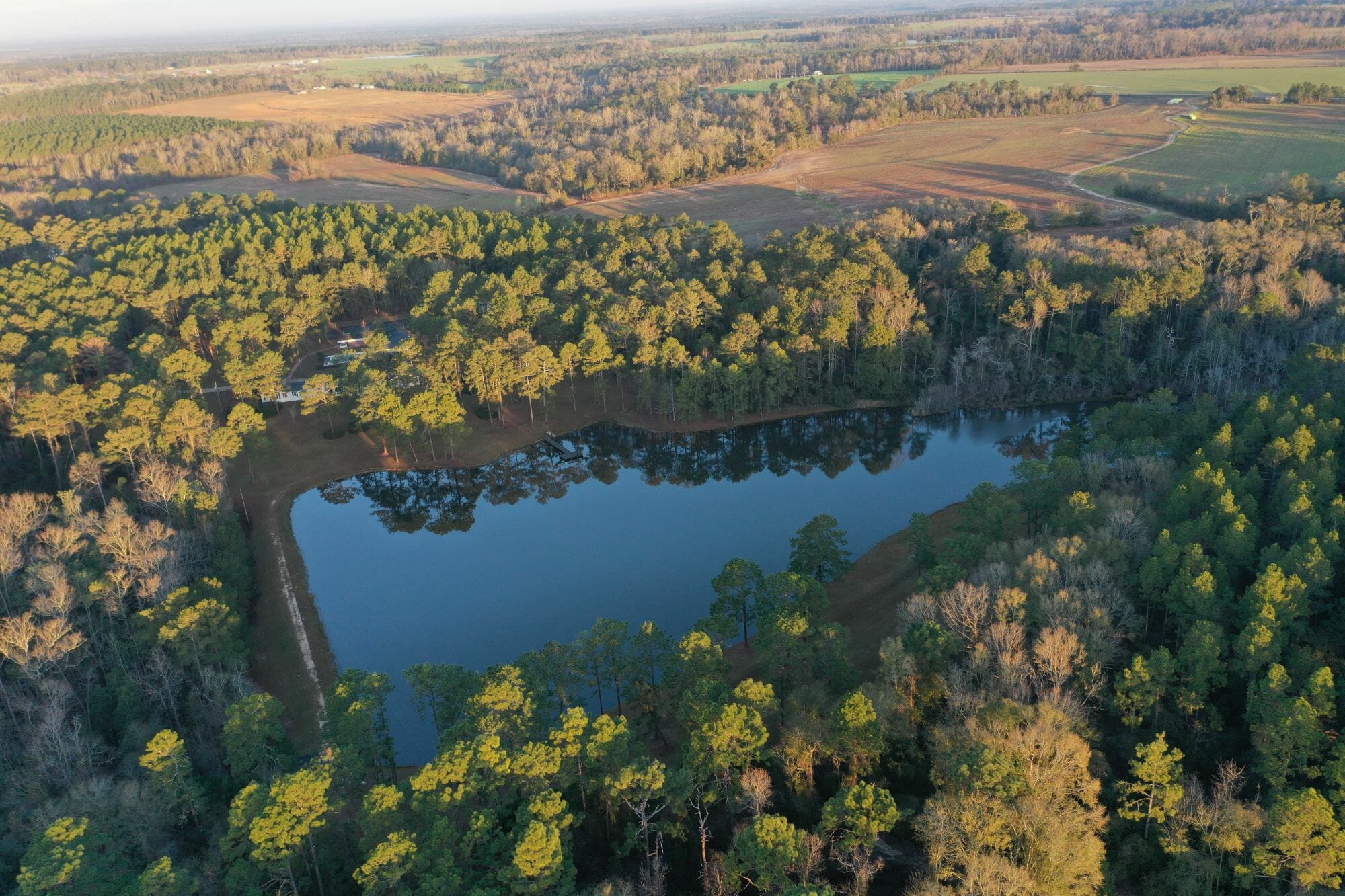 Mornings are breathtaking at Long Pine Farms. The sun comes up over the pines and provides incredible sunrise views from the main house. Enjoy mornings with coffee on the front porch and listen as the woods around you come to life! Venture down to the new dock on the pond and wet a line where you are sure to catch plenty of large bass. In season enjoy the ducks as they come to feed on the far end of the pond in the swampy cypress area. If you are an outdoorsman at heart, the wooded 48 acre parcel across the pond is managed for deer and turkey. The road systems are improved with deer stands and feeders set up to ensure there is venison in the freezer! The wooded parcel has its own existing well and power should the new owner decide to build other cabins on that side of the property. This setup would work out perfectly should the future owner host events and need more housing accommodations.