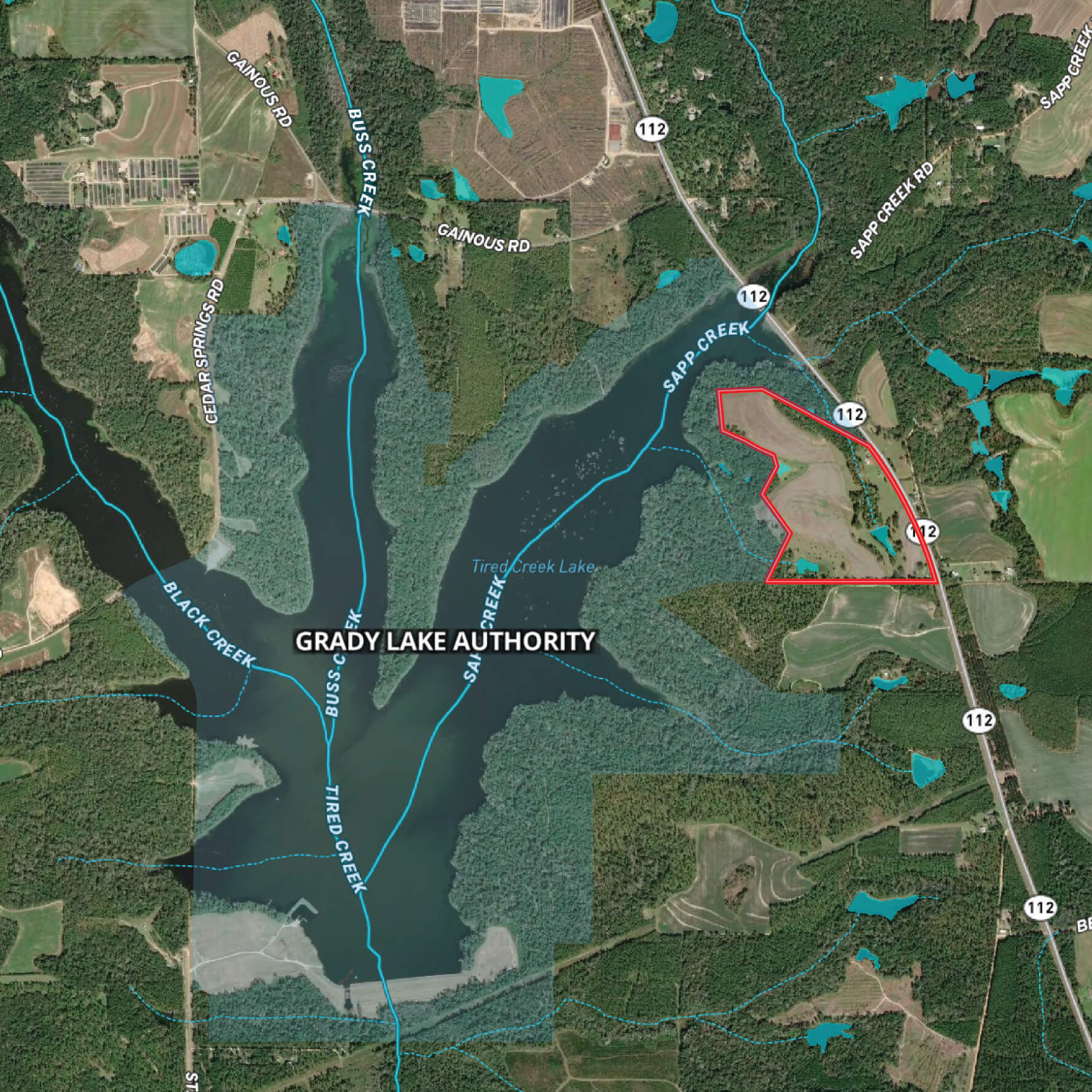 Bordered on One Side for a Mile by the 2,885-acre Grady Lake Authority which contains the 960-acre Tired Creek Lake.