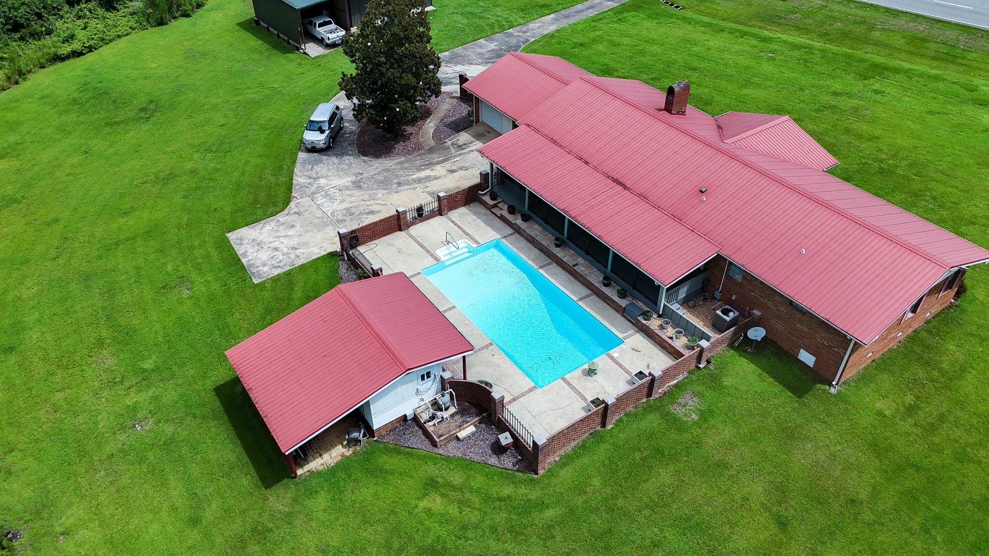 - Main House - 2,200 +/- sq ft 4 BR, 3 BA with covered back porch, garage, saltwater pool & pool house