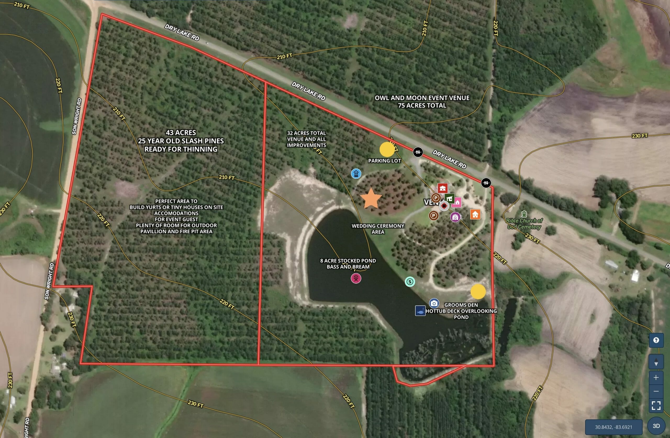 • RV Site Rental Income - Average Monthly Rental Between $500-$750 Per Site. 32 Acre Parcel Will Easily Accomodate 15-20 Sites Totaling Between 8K-15K a Month Income; Additional 43 Acres to Build Multiple Campsites or Guest Accommodations (All Site Prep Work Would Need to Be Done)