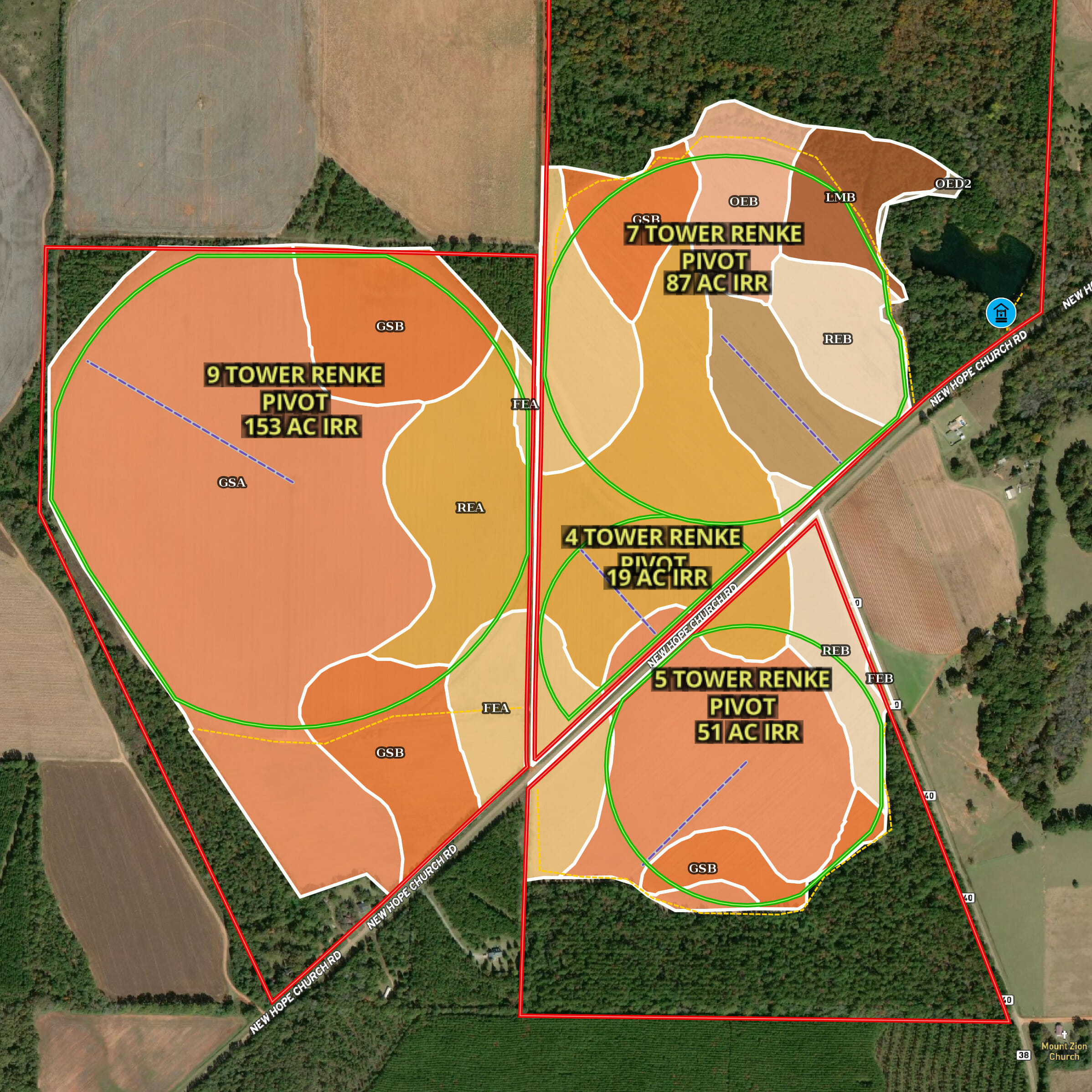 - Approx. 1.2 miles frontage on New Hope Church Rd., approx. 6/10ths of a mile on Wilton Rigsby Rd