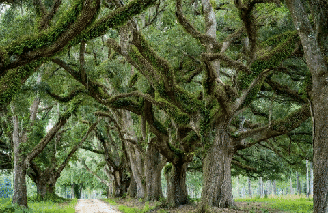 - Paved drive from the entrance to the house with a beautiful Oak Alley