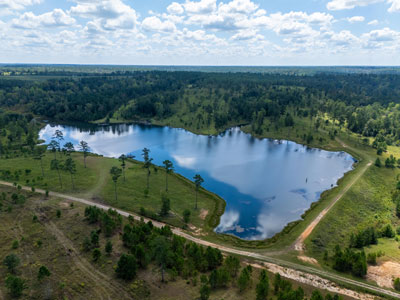 Expansive Acreage & Diverse Habitat: 5,746.9± acres of pristine land encompassing upland pine forests, hardwood bottoms, and only ~2.5% wetlands . The estate boasts 4.5 miles of frontage along Lake Seminole, a 37,500-acre lake, offering world-class fishing and waterfront views . Rolling terrain (with 230 feet of elevation change) forms the southernmost foothills of the Appalachians, creating superb drainage and Class I & II soils. As Walter Hatchett notes, “The better soils you have, the better quality of wildlife you’re going to have… The type of soils found at Southlands… will grow just about anything.” These fertile soils support a rich mosaic of habitats – from longleaf pine sandhills to spring-fed creeks and a 20-acre private lake plus a 30-acre duck marsh built on the property .